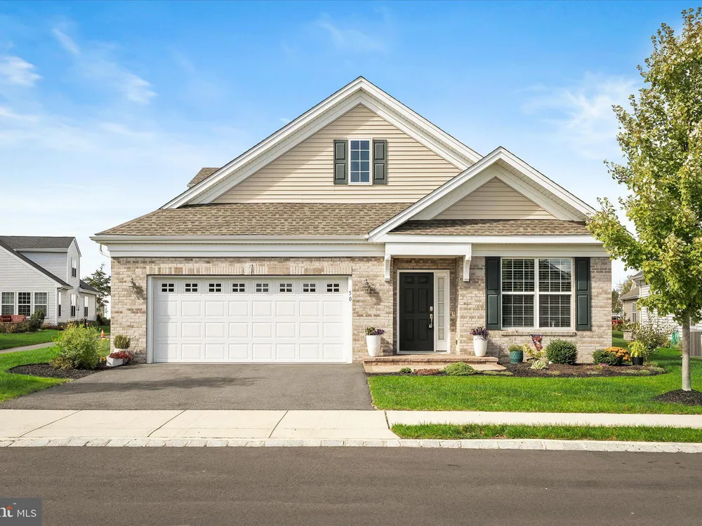 This stunning brick-front residence offers over 2,600 square feet of thoughtfully designed living space, featuring 3 bedrooms and 3 full bathrooms. Located in a sought-after active adult community, this home combines comfort, elegance, and convenience. Step inside to find upgraded hardwood flooring throughout, including the staircase, as well as custom window treatments and recessed lighting. The first floor boasts a private office, a formal dining room, and a spacious eat-in kitchen with an oversized island, granite countertops, stainless steel appliances, pendulum lighting, soft-close cabinetry, a built-in microwave, and a coffee bar. The kitchen flows seamlessly into the family room, which features a cozy gas fireplace and custom built-in shelving. An abundance of windows fills the home with natural light, enhancing the open and airy feel. The expansive primary suite includes two walk-in closets and a luxurious ensuite bath with dual granite vanities and a large upgraded shower with bench seating. Also on the main level are a guest bedroom, a full bathroom, and a large laundry room with a sink and built-in shelving. Upstairs, you'll find a versatile sitting area, a third bedroom, a full bathroom, and a spacious bonus room – perfect for storage, a hobby room, or future customization. Additional highlights include a two-car garage and access to the community’s impressive clubhouse, featuring a bar, game rooms, gym, full kitchen, movie theater, pool, tennis and pickleball courts, shower rooms, office space, and a full calendar of social activities. The HOA covers all exterior maintenance for truly carefree living. Don’t miss the opportunity to own this elegant and move-in ready home in one of the area's premier 55+ communities. Schedule your private tour today! The Club House, every day feels like a getaway. The 10,000 sq. ft. clubhouse is the heart of the community, featuring a heated outdoor pool, tennis, pickleball, and bocce courts, as well as a state-of-the-art fitness center, billiards room, ballroom, and lounge—all designed to bring neighbors together and create lasting memories. This is more than a home—it’s where your next chapter begins. Come see for yourself why this home is the perfect place to call home. All here for your enjoyment and maintenance free lifestyle you deserve. This home has easy access to major highways, shopping, dining, and local attractions. Schedule your private showing today!