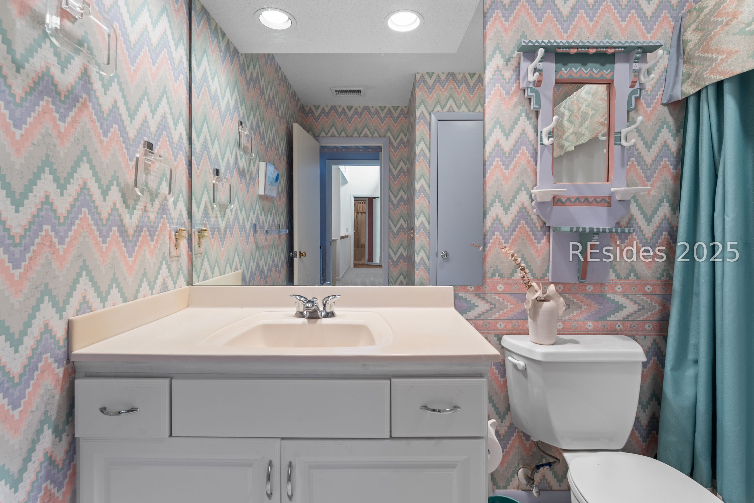Beautifully maintained 3-bedroom, 2-full/2-half bath home in Hilton Head Plantation, perfectly positioned on a quiet cul-de-sac with serene views of Bear Creek's 4th fairway. This bright, airy two-story home features high ceilings, abundant natural light, and a spacious layout ideal for everyday living and entertaining. The first-floor primary suite offers convenience and privacy, while the guest bedrooms enjoy generous walk-in storage upstairs. A warm and inviting living area includes a wood-burning fireplace, wet bar, and access to the screened porch overlooking the private backyard, complete with room for a future pool. Additional highlights include an oversized two-car garage with a hobby room, extra parking available on the street, and a peaceful setting close to Hilton Head Plantation's award-winning amenities, leisure trails, golf, and more.