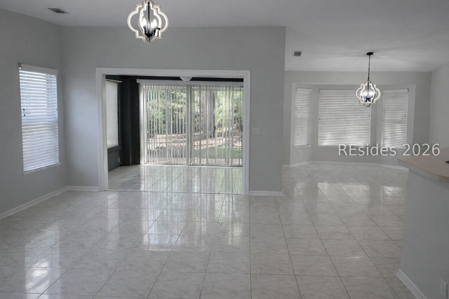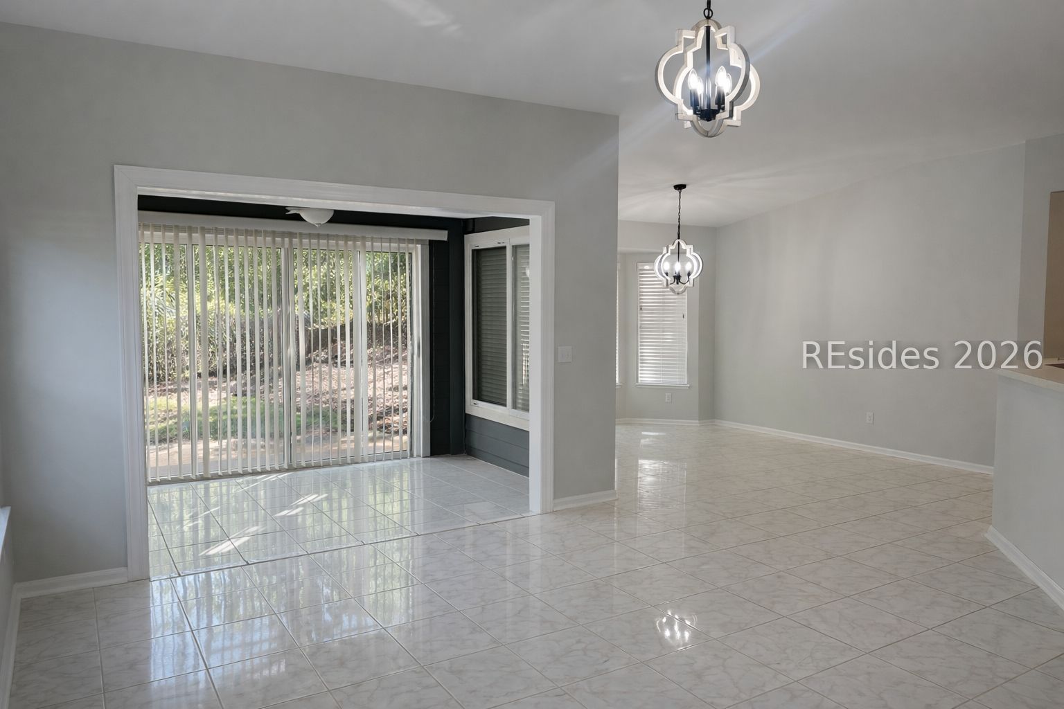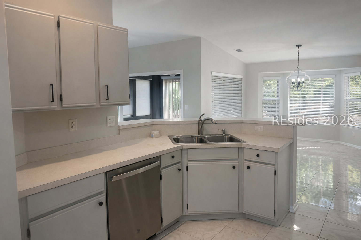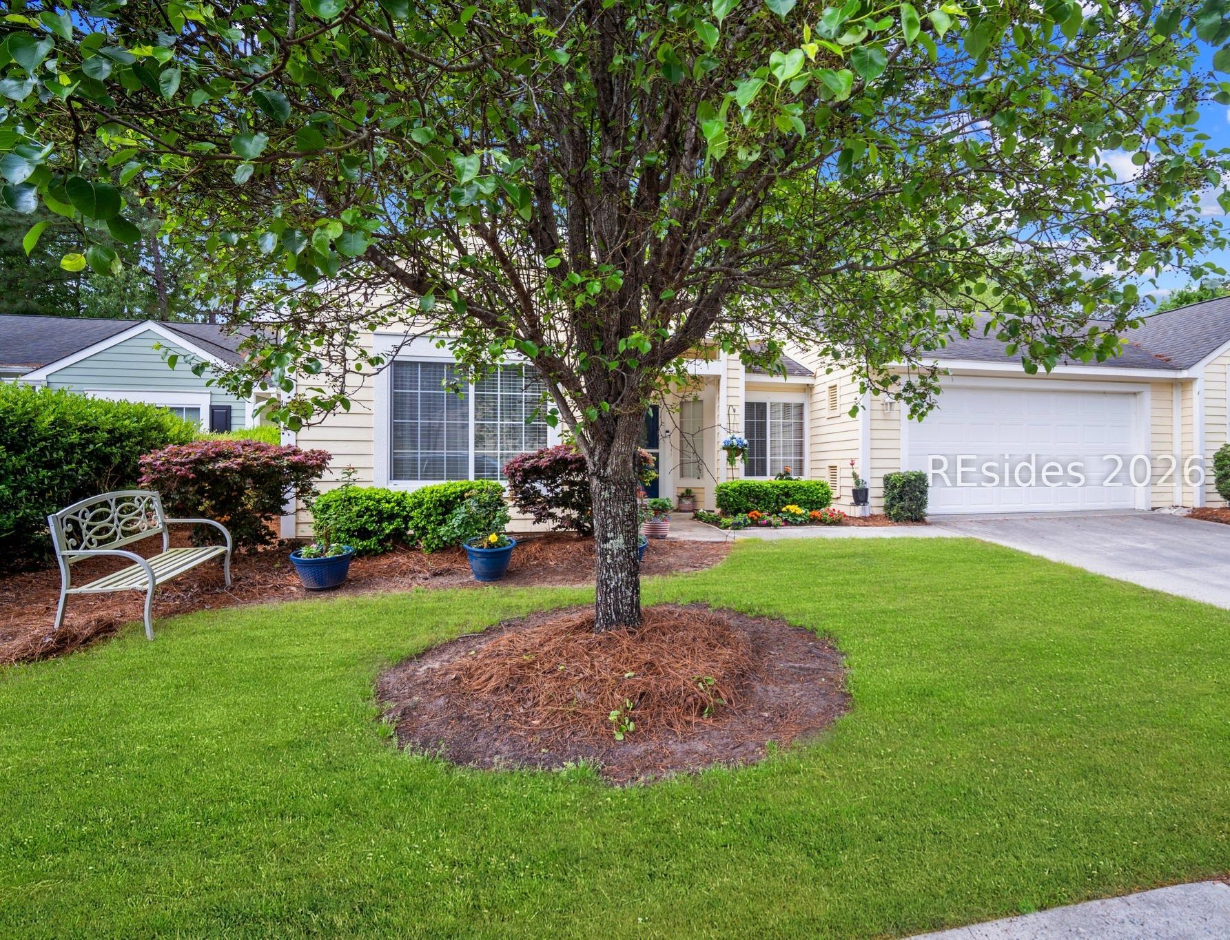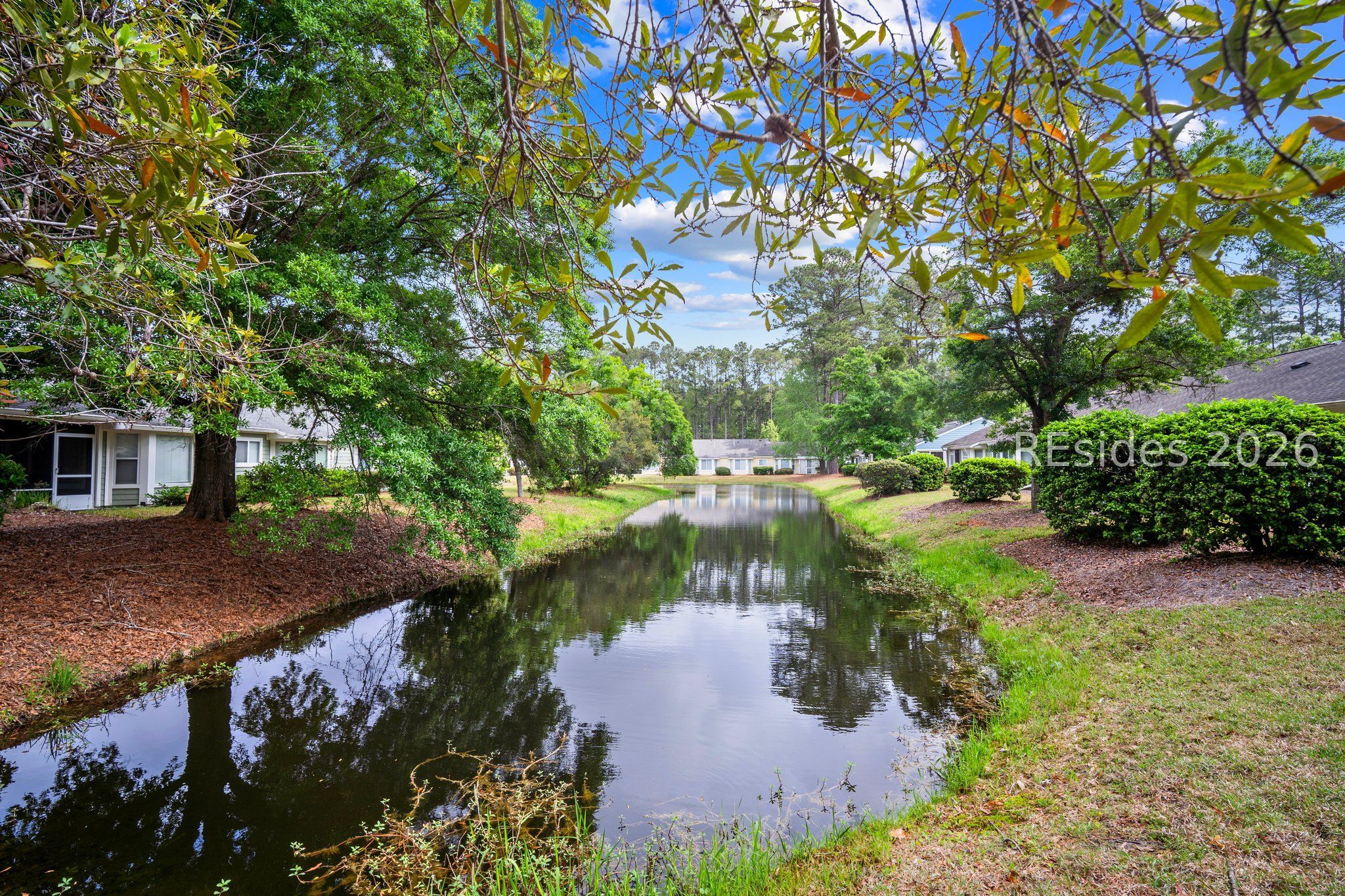 Light-filled one-level end unit in Sun City, tucked away on a peaceful cul-de-sac on the Beaufort County side with lower taxes. This well-maintained 2-bedroom, 2-bath townhome offers easy living with an open floor plan, formal dining area, and an eat-in kitchen featuring stainless steel appliances and a counter-height bar. The bright Carolina room is perfect for relaxing and enjoying wooded views, while the charming front porch overlooks the lagoon. The home also features a spacious primary suite with a walk-in closet, smooth ceilings, tile and LVP flooring, a 2-car garage, fresh interior paint, and new light fixtures. Move-in ready and maintenance-free on the exterior with landscaping included, this property also offers access to Sun City's world-class amenities, including golf, pools, clubhouse, pickleball, and more, all just minutes from downtown Bluffton, shopping, and dining.