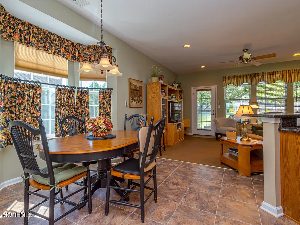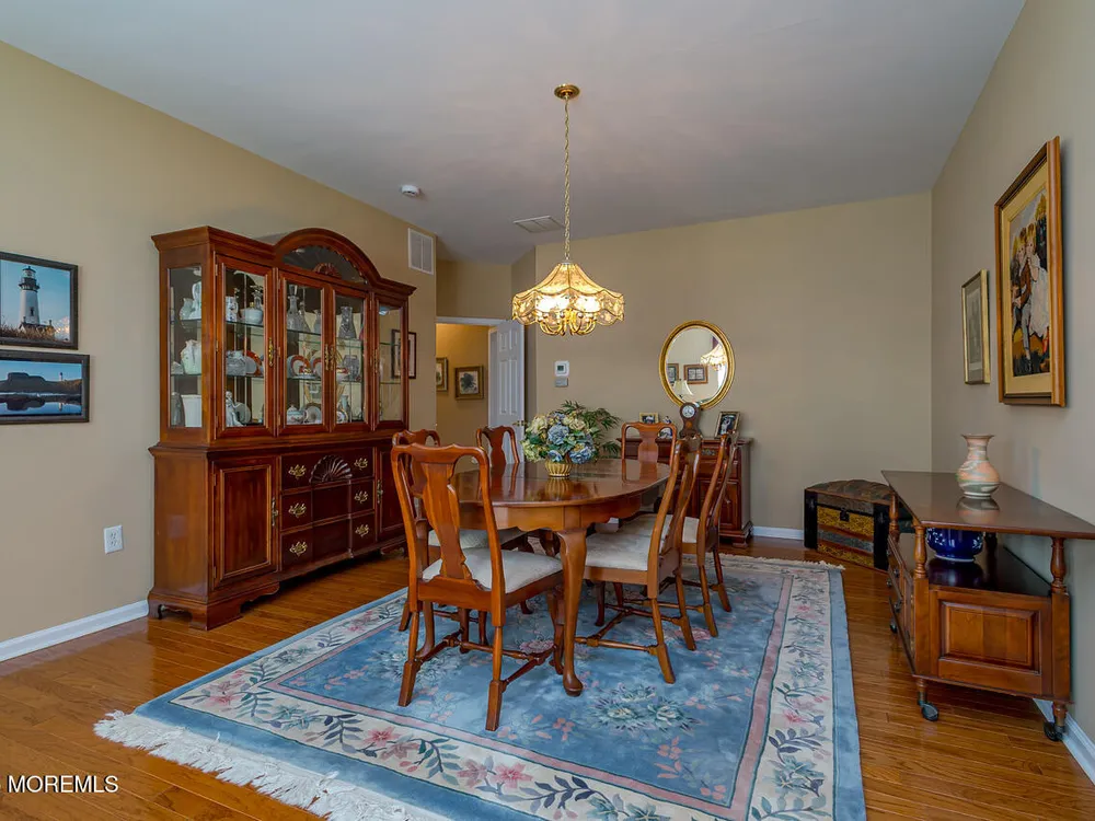 Welcome to this beautifully maintained Inverness modelâ€''perfect for those considering a comfortable downsizing option. From the moment you arrive, the charming front porch and meticulously landscaped yard invite you to unwind and enjoy peaceful evenings outdoors. The rear patio, complete with an awning, offers an ideal space for summer barbecues or quiet relaxation. Step inside to discover gleaming hardwood floors that flow seamlessly through the foyer, dining room, and living room. The open-concept kitchen features elegant granite countertops and connects effortlessly to the family room, while a large window in the breakfast area fills the space with natural light. The privately situated primary suite is a true retreat, boasting two walk-in closets, a generously sized soaking tub, and a separate stall shower. A second bedroom, conveniently located near a full bath, is perfect for guests. A dedicated home office adds valuable flexibility to the layout. Storage is never a concern thanks to the finished attic space, offering plenty of room for seasonal items and more. Located in the vibrant Four Seasons at South Knolls community, residents enjoy access to a wide array of amenities, including indoor, outdoor & kiddie pools, fitness center, pickleball and tennis courts, a clubhouse, and numerous social activities.