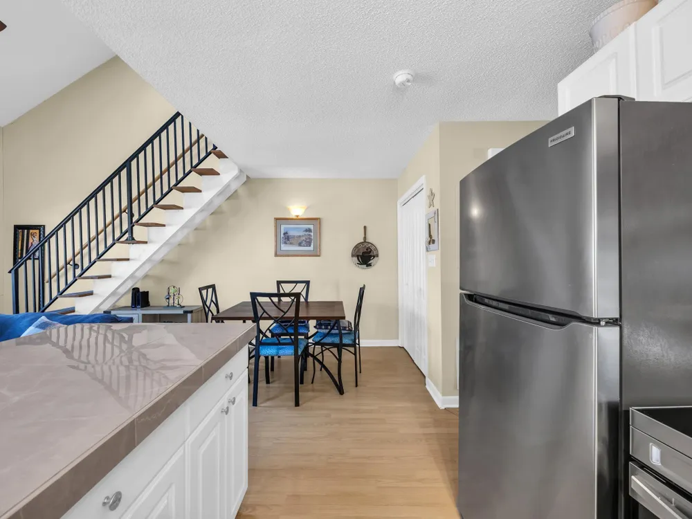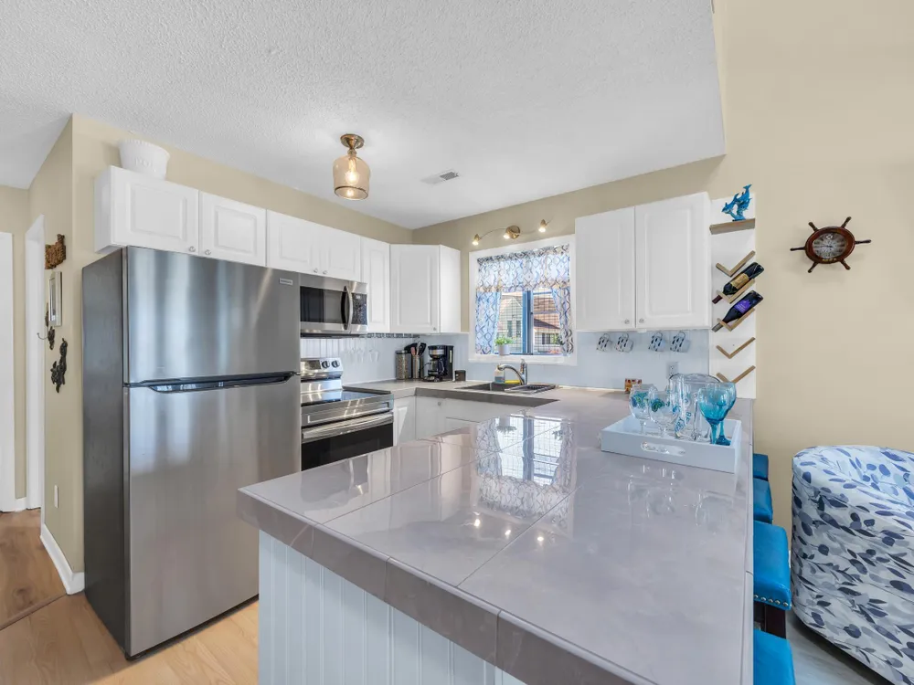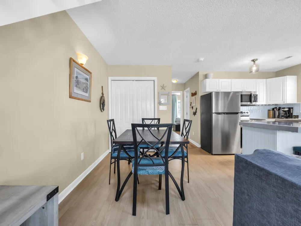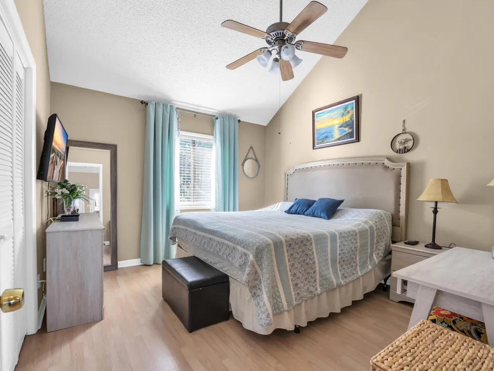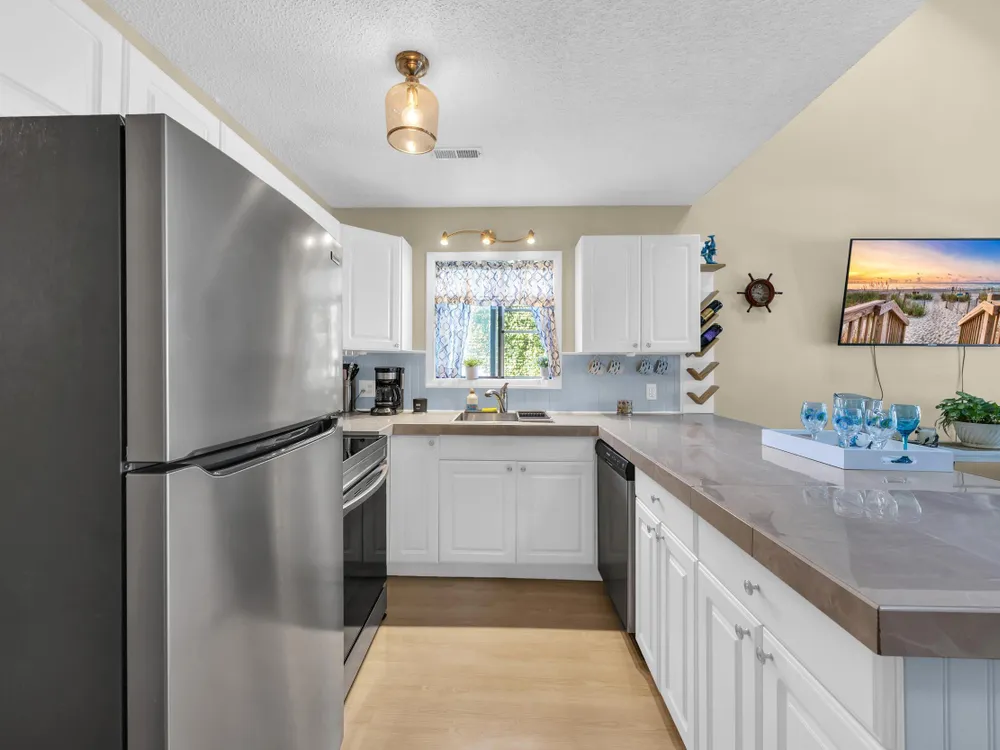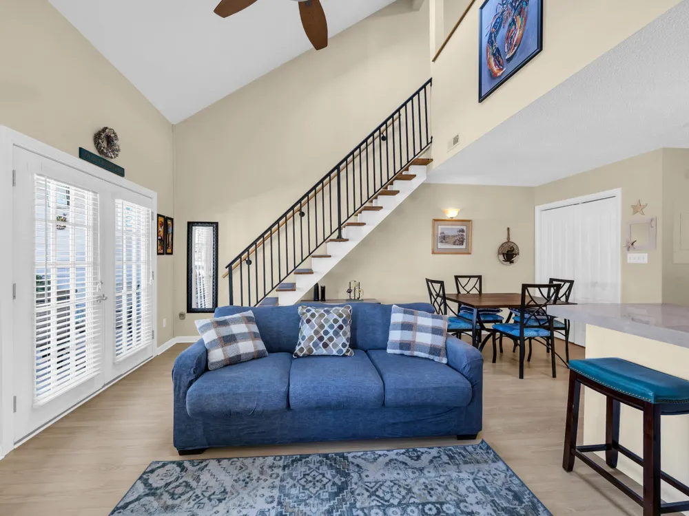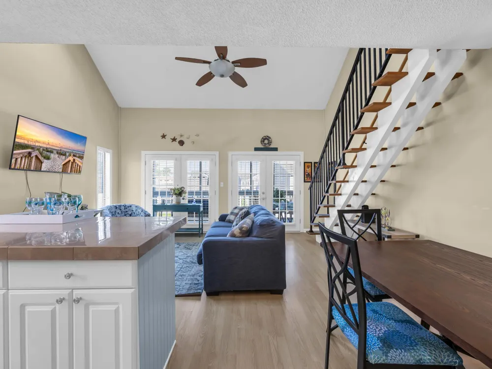 Welcome to Fairway Village at Island Green, where comfort meets convenience in this beautifully updated and fully furnished 2-bedroom, 2-bath home. From the moment you step inside, you'll appreciate the thoughtful upgrades and inviting layout. Vaulted ceilings with skylights and extra windows flood the living area with natural light, creating an open and airy feel. The living room seamlessly extends to the screened-in back porch through elegant double French doors, providing the perfect space to enjoy your morning coffee, unwind with a book, or simply take in the peaceful surroundings. The kitchen is both stylish and functional, featuring stainless steel appliances installed in 2022, including a smooth-top stove, built-in microwave, and refrigerator, along with a dishwasher replaced in 2020. In 2023, the kitchen was further enhanced with new countertops and a modern sink. Fresh laminate flooring in the entryway and both bathrooms was added in 2024, while the HVAC system and washer/dryer were replaced in 2020, giving you peace of mind for years to come. The primary bedroom, conveniently located on the main level, provides comfort and privacy with easy access to the first-floor full bath. Upstairs, the loft-style second bedroom is spacious and versatile, complete with its own full bath, perfect for guests family members, or even a home office. Fairway Village is an established community that offers flexibility whether you're searching for a primary residence, a second home, or an investment property. Annual rentals are permitted, giving you multiple opportunities to generate income. The community features a swimming pool just a short walk away, ideal for cooling off on warm Carolina days. HOA dues include water, sewer, internet and basic cable, adding extra value and convenience. Located within the Island Green community, this condo offers a peaceful retreat that's still close to everything you need. You'll enjoy easy access to shopping, dining, and entertainment, with the beach just a short drive away. All of this comes without the congestion and crowds of busier areas, making it the perfect Coastal Carolina lifestyle getaway.