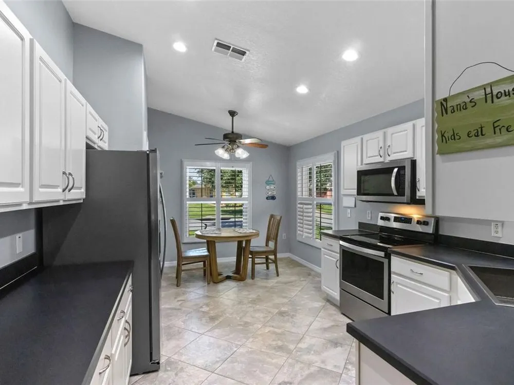 *NEW ROOF SEPTEMBER 2025!* Welcome home to this *MOVE-IN READY*, (AC - 2022),property featuring 2 Bedrooms PLUS Den, 2 bathrooms and a *PRIVATE WATER VIEW & TREE VIEW* in the gorgeous gated 55+ community of Solivita! This home truly shows like a MODEL! **Please Note: This home can be sold COMPLETELY FURNISHED/TURNKEY AND WITH GOLF CART – Outside of Contract**. This home is also FULL SOLAR! Enjoy $33 a month electric bills! Also the CDD DEBT Portion is PAID OFF. As you walk up the driveway and enjoy the beautiful luxurious landscaping as you enter the front door. Fall in love with the completely PRIVATE WATER & CONSERVATION VIEW while relaxing on your New Extended Lanai (2020) with Motorized Shade/Awning! All windows are DOUBLE PANE, LOW-E, Hurricane Proof Windows! (2021) The backyard is completely private, where you can watch the birds, trees, and enjoy the Florida breeze. This spacious open floorplan features VAULTED CEILINGS in the Large Living Room and Dining Room. The kitchen is large with Stainless Steel Appliances, Beautiful Cabinetry and space for a Dinette Area with windows for plenty of natural light. This home is a split bedroom concept that creates the ideal environment for guests. The Primary Bedroom offers a Large En-Suite Bathroom with a COMPLETELY REMODELED Master Shower, plenty of Counter Space, Linen Closet and Walk-in Closet. And the best part is your PRIVATE VIEWS as you sit on the Large Covered, Screened-in Lanai. Extra Upgrades include: AC (2022), Double Pane Windows (2021), Entire Home WATER FILTRATION SYSTEM, Laminate Floors throughout Living areas, New Farm Sink, Stainless Steel Appliances, Plantation Shutters Throughout, Completely Renovated Master Shower, and New Extended Lanai (2020). Does it get any better than this? Solivita offers endless amenities including 14 heated swimming pools, indoor pool and indoor walking track, state of the art fitness centers, pickleball courts, lighted tennis courts, golf, over 250+ clubs to join, 3 community restaurants, Farmers Markets every Monday and Friday, and so much more! Only 30 minutes from Disney and all of Orlando’s major attractions! Publix, Aldi’s & Super Walmart are also just a few miles outside the Main Gate! Convenient to shopping and major roadways. Poinciana Lakes Plaza is a MAJOR NEW SHOPPING CENTER that opened directly across from the Solivita Main Gate! This AMAZING new shopping center features so many restaurants and shopping including: Sprouts Grocery, Ross, TJ MAXX, ULTA Beauty, Hair Cuttery, Burlington, Rack Room Shoes, PETCO, Outback, 5 Guys, First Watch, Urgent Care, Dentist, TD Bank – AND SO MUCH MORE TO COME! Call today to schedule your private showing!