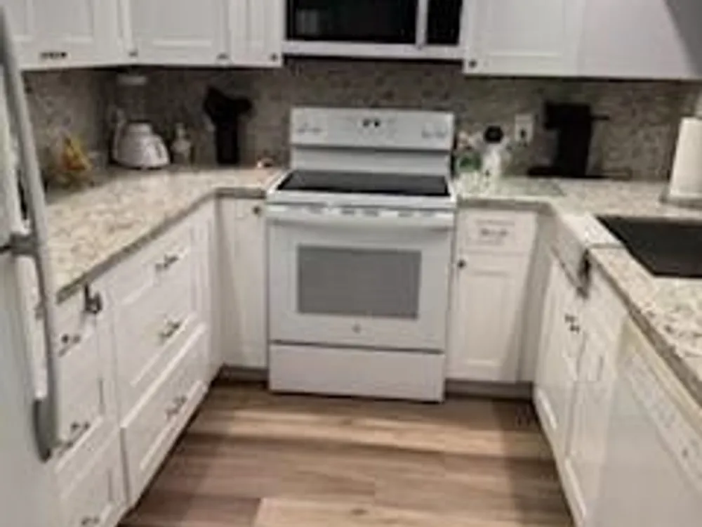 1st floor unit. Larger one bedroom. Luxury Vinyl plank, flooring throughout and tile in entry and bathroom.New kitchen with white shaker cabinets, recessed lighting, granite counters and backsplash. Open view to the golf course. Washer and dryer in unit. Lots of storage. Nice pantry in kitchen. Plenty of storage. Nice building with pool and mail close to unit. Parking is also right in front of the unit. Stores and highways close.Milestone reports are completed. First Service is the HOA. CVP $272.76 & Lancaster $482