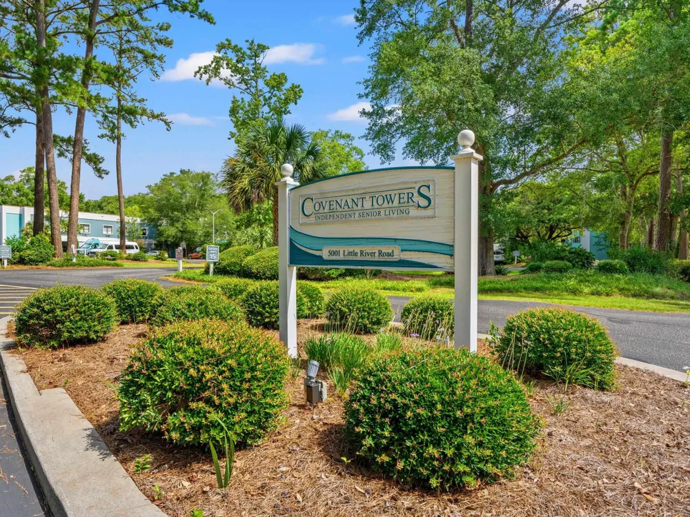 Welcome to Covenant Towers, a premier 55 plus community sprawling on 9 acres tucked in the heart of Myrtle Beach and just one mile to the beach. Covenant Towers offers Truly one of a kind condo, you cannot help but fall in love with this deluxe 2 bedroom condo and it's spectacular views. Upon entering your eyes will be immediately drawn to the pond and golf course views of the historic Pine Lakes Golf Course. Located on the first floor and first unit in the hallway, you will always have easy and convenient access from the parking lot. This 2 bedroom unit offers lots of natural light, spacious living area, a master with a generously sized walk in closet and en suite bath. A spacious kitchen with new appliances as well as in unit washer and dryer give you all of the convenience you need. Your private patio allows you to enjoy sunrise, sunset, nature and beautiful views of the pond and golf course. You're also just steps to the sparkling community pool. Schedule your showing today!