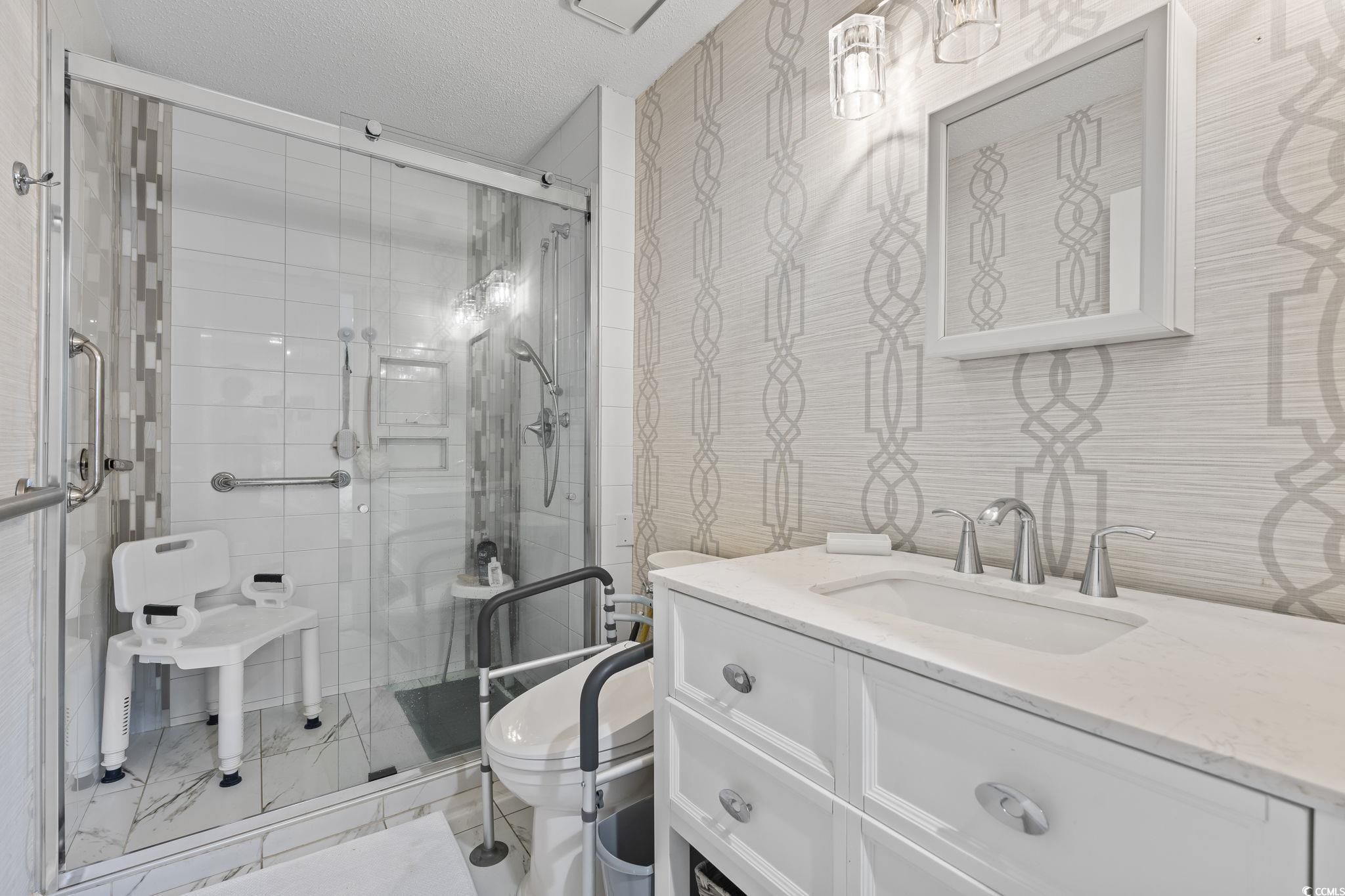 Stunning First Floor 2 Bedroom 2 Bathroom in the 55+ Covenant Towers complex in Myrtle Beach! Completely remodeled 4 years ago from top to bottom with finishes and beautiful decor! Stainless Steel Appliances, Glass Back Splash, LVP Flooring, Walk-in Showers, so much more! Close to dining, shopping, and entertainment, with just a short 5 minute drive to the Beach! The utilities included in the one monthly HOA fee are as follows: Cable TV, internet service, Pest, Evening Dining, Laundry service and Housekeeping, 24 hour security, activities director, and more! There is an onsite Beauty Salon, Game Room, Library, and Coffee Shop. Perfect Place to retire and be close to the Beach! Schedule a Showing TODAY! Do NOT miss this Unit! Has to be one of THE NICEST units ever there!