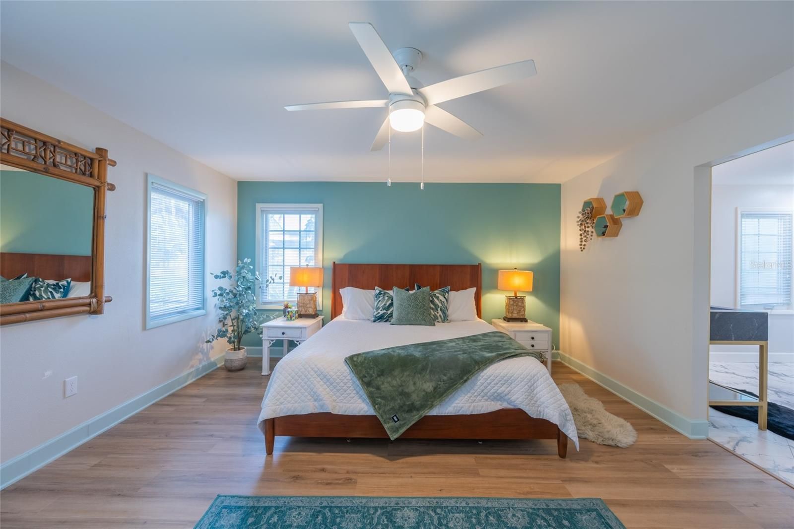 - Cathedral Ceiling(s), Ceiling Fan(s), Chair Rail, Eat-in Kitchen, High Ceilings, Kitchen/Family Room Combo, Main Level Primary, Stone Counters, Thermostat, Vaulted Ceiling(s), Walk-In Closet(s), Window Treatments