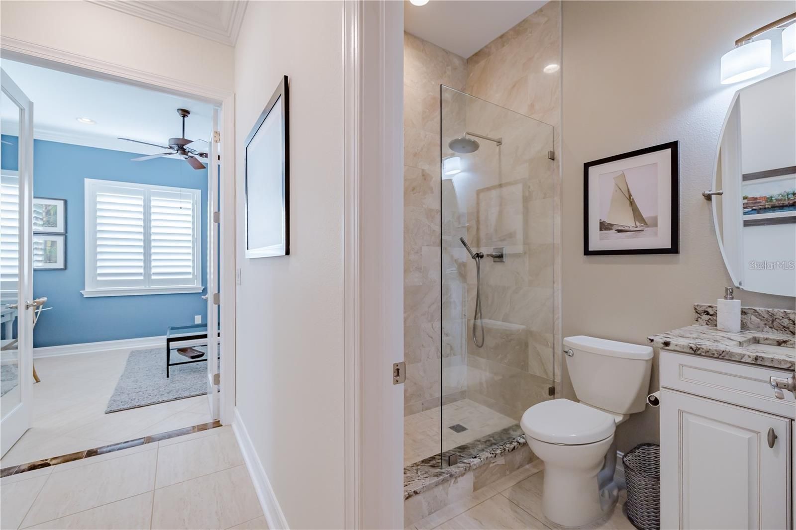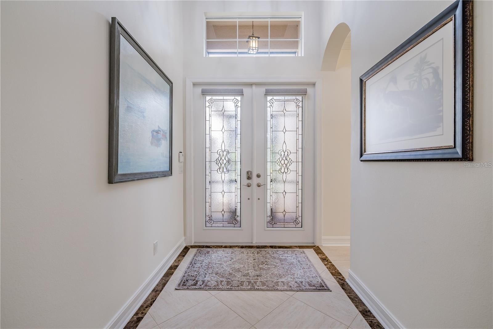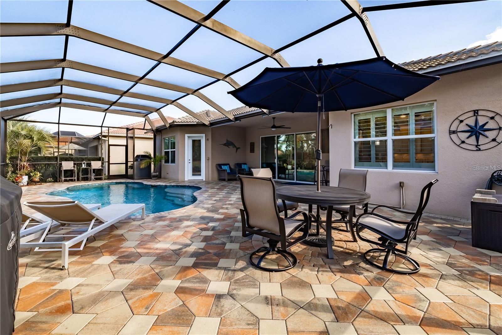 If you desire an exceptional house in an exceptional community, here it is. This 2,180SF LIVORNO model has 3 bedrooms, a Great Room, Dining Room, and Kitchen with a Dinette. Oh, did I mention that this LIVORNO has a spectacular backyard with a gorgeous pool. Built by GL Homes in Valencia Lakes, in Tampa Bay's premier 55+Active Adult Community, this is a house that you will be unreservedly proud to call home. Beyond the screened-in front Portico, are beautiful etched-glass French Double-Doors leading into the Foyer with porcelain tile framed by marble borders, and a 15' ceiling. The open floorplan is anchored by an expansive Great Room which features a double-tray ceiling and has a commanding view of the Dining Room, Kitchen, Lanai and pool. The Kitchen is spectacular. Luxury granite counters adorn prime 42” solid-wood cabinetry: lower cabinets are soft-close pot drawers & upper cabinets have undermount lighting & soft-close doors. The discerning Chef will love the LG ThinQ range with convection oven, the LG ThinQ microwave with extendable range hood, the SAMSUNG three door fridge, and a near-silent Kitchen-Aid dishwasher. The Dinette is perfect space for casual or intimate meals and features a custom dry bar. The Master Bedroom features a 10’-to-11’ Tray ceiling, a full-length glass door to the Screen Room, engineered hardwood floors, 2 bespoke Walk-In Closets and a gorgeous Ensuite Bathroom with a W/C for the Commode. The no-step shower has floor-to-ceiling porcelain tile. The 2 separated vanities are capped by luxury granite counters and a stunning mosaic-glass backsplash. Bedrooms 2 and 3 are at the opposite corner of the house, have lots of natural light, and provide both privacy and great comfort. The second Bathroom features Italian marble tile walls, a glass-enclosed shower with 2 showerheads, and a cabinet vanity with luxury granite. The Laundry Room features washer, dryer and a cabinet vanity with an uber-lux granite counter and utility sink. All common areas feature exquisite over-sized porcelain tile, crown molding, LED recessed lighting and modern light fixtures and windows throughout are adorned with plantation shutters. The front French Double-Doors and the Master Bedroom door feature GRABER dual shade blinds. This home is amazingly well-appointed. The garage is 20’x20’ and has a superior epoxy floor and lots of overhead storage racks. Environmental comforts are provided by a 4-Ton TRANE HVAC with humidity controls, a new HALO Ultimate Salt-Free water-softener system, a new STATE 50-gal water heater with pressure-relief tank, and the Kitchen has a Water Filtration System. The backyard is a space to behold. The extended Screen Room spans the full 61’ of the house and is home to a 27’x18’ lighted gunite pool that was resurfaced and tiled in Spring 2022 and is equipped with an automatic in-floor pop-up cleaning system, solar panel heating, a new pool pump and salt-water chlorinator, and a new PENTAIR Clean & Clear Filter was installed in 2024. Elaborate pavers surround the pool and create a large pool deck for casual times and a 22’x8’ covered Lanai from which you can watch your favorite events on the exterior wall-mounted tv. This LIVORNO model is exceptional. Seize the day and start living your idyllic life with the knowledge that you have earned this treasure. Furniture indoor and outdoor is negotiable. Note: The Bistro by Mattison's is scheduled to open in Fall 2025. Seize the day!