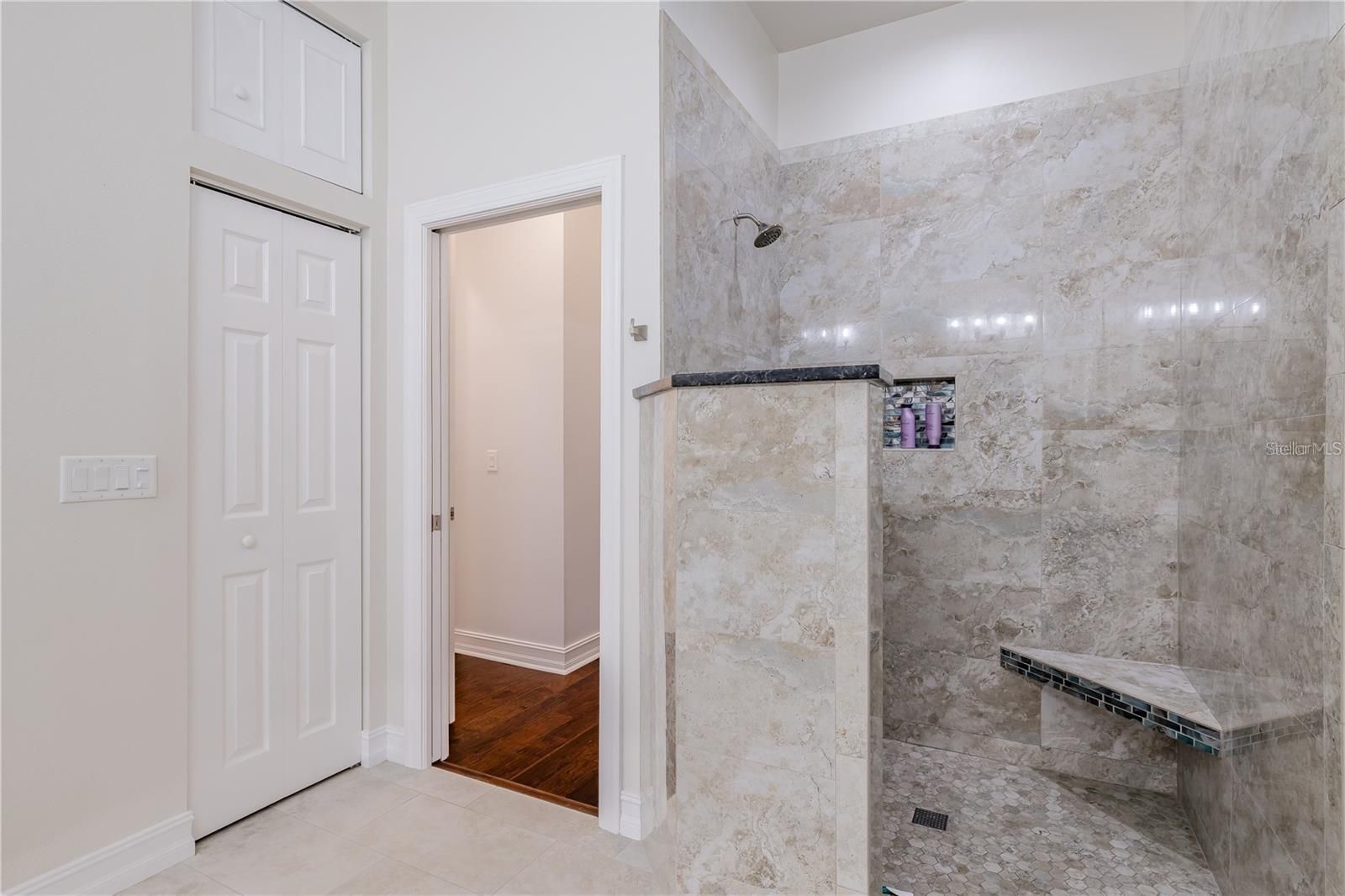 - Built-in Features, Ceiling Fan(s), Crown Molding, Eat-in Kitchen, High Ceilings, Open Floorplan, Main Level Primary, Stone Counters, Thermostat, Tray Ceiling(s), Walk-In Closet(s), Window Treatments