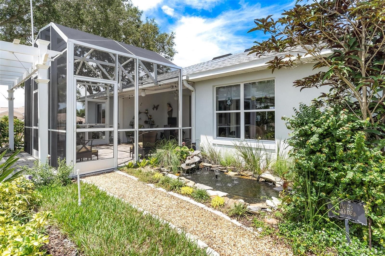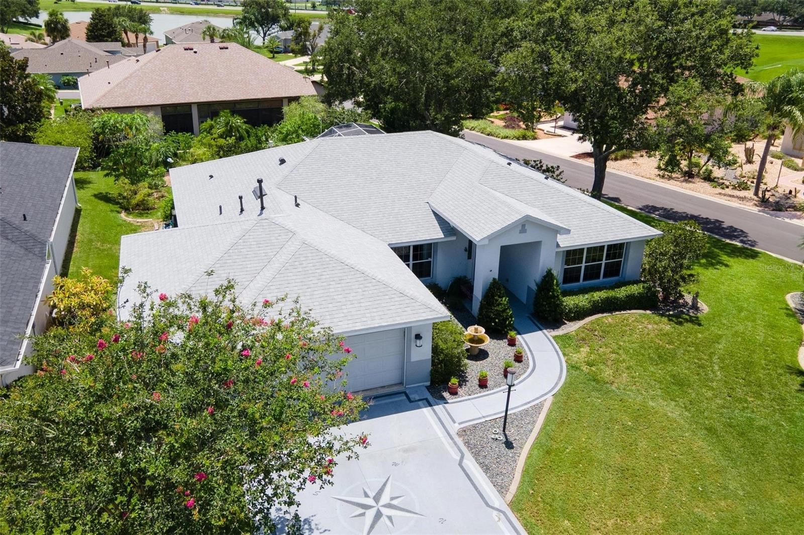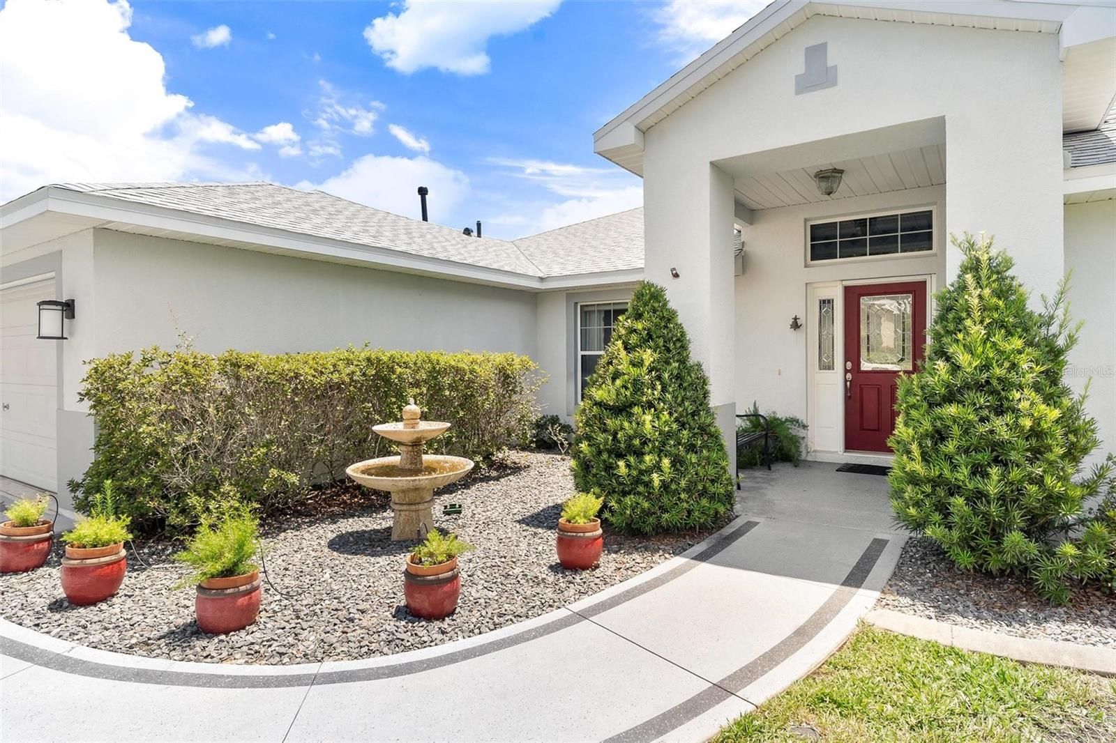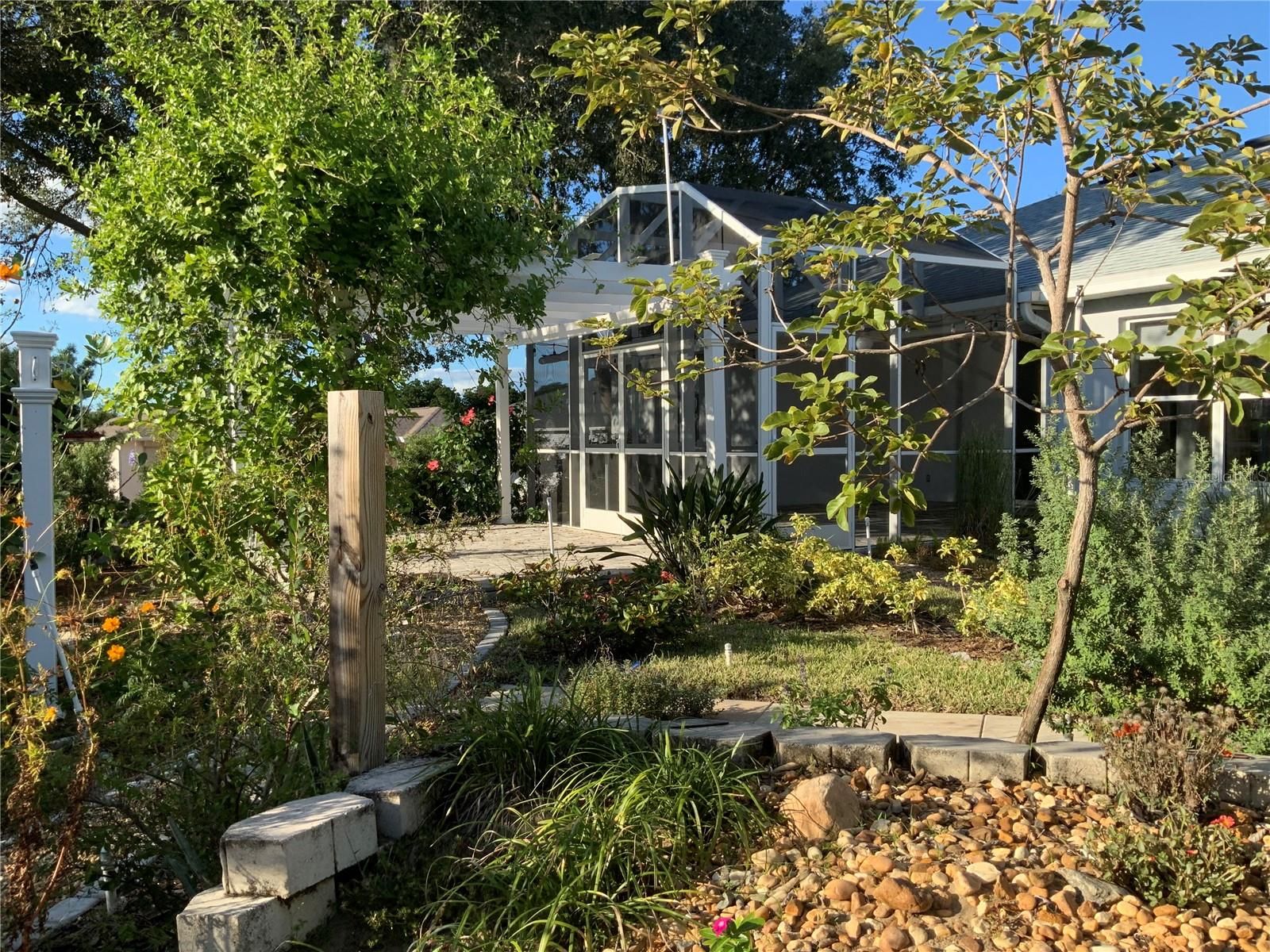This quality custom home, in the prestigious 55+ Waterfront community of Royal Harbor, sits proudly on an extensively landscaped corner lot. Enjoy the lushly landscaped Garden oasis in your own backyard, complete with pathways, pond and fountains, and a custom irrigation system for each area. The lovely front entry with leaded glass front door and custom stained glass transom window welcomes you and your guests. Once inside, you will immediately appreciate the thoughtful custom floor plan, with a large Great Room , Dining Room, and living Room/Den/Office/Bonus Room. The Great Room, with gas fireplace, provides access, through large sliders, to a large Screened Lanai with beautiful pavers, and is open to the spacious Kitchen and inviting Breakfast Nook, all overlooking the Garden Oasis, pond, and fountains. The Kitchen also includes a large breakfast bar and has ample solid wood cabinets and Corian countertops. The Primary Suite provides the retreat you deserve, with vaulted ceilings, oversized walk-in closet, and ensuite Bath featuring a large walk-in shower and double vanity. Your guests will also appreciate the privacy provided by the Guest Wing of this nicely designed 3 bedroom Split Plan. The Garage just may be your favorite thing, with 763 square feet of wonderful space for you to use and enjoy. It is set up with a large workshop area and a separate area for special creative projects. There is lots of space for storage, toys and cars too! This home has been very well maintained, and has a New Roof installed 2-2025, and New A/C in 2024. This home is ready for you to move right in and enjoy the lifestyle you deserve, in the community that has it all! Royal Harbor on the Harris Chain of Lakes, is a great community, with all the Amenities and Activities that you would expect! Enjoy the Clubhouse, with Social Hall, Fitness Center, Library, Billiards, Pool and Spa. Play Tennis, Pickleball, Bocce and Shuffleboard. Enjoy the Community Docks. There is even RV, Boat and Trailer Storage. Come make new friends and live the lifestyle you have been dreaming of. Call today for your private showing. The main living area has been recently painted in neutral colors. All of the furniture has been removed. Furnished photos remain for reference.