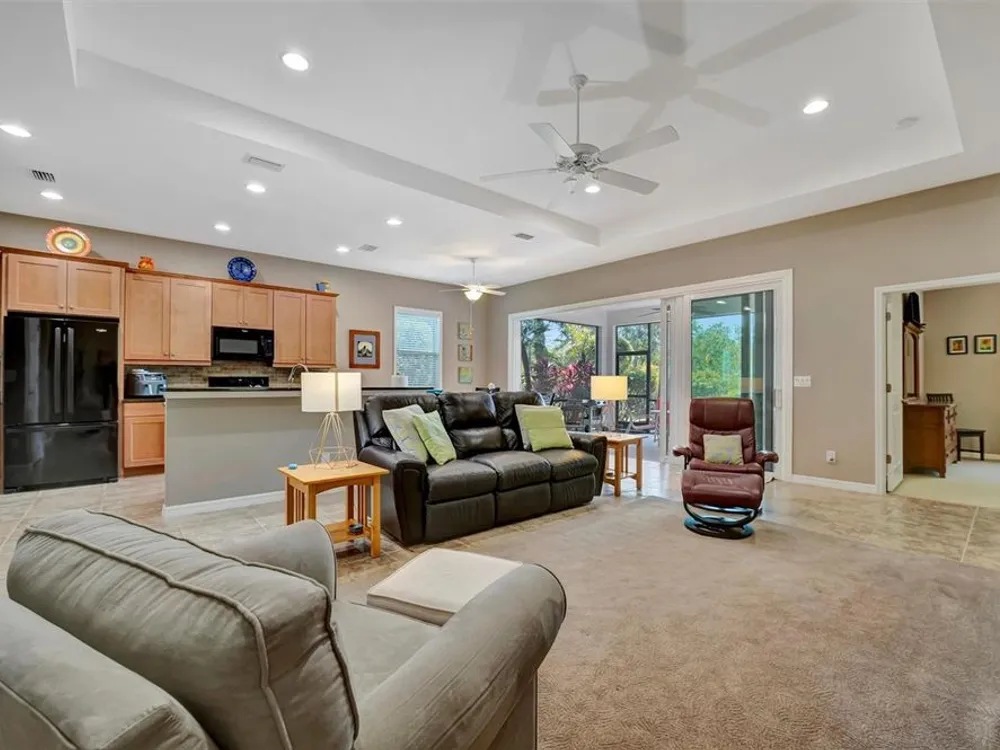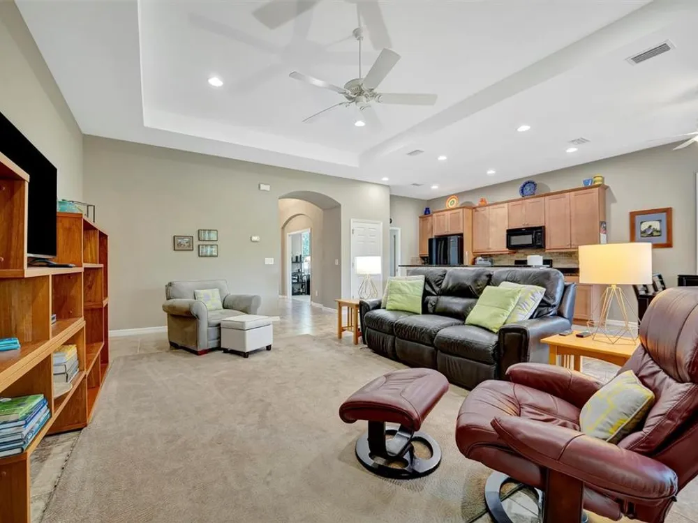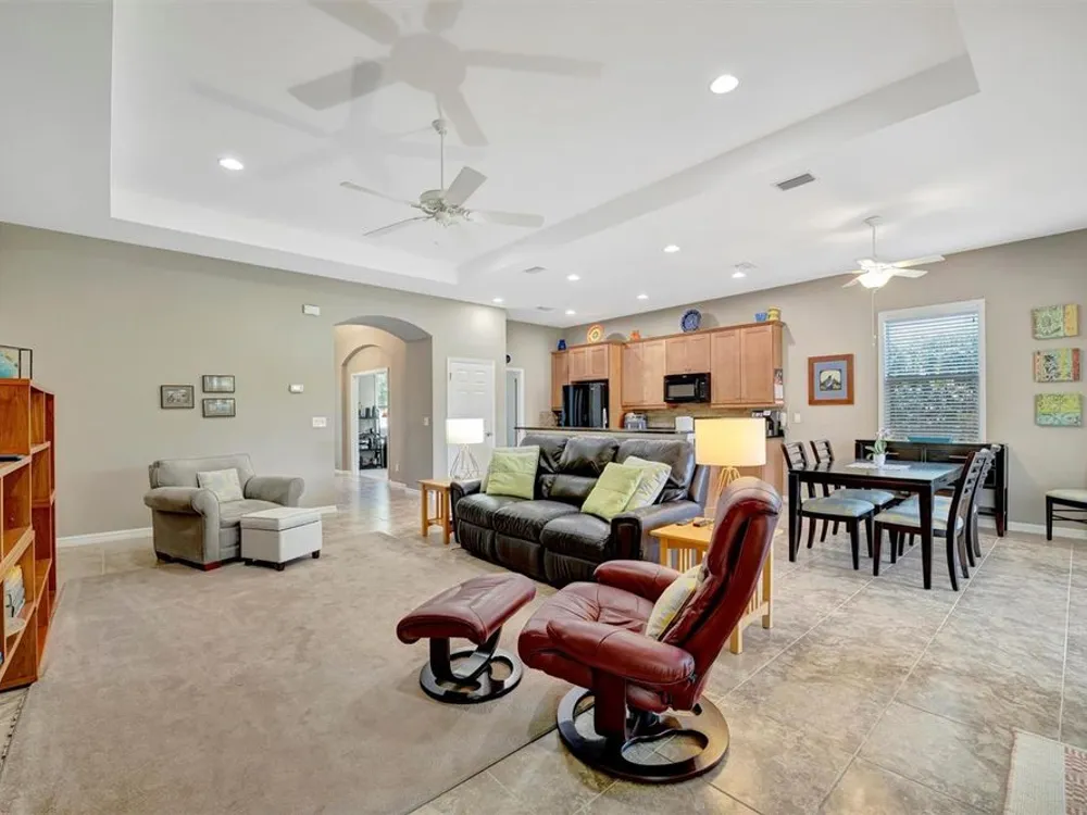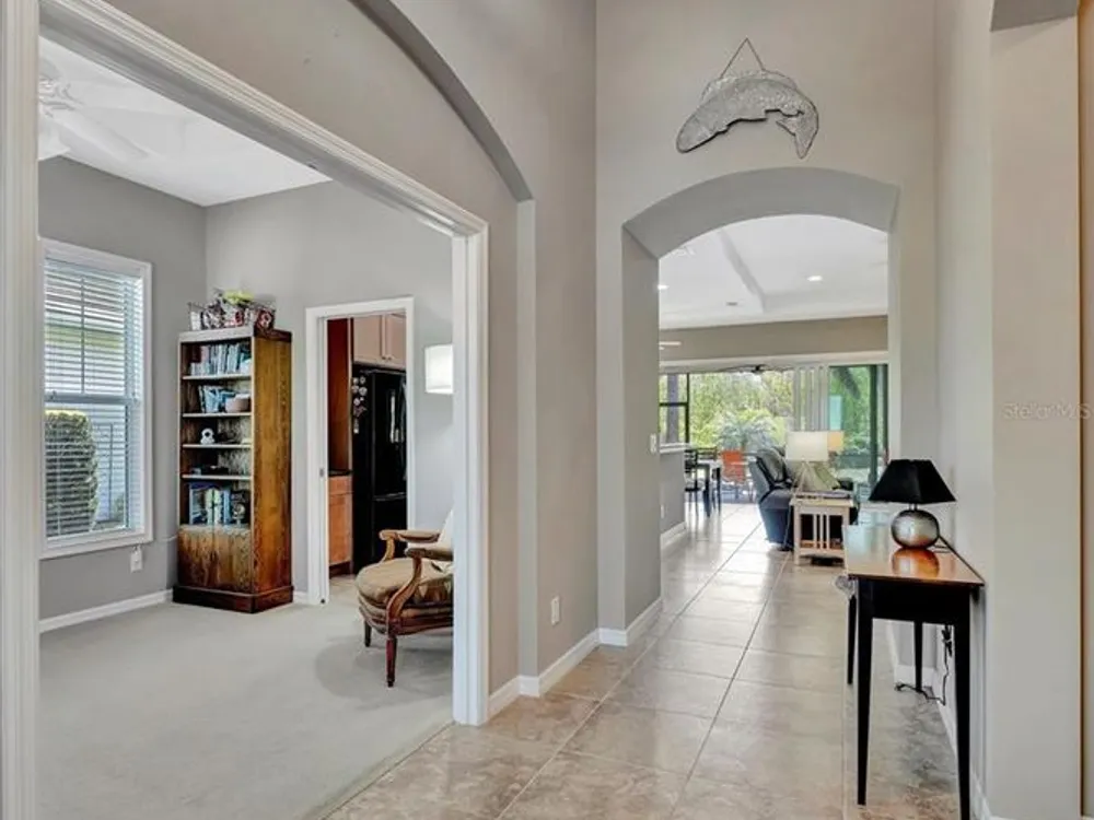 Tour this stunning 3-bedroom plus den, 2-bath, 2-car garage home in Tidewater Preserve—Bradenton’s premier boating community offering direct river access. This beautifully maintained residence comes furnished and features hurricane-impact windows, a whole-home generator, tile flooring in the main living areas, and plush carpeting in the bedrooms. Soaring 10+ foot ceilings with elegant tray detailing add a touch of luxury throughout. Just off the entry, a stylish den/home office offers the perfect space to work or relax. The open-concept kitchen is a true highlight, boasting custom wood cabinetry, a stone tile backsplash, granite countertops, and a spacious island featuring a reverse osmosis system and counter bar that opens seamlessly to the great room. Four hurricane-impact sliding glass doors blend indoor and outdoor living—perfect for entertaining. The luxurious primary suite features tray ceilings, two walk-in closets and a spa-inspired en-suite bath. The en-suite bath includes a garden tub, dual vanities, a custom glass-enclosed shower, and a private water closet. For boating enthusiasts, Tidewater Preserve offers a marina with boat lifts, complete with electric and water, providing direct access to the Manatee River. Whether you're cruising to a favorite waterfront restaurant or exploring Anna Maria Island or Egmont Key, the water is your playground. This gated community features 24-hour guard security and a full-time event coordinator. Residents enjoy three resort-style pools, two fitness centers, a clubhouse, tennis courts, riverfront nature trails, a dog park, playground, kayak launch, and a full-service marina. Best of all—there are no CDD fees. An exceptional home in a premier waterfront community—don’t miss your opportunity to make it yours. Excluded from sale are personal items, small bistro table on lanai and master bedroom bedside table lamps.