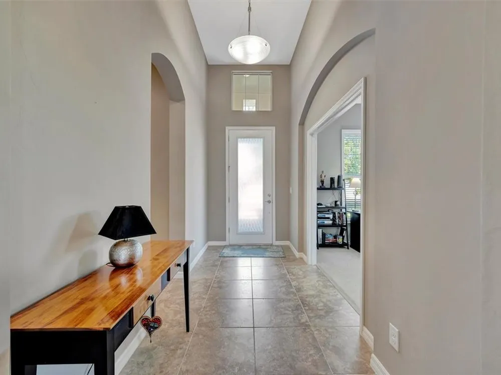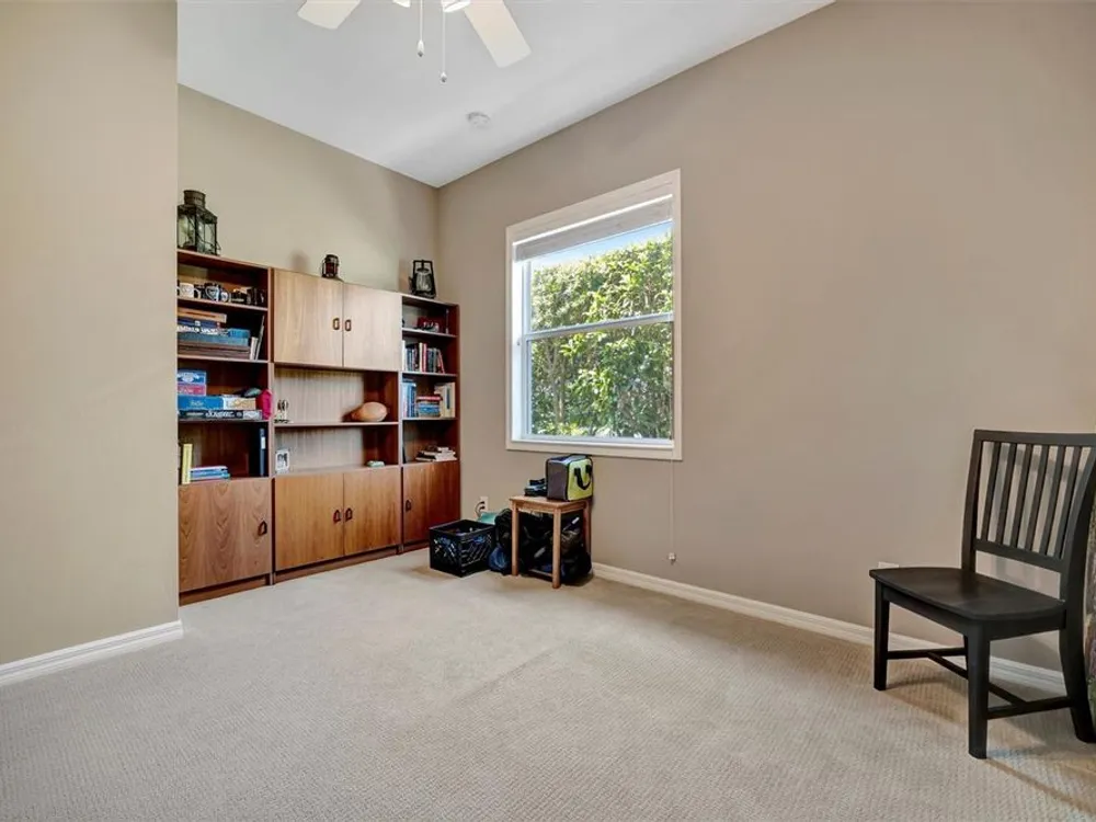 - Ceiling Fan(s), High Ceilings, Open Floorplan, Main Level Primary, Solid Surface Counters, Solid-Wood Cabinets, Split Bedrooms, Window Treatments