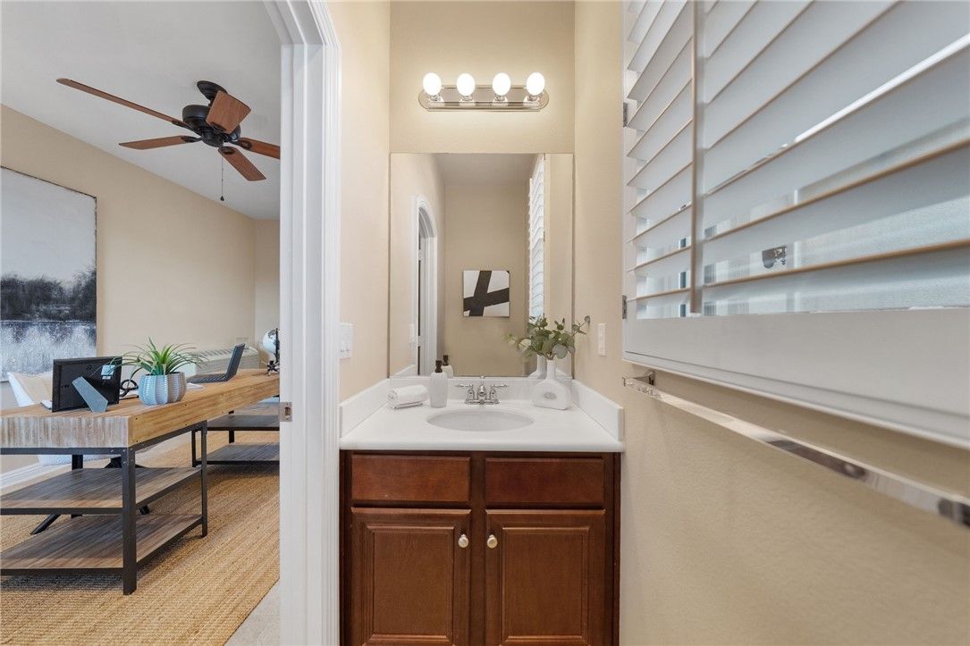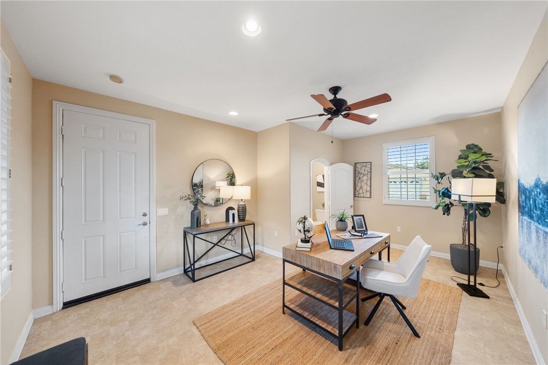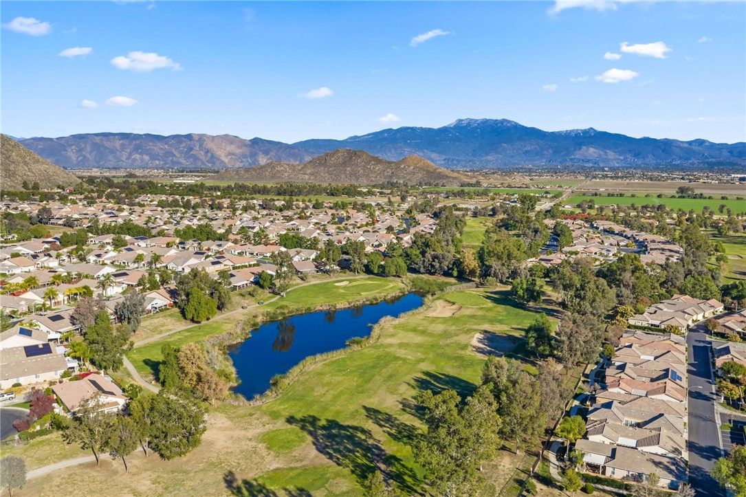 Welcome to Four Seasons, Hemet’s premier 55+ active adult community offering resort style living surrounded by scenic hills and golf course views. The main home features three bedrooms and two full baths, and the property also includes an attached Casita with its own separate exterior entrance, providing an ideal fourth bedroom + Bath for multi generational living or office space. Inside, the main living spaces offer hardwood floors, crown molding, shutters and recessed lighting. The kitchen includes granite countertops, ample cabinetry and a comfortable layout that opens to the living area. The living room features a custom built in and a warm fireplace, creating an inviting space to relax or entertain. A separate laundry room with a sink and additional storage adds everyday convenience. The backyard is designed for privacy and comfort with a spa and a custom fire pit overlooking the surrounding hills and portions of the golf course. Residents of Four Seasons enjoy an impressive list of amenities including a junior Olympic community pool, a year-round heated spa, clubhouse, ballroom, fitness center with treadmills and ellipticals and a game room. This vibrant community provides an active lifestyle with beautifully maintained grounds and a welcoming atmosphere. Experience resort style living in one of Hemet’s most desirable 55+ neighborhoods. This home combines comfort, style and exceptional amenities in a peaceful golf course setting.