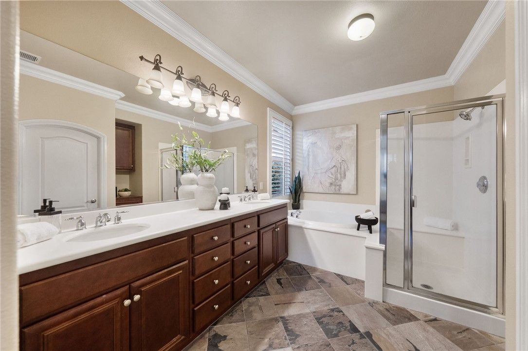- Crown Molding, In-Law Floorplan, Open Floorplan, Recessed Lighting, All Bedrooms on Lower Level, Laundry Facility, Living Room, Bedroom on Main Level, Main Level Primary, Primary Bathroom