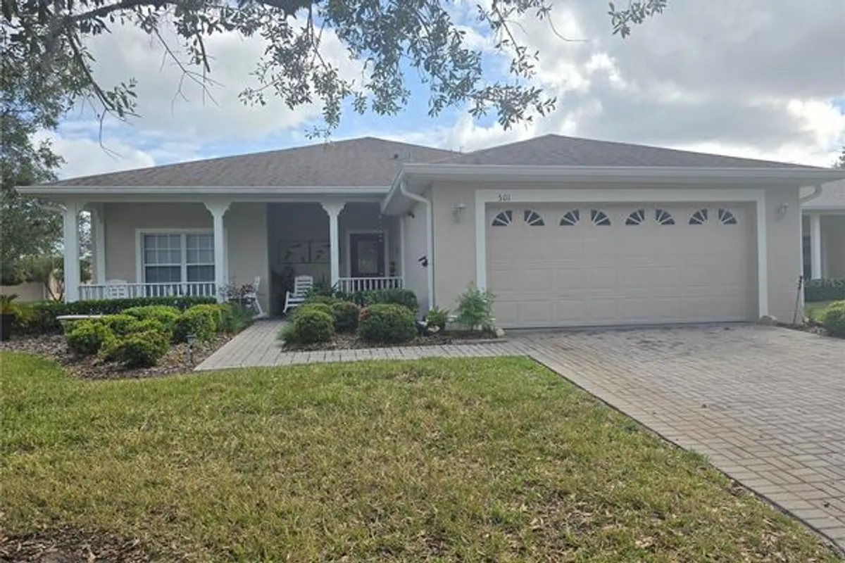 Premium Corner Lot Home with Stunning Sonata Floor Plan in the Heart of Solivita. Discover resort-style living in this beautifully maintained home, located on a premium corner lot in the vibrant, active adult 55+ community of Solivita. Pride of ownership shines throughout this property, which boasts an inviting front porch, an open-concept layout, and a bright Florida room that floods the space with natural light. The kitchen is a chef’s delight, featuring modern stainless steel appliances and plenty of counter space. Step outside to enjoy a peaceful open patio, perfect for relaxing or entertaining. This home is better than new, offering a blend of comfort, style, and functionality. Solivita is a guard-gated community with 24-hour security, offering an unparalleled lifestyle. Residents enjoy a wide array of amenities, including multiple pools, a spa, cabanas, parks, a golf course, restaurants, and a recreation center. With daily scheduled activities, there’s always something to do! Don’t miss this opportunity to own a dream home in an award-winning community. Easy to show—schedule your tour today!