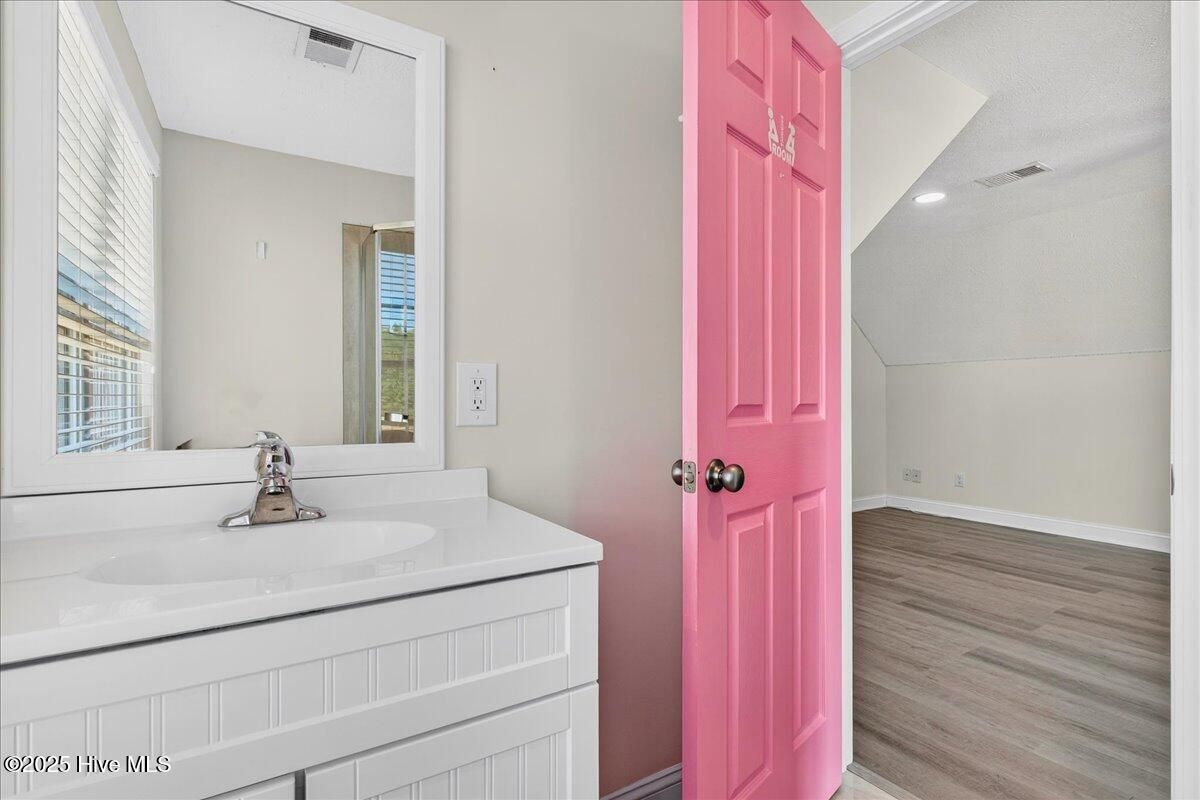 - Master Downstairs, Walk-in Closet(s), Vaulted Ceiling(s), Tray Ceiling(s), Entrance Foyer, Solid Surface, Ceiling Fan(s), Walk-in Shower