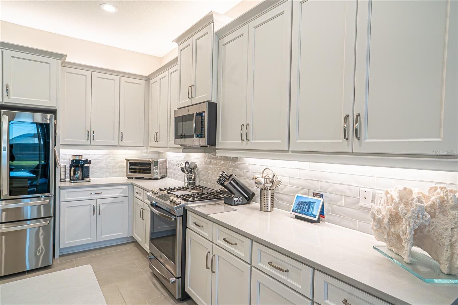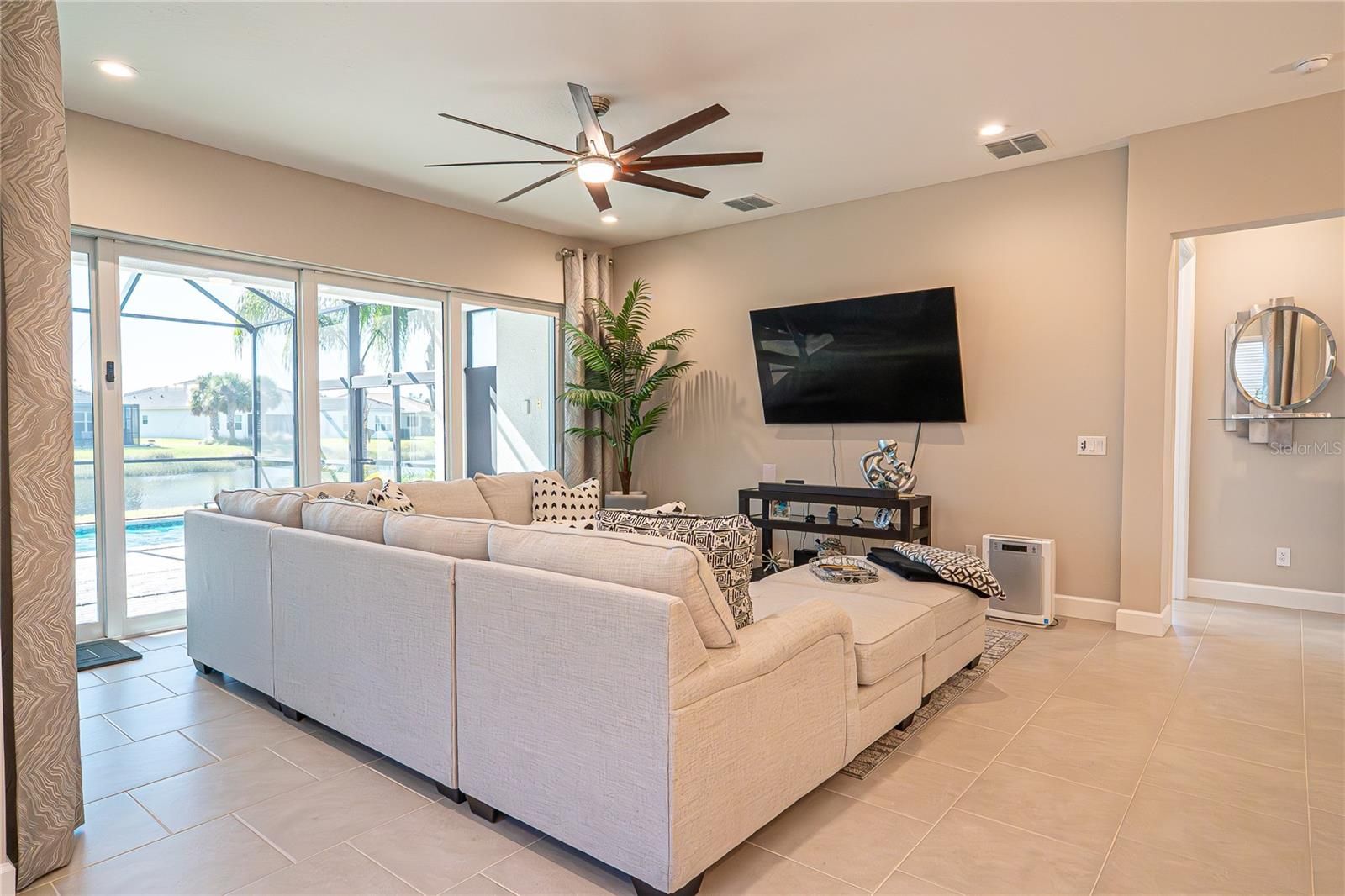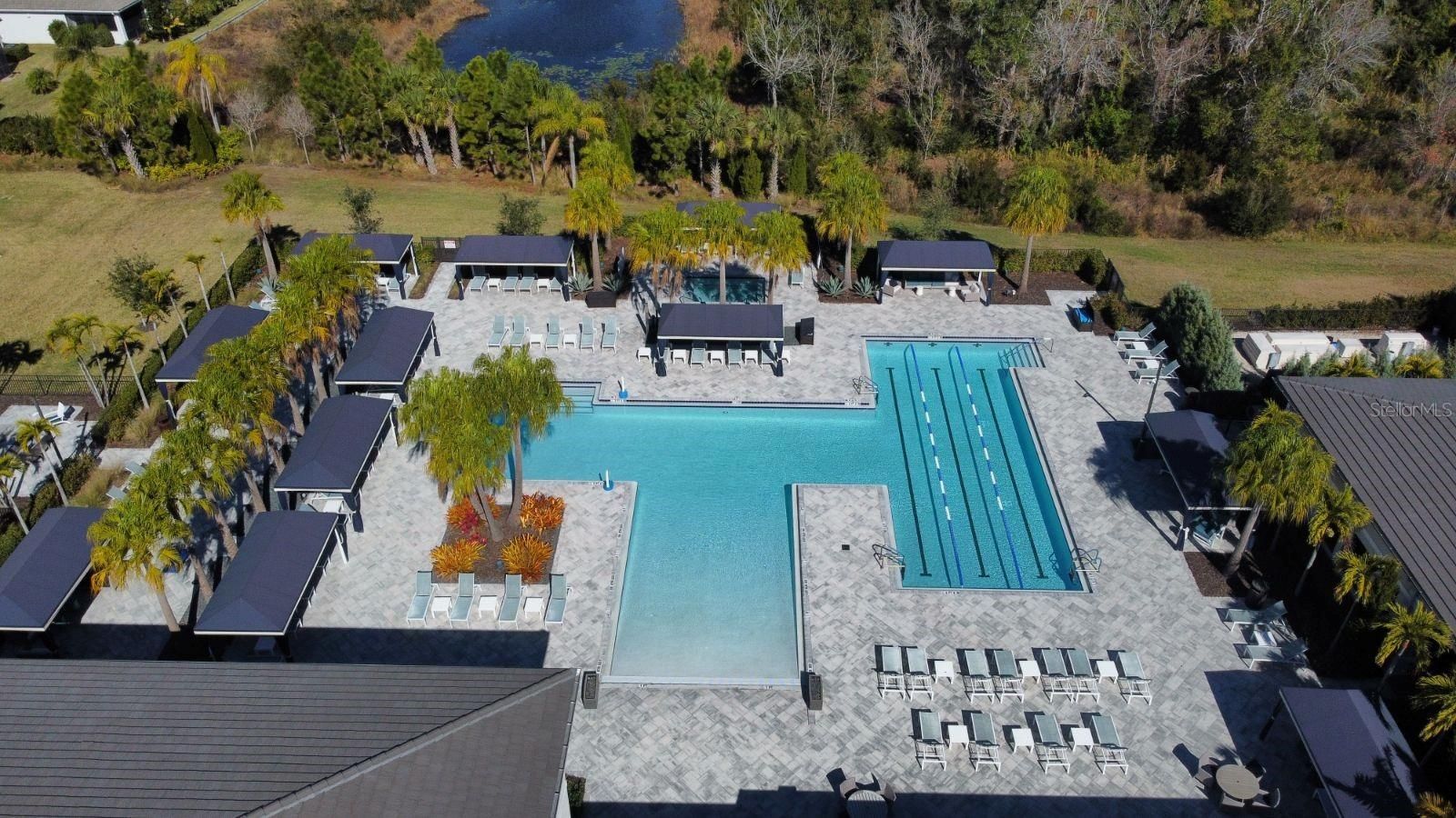 Welcome to resort-style living at its finest in this secure, gated 55+ community where every day feels like a getaway. Enjoy a vibrant social scene with a sparkling pool, on-site café and bar, and a theater featuring Broadway-style shows. Stay active with a state-of-the-art fitness center, tennis, pickleball, and bocce ball courts, or explore your passions in the crafts, card, and billiards rooms. Unwind at the dog parks or gather with friends around the fire pits, this community is thoughtfully designed for comfort, connection, and an active lifestyle. Step inside this beautifully upgraded home through the impact-resistant glass front door and into a stunning Great Room featuring elegant coffered ceilings. Expansive sliding doors open to an L-shaped lanai and extended screened enclosure with a custom pool, all overlooking tranquil lake views—perfect for indoor-outdoor living. The gourmet kitchen is a chef’s dream, showcasing stainless steel appliances, quartz countertops, soft-close cabinetry, and generous prep space. Enjoy flexible dining options, from formal dinners in the dining room to relaxed mornings in the casual breakfast area. The private primary suite is a peaceful retreat with breathtaking views, custom closets, and a spa-inspired bathroom with a frameless glass shower. A versatile den/third bedroom offers space for guests, a home office, or hobbies. Additional features include LED lighting throughout, advanced climate and humidity control, a Carrier variable-speed air handler, tankless gas water heater, whole-house water softener, UV-light air filtration, epoxy-coated garage flooring, and LG laundry and kitchen appliances. Outdoors, relax in your custom saltwater pool with sun shelf, automation, privacy blinds, and a beautifully designed paver deck—all within a screened enclosure for year-round enjoyment. This is more than a home, it’s a lifestyle. Come experience it for yourself and feel the stress melt away. Once you do, you’ll know… this is the one.