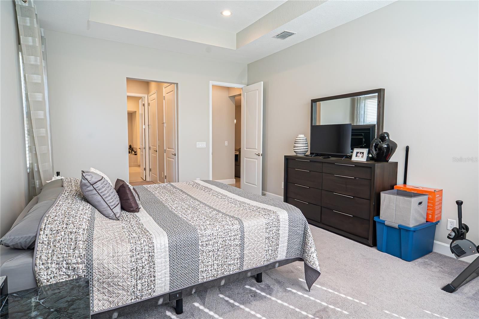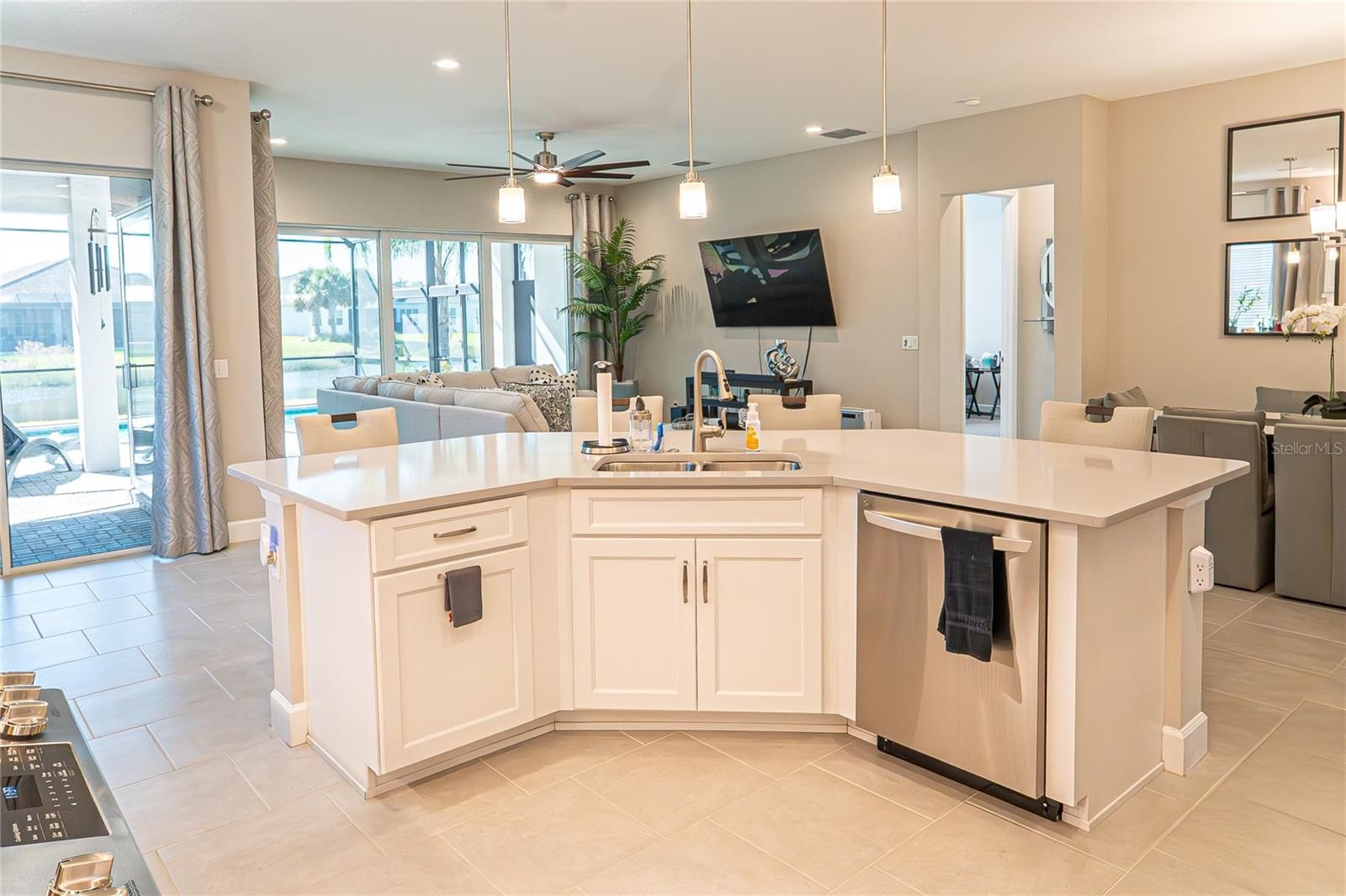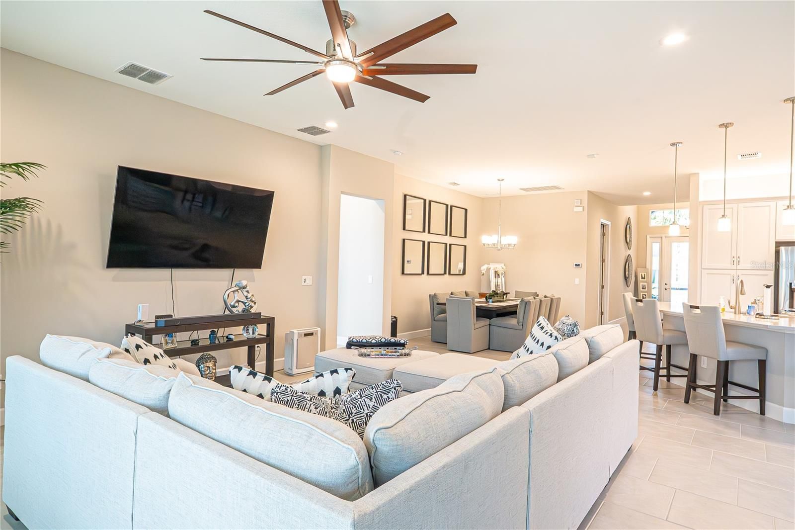Welcome to resort-style living at its finest in this secure, gated 55+ community where every day feels like a getaway. Enjoy a vibrant social scene with a sparkling pool, on-site café and bar, and a theater featuring Broadway-style shows. Stay active with a state-of-the-art fitness center, tennis, pickleball, and bocce ball courts, or explore your passions in the crafts, card, and billiards rooms. Unwind at the dog parks or gather with friends around the fire pits, this community is thoughtfully designed for comfort, connection, and an active lifestyle. Step inside this beautifully upgraded home through the impact-resistant glass front door and into a stunning Great Room featuring elegant coffered ceilings. Expansive sliding doors open to an L-shaped lanai and extended screened enclosure with a custom pool, all overlooking tranquil lake views—perfect for indoor-outdoor living. The gourmet kitchen is a chef’s dream, showcasing stainless steel appliances, quartz countertops, soft-close cabinetry, and generous prep space. Enjoy flexible dining options, from formal dinners in the dining room to relaxed mornings in the casual breakfast area. The private primary suite is a peaceful retreat with breathtaking views, custom closets, and a spa-inspired bathroom with a frameless glass shower. A versatile den/third bedroom offers space for guests, a home office, or hobbies. Additional features include LED lighting throughout, advanced climate and humidity control, a Carrier variable-speed air handler, tankless gas water heater, whole-house water softener, UV-light air filtration, epoxy-coated garage flooring, and LG laundry and kitchen appliances. Outdoors, relax in your custom saltwater pool with sun shelf, automation, privacy blinds, and a beautifully designed paver deck—all within a screened enclosure for year-round enjoyment. This is more than a home, it’s a lifestyle. Come experience it for yourself and feel the stress melt away. Once you do, you’ll know… this is the one.