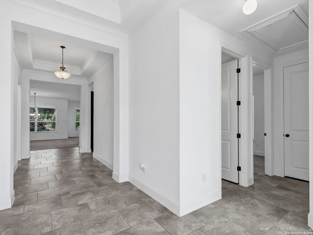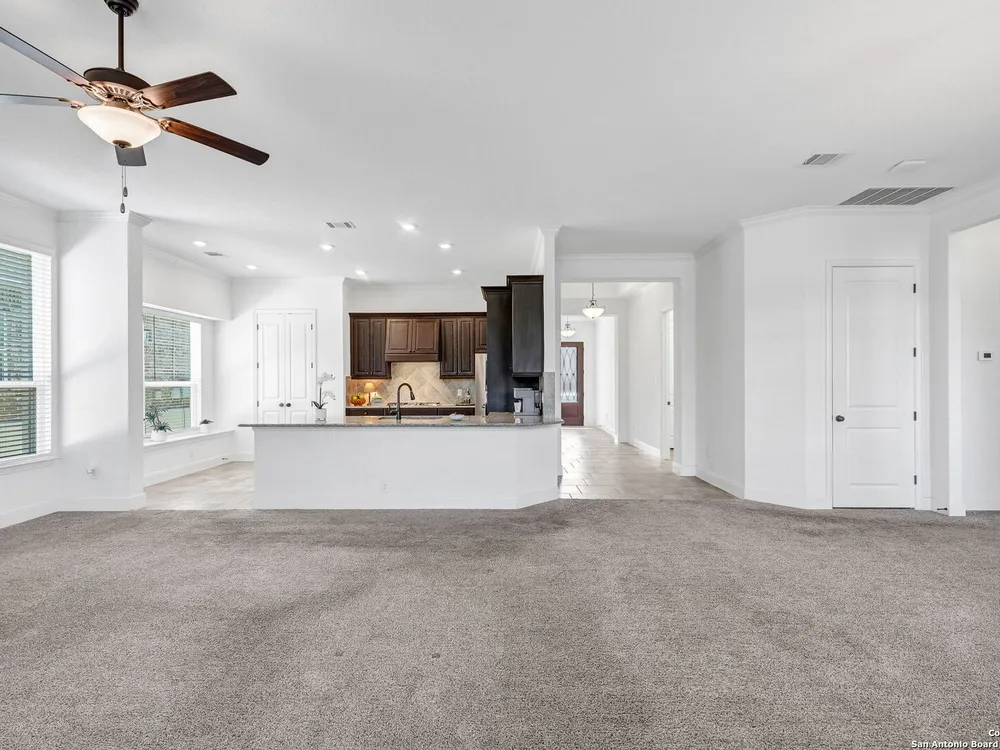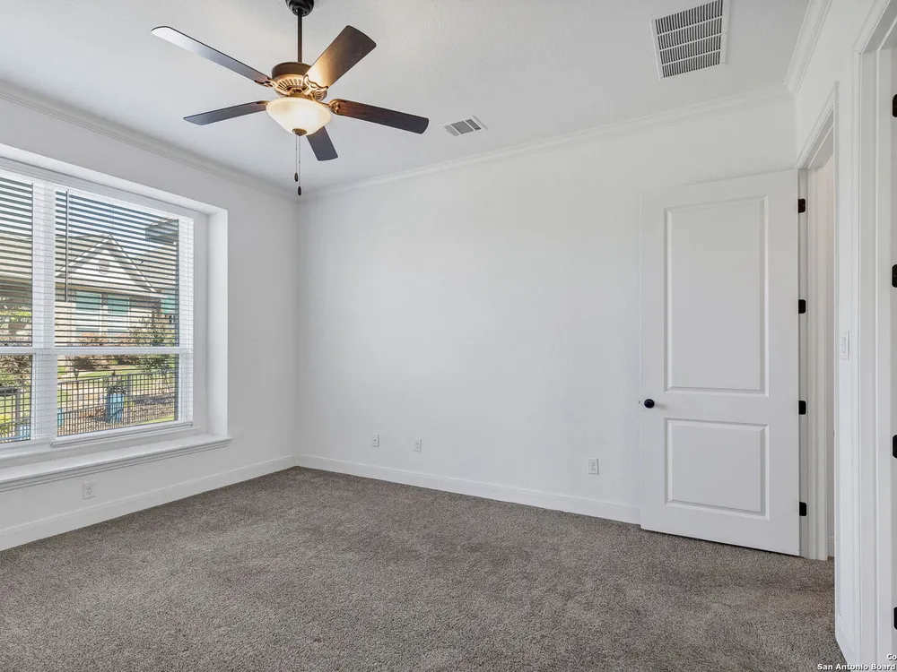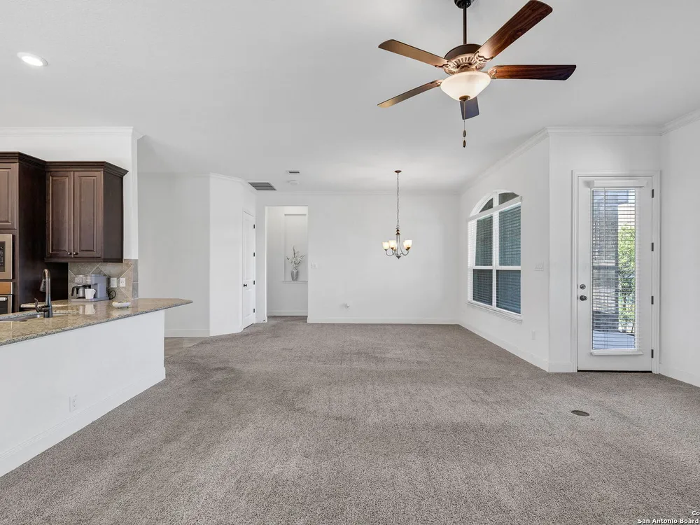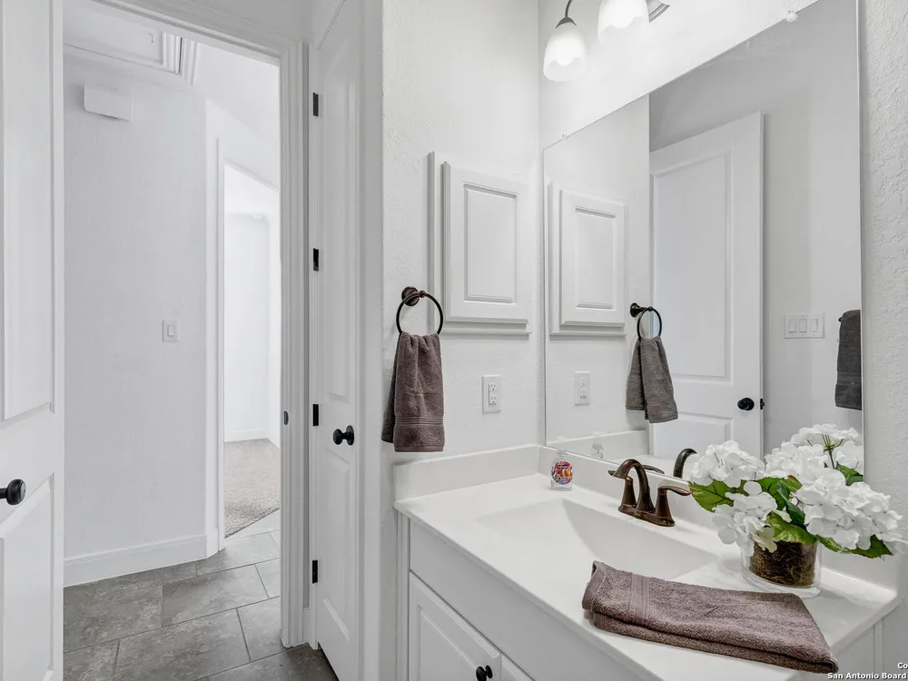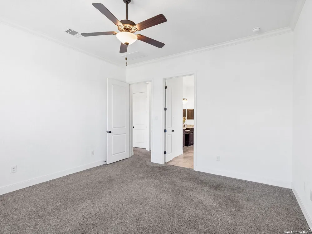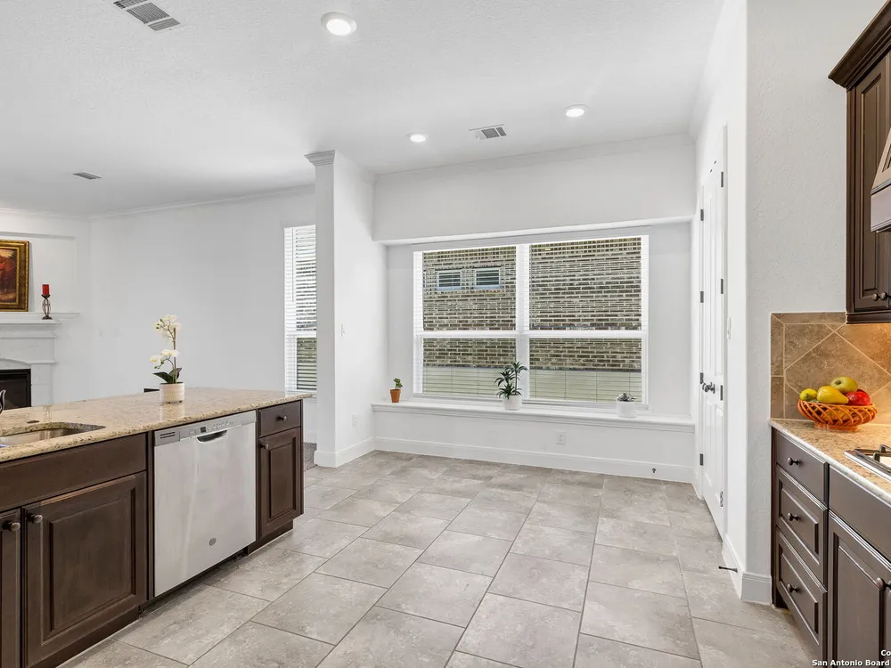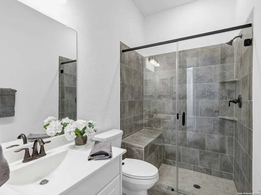 Here's your chance to own a truly elegant home at an affordable price. This 3 bedroom gem built by Village Builders has all the bells and whistles. Chefs kitchen features custom cabinetry, stainless appliances, gas cook top, and spacious pantry. Granite countertops throughout, 10 foot ceilings, generous crown molding, oversized laundry and open floor plan. The primary suite overlooks the back yard and features luxurious dual vanities, garden tub and separate shower, and did I mention the huge closet? The yard is spacious and landscaping is in great condition. The community resort features ballroom, meeting rooms, library, state of the art gym, indoor pool and spa, two outdoor pools and spa, pickle ball and much more. It's time to pack your bags and get ready to enjoy the good life at Del Webb San Antonio Hill Country Retreat!