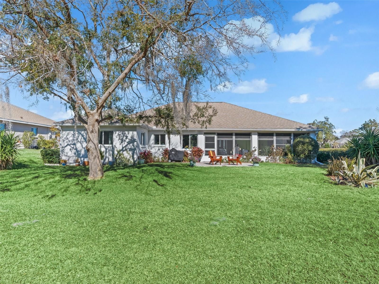 A backyard view like this is rare—and unforgettable. This extensively remodeled 3-bedroom, 2-bath home offers exceptional privacy with sweeping golf course and pond views, surrounded by wildlife and open green space—no rear neighbors and pure serenity.The expansive lanai is a true standout, designed for year-round enjoyment. Fully screened for breezy days, it also features vinyl windows for cooler weather and custom shades for sun control and added privacy, making it the perfect place to relax, entertain, or take in peaceful sunsets over the water.Inside, nearly everything is brand new, including flooring, baseboards, interior paint, light fixtures, and ceiling fans. The remodeled kitchen and bathrooms showcase new cabinetry, quartz countertops, and a stylish backsplash. The primary suite feels like a spa retreat with a custom shower featuring a rain tower and glass doors, updated toilets, and modern finishes. A striking stone accent wall with a built-in electric fireplace adds warmth and character to the main living area.Major updates include a roof that's only 8 years old, HVAC about 6 years old, and a brand-new water heater for peace of mind.Located on Ocala’s desirable northwest side, this home offers resort-style living just 5 minutes from the World Equestrian Center, with convenient access to shopping, dining, medical facilities, major roadways, downtown Ocala, parks, and recreation.Ideal for buyers seeking low-maintenance living, community amenities, and a truly special view, this home stands out in every way.