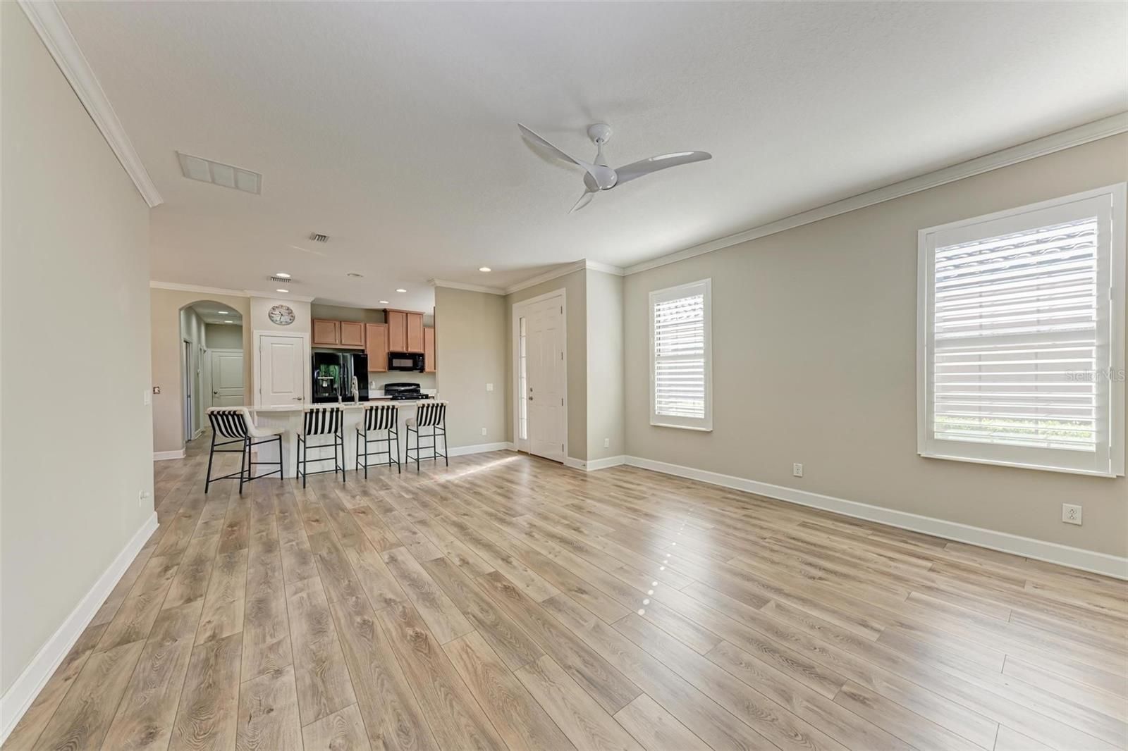 MOTIVATED SELLER!! PRIVATE GOLF (PAY TO PLAY)!! Amazing opportunity in the heart of Lakewood Ranch at Esplanade Golf & Country Club. This Taylor Morrison’s Roma floor plan is spacious and convenient. It offers 2 bed/2 baths, plus den/study in a detached villa floor plan. Upon arrival, very visible is the maintenance-included lush landscaping that is accented with custom curbing to complement the paver driveway and side entryway. Step inside this lovely home to find meaningful upgrades beyond the builder’s standard options. There is no carpet throughout the home. Luxury vinyl plank extends to all the living areas except the master bedroom and study which share a laminate surface. The kitchen peninsular has been remodeled and lowered to counter height seating instead of bar height for those informal meals. It features a quartz surface with a single bowl Blanco granite composite sink. The kitchen is on an exterior wall of the home with a perfectly placed center window that allows lots of natural light while preparing meals. There is ample storage in the kitchen with extra upper and lower cabinets. The primary bedroom is tucked away in the rear of the home which has a custom walk-in closet and a private bathroom with pocket-door access. The primary bathroom dual-sink vanities are comfort-height with extra storage drawers. The stepdown walk-in shower has been outfitted with frameless glass shower doors to give it a clean and sleek look. The other bedroom sits to the front of the home with a custom finished walk-in closet. There is pocket-door access to the second bedroom that offer En suite use of the updated second bathroom. For quiet time the den/study has pocket door access & a high picture window to create a tranquil reading or meditation room. There is end-to-end built-in shelving to store your favorite novels. The finished laundry room has extra cabinet storage to meet your needs! Other interior updates include crown molding in the main living areas, plantation shutters, & ceiling fans. Updates that extend beyond the interior of the home include a whole home HALO WATER FILTRATION & conditioning system, rain gutters for proper drainage, extended screened paver lanai with retractable awning to provide additional shade outdoors, and Storm Smart slide screens that allow hurricane protection that is easy to install and store—no more hassles with aluminum shutters. Furnishings are optional. Included is a transferable Home Warranty. Esplanade offers something for everyone looking for luxury resort living! With an amenity rich resort lifestyle there is a monthly social and activity calendar, on-site lifestyle director, social events, & social clubs. Enjoy a round of golf on the 18-hole championship golf course, or enjoy other activities such as tennis, pickleball, & bocce ball. There are 2 clubhouse facilities equipped with fitness center, exercise classes, spa/salon, firepit areas, dog parks, and kayak launch. Grab a casual bite at the pool side Bahama Bar or visit the Barrel House for dinner at the Culinary Center which has wine tastings, catering services & special events. Come discover Esplanade and make this picturesque amenity-rich gated golf community your perfect seasonal retreat or year-round home. Close to I75, UTC Mall shopping, medical facilities, downtown Lakewood Ranch, Bradenton, Sarasota, & fantastic Gulf beaches of Anna Maria Island. Schedule your showing today!!