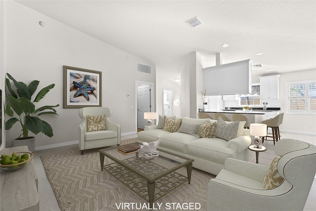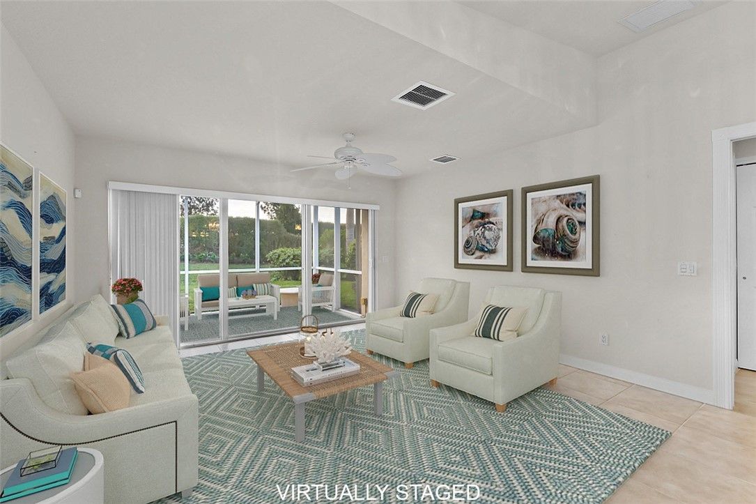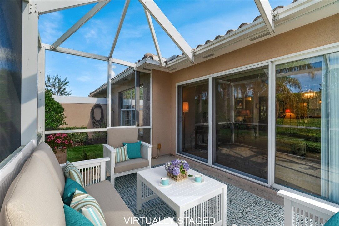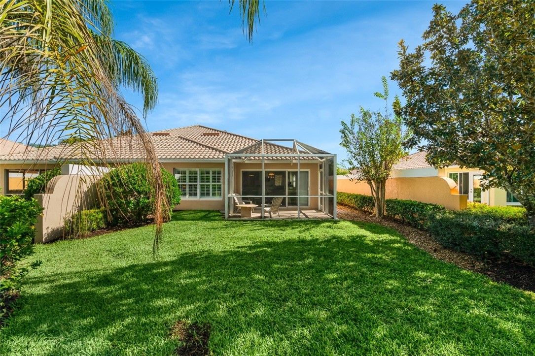 Carefree coastal living awaits in this beautifully maintained Divosta Capri 2bd/2ba villa! All impact windows make this a true lock-and-go retreat. Inside, enjoy a bright kitchen w/ granite countertops, plantation shutters, 2019 HVAC & recently cleaned ducts, & a newer HWH. The primary suite features a walk-in shower, while split bedrooms w/ doors offer comfort for guests. Enjoy morning coffee on your screened lanai surrounded by lush, tropical landscape. Amenities include clubhouse, heated pool, tennis/pickleball, & fitness center—just minutes from shopping, dining, and the beach!