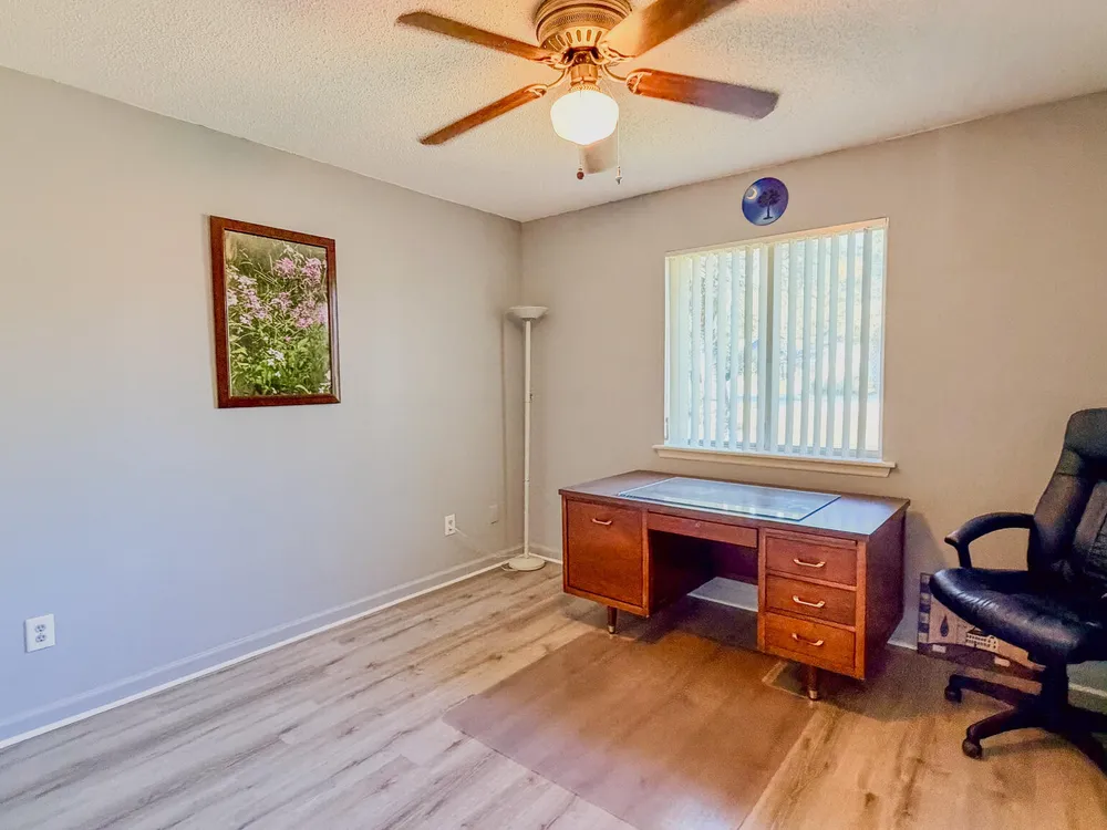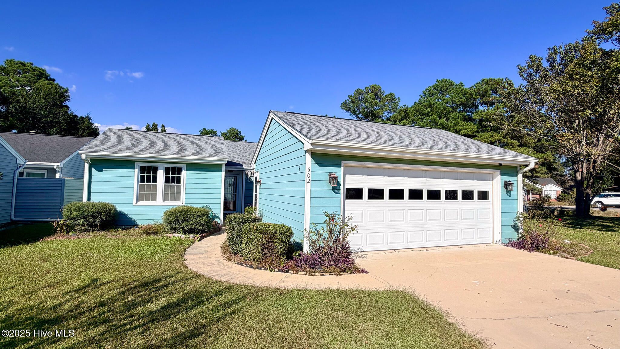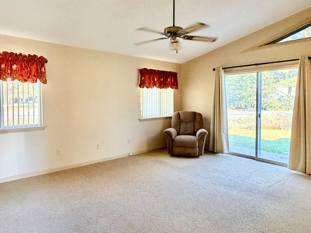 This home thinks your couch will look great right here!! This 2 bedroom 2 bathroom ranch has a 2 car detached garage and front patio nestled in between. Enjoy a very well laid out plan with bedrooms in front on back on one side of the home and living spaces and kitchen on the other. the main focal part of the home is the expansive living room along the back of the house with lots of windows and access to the side patio or dining room. A formal dining room sits just off the kitchen with raised upper cabinets so you will still feel part of the conversation. Water heater was replaced in 2021 and the roof was replaced in 2023. Both bathrooms are equipped with solar tubes to allow natural sunlight into the room and save on electric during the day. All windows are equipped to install hurricane netting and the living room has one window installed for your reference. Laundry is a breeze with full size machines and shelving just off the front bedroom. Each bedroom has plenty of closet space with double doors or a walk in. The road into the neighbood is being re-paved at this time. Final measurements and HOA information are the responsibility of the buyer and not guaranteed. Schedule your showing today.