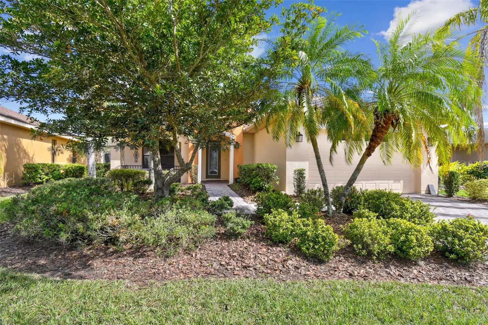 Welcome to this stunning Bonita Springs model in the desirable quiet Vizcaya subdivision of Solivita, offering picturesque water views that will take your breath away. Step through the elegant leaded glass front door into a spacious living and dining area adorned with beautiful tile flooring. The moment you enter, you'll be captivated by the AMAZING VIEWS of the serene water. This home has been thoughtfully upgraded, featuring ceramic tile throughout the main living areas, with cozy carpet in the bedrooms and den. Additional upgrades include 8' doors, rounded drywall corners, and 5 1/4" baseboards throughout, adding a touch of sophistication. The double pane windows and sliders enhance the home's energy efficiency and provide a quiet, peaceful retreat. The den, with its charming French doors, offers the flexibility to be used as a guest room or home office.The chef’s kitchen boasts Corian countertops, 42" upper cabinets with crown molding, pull-out drawers, and 2 Lazy Susans for optimal storage. Recessed lighting highlights the beautiful design, while the stainless steel appliances complete this gourmet space. The spacious owner's suite offers a large walk-in closet, and the adjoining bathroom is a perfect retreat, featuring a generous shower, a single vanity, and an additional makeup area. A door from the bathroom leads directly to the lanai for easy outdoor access. Enjoy the covered and screened lanai, where you can relax and soak in the direct views of the tranquil pond. Additionally, the two-car garage offers ample storage space, providing plenty of room for all your needs. This home combines comfort, style, and luxury, making it the perfect place to call your own. Don't miss the opportunity to see it in person—schedule your tour today! This property offers an unparalleled lifestyle. Solivita is a gated and guard-monitored 55+ master-planned community situated on 4,300 acres and boasts 150,000 square feet of resort-style amenities such as golf, 2 - 18 hole Golf courses, 2 state-of-the-art fitness centers, and various dining options. Residents can also enjoy 14 heated pools, amenity complexes, neighborhood centers, pickleball, tennis, bocce, and shuffleboard courts, along with miles of walking and bike paths. Over 200 Clubs, with Art, Education and cultural classes for you to enjoy! Join the "Solivita Family" and make this home your home today! Just outside of Solivita is the new Poinciana Lakes shopping center with Outback, First Watch, Sprouts Market, Ross, Burlington, Bojangles, Sage Dental, TD bank, 5 below, Petco and many more.