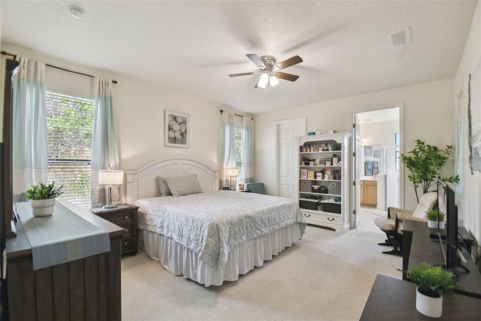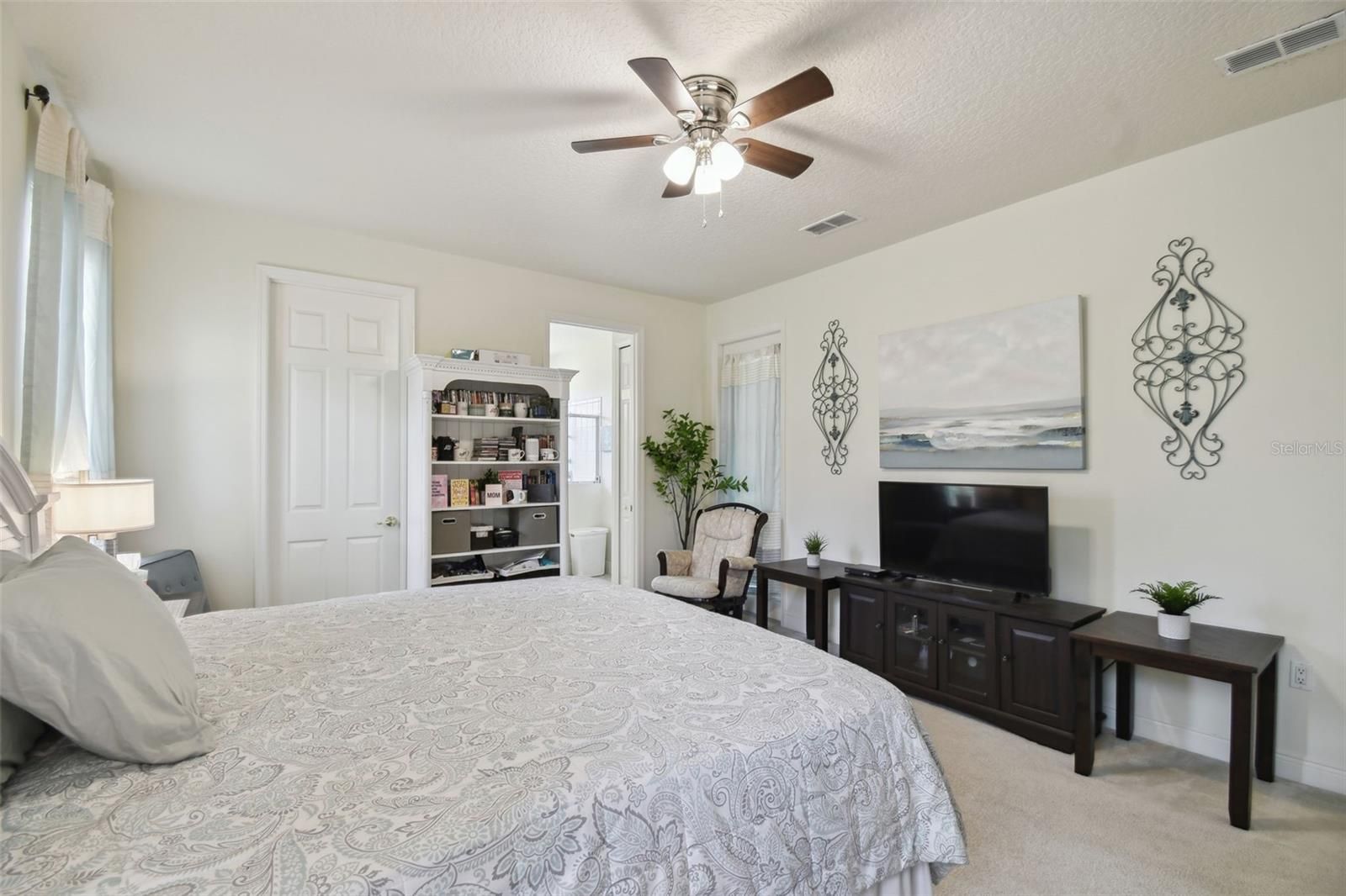 - Ceiling Fan(s), Eat-in Kitchen, Main Level Primary, Thermostat, Walk-In Closet(s)