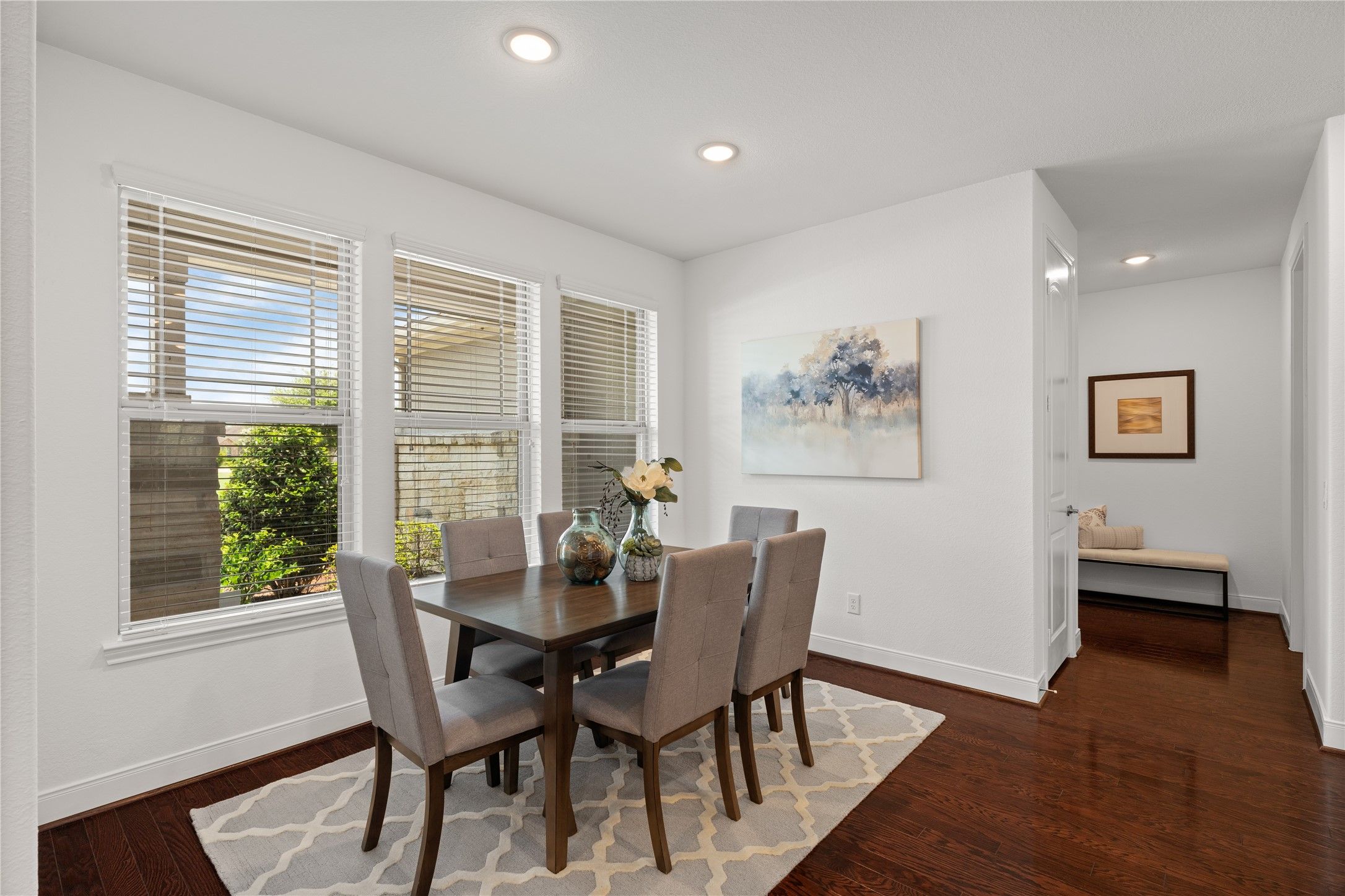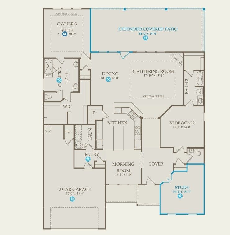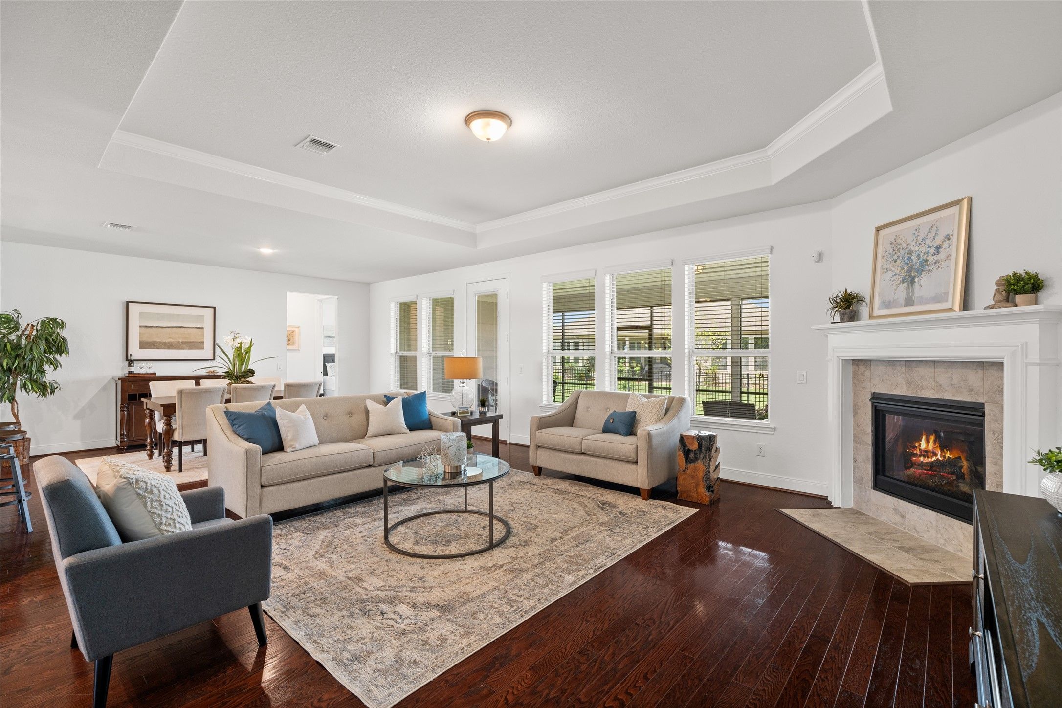 Tangerly Oak, offering 2BR/2.5BA + study, perfectly placed on oversized corner lot in 55+ Del Webb. Exterior showcases striking blend of Tx limestone & stucco, delivering clean, transitional style that sets home apart. Step inside & feel warmth of wd flooring that flows through main living, plush carpet in BR's & cozy corner fireplace — ideal for quiet evenings. Bright, white kit is truly heart of home, featuring upgraded granite counters, SS appls, gas cooktop, walk-in pantry, & oversized island. Breakfast nook offers inviting dining space w/natural light. Freshly painted in soft, neutral tone enhances home's airy, welcoming feel. No tubs — primary BA w/shower & built-in bench. Versatile study offers perfect workspace w/tranquil views of park just across the street. Outdoors, sprawling 38 x 14 screened-in patio invites yr-round relaxation, opening to fenced backyard w/room to garden or simply unwind. Tray ceilings in both Gathering Rm & Primary Suite add subtle architectural elegance.