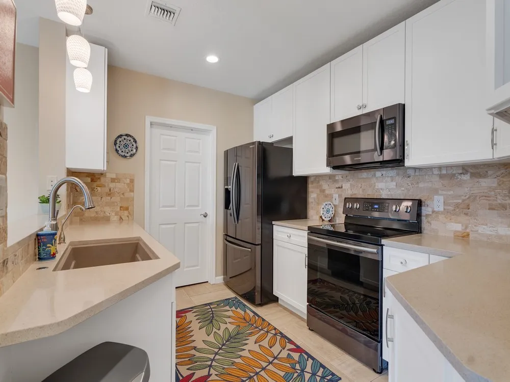 Pack your toothbrush and move right in! This spacious 3/2 unit is turnkey, in mint condition with a coveted porch and stunning pond views! Tastefully updated and decorated in neutral tones, it has an elevated beachy feel. The split floor plan affords privacy when you have guests. You'll love your modern kitchen with stainless steel appliances and the flowing floor plan. Located 10 minutes from the best beaches and minutes to Vero's best shopping.