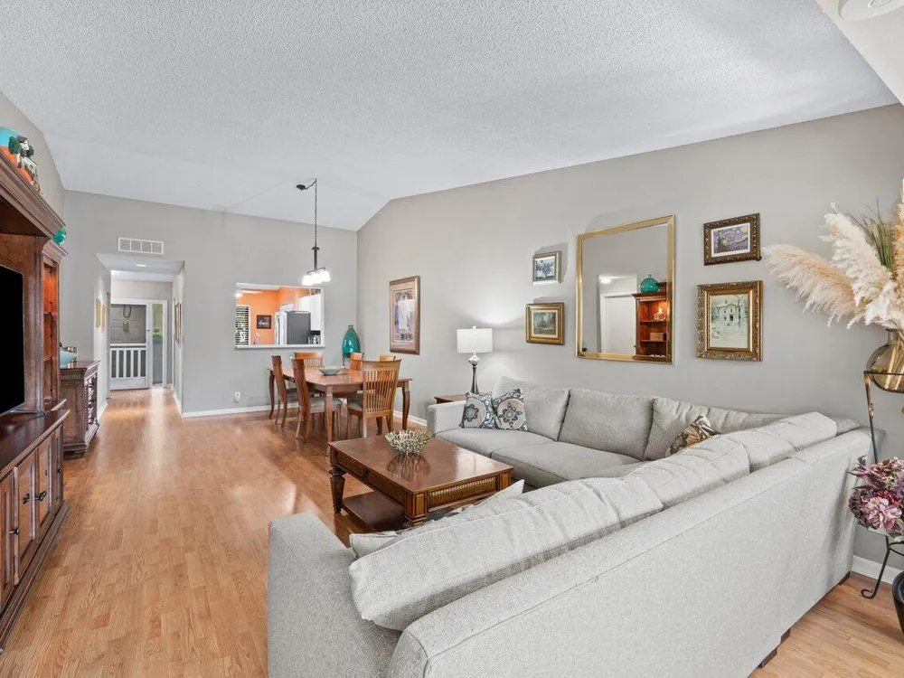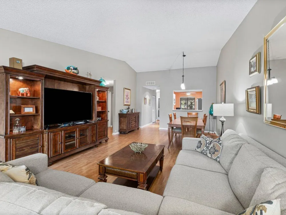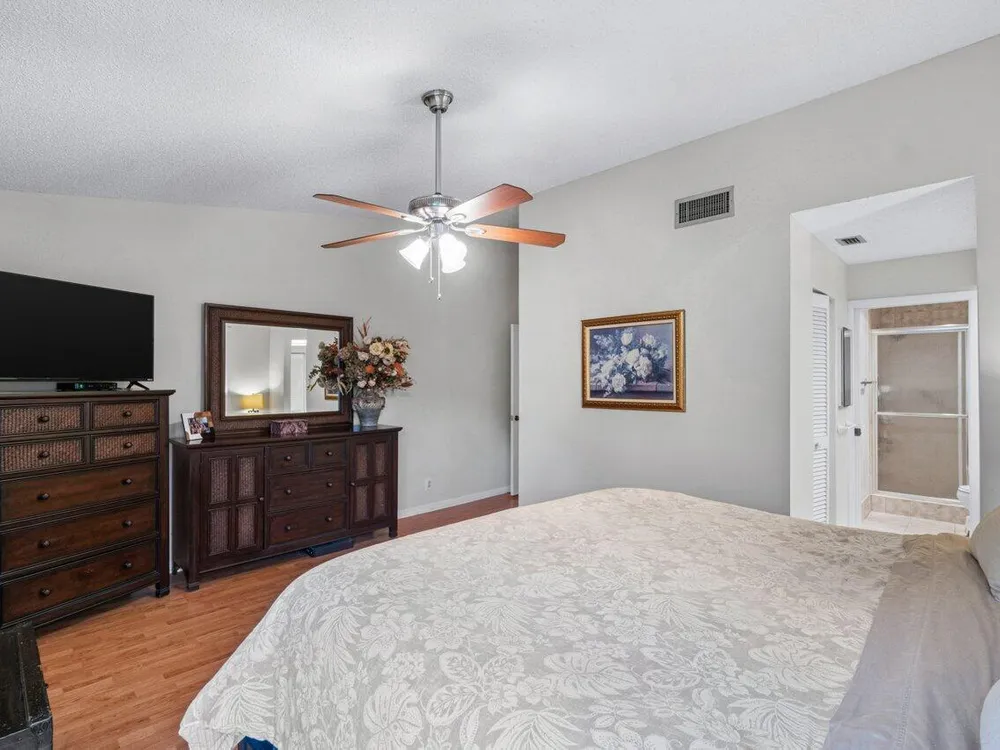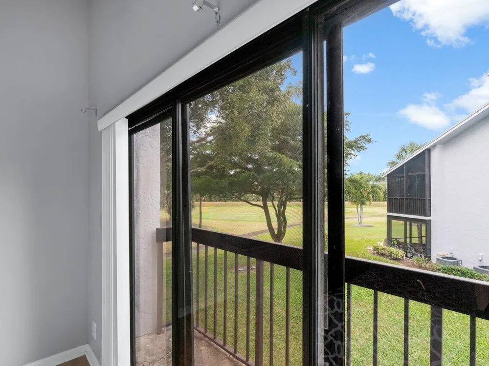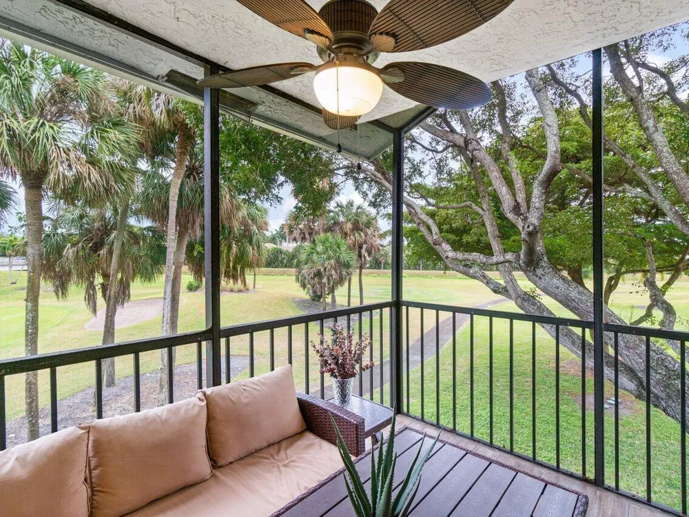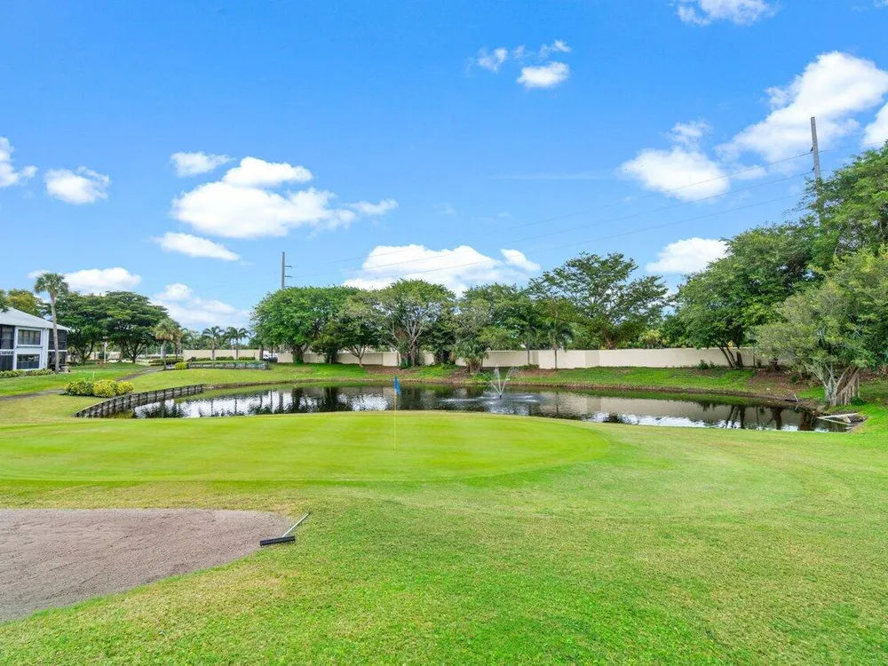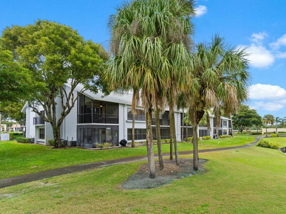 Welcome to Boca Delray Country Club, an active gated community no initiation fee, featuring an executive Par-60, 18-hole golf course set on 160 acres. This inviting three-bedroom end unit is filled with natural light and showcases vaulted ceilings, a versatile triple-split floor plan, and abundant storage throughout. The spacious primary suite offers a walk-in closet, dual sinks, and a step-in shower. The kitchen is equipped with newer appliances, a double-door pantry, an eat-in area, and generous counter space.Designed for entertaining, the open living area includes a bonus den, while two private balconies extend your living space--one screened-in with serene golf and water views, surrounded by lush greenery.