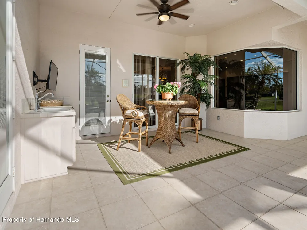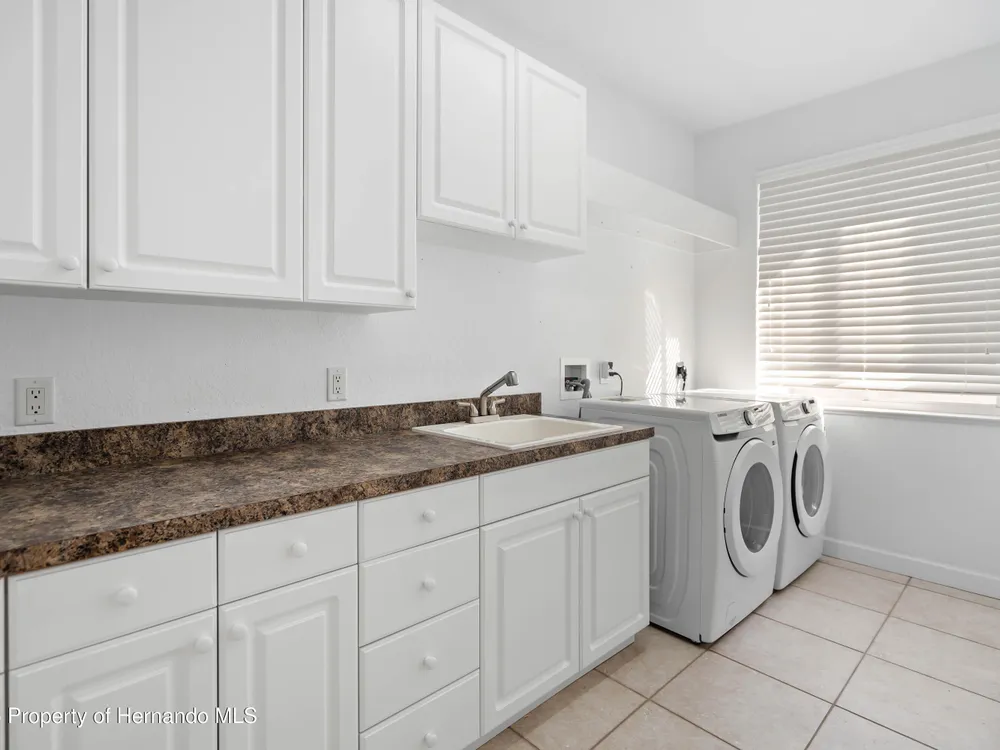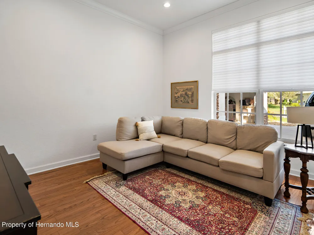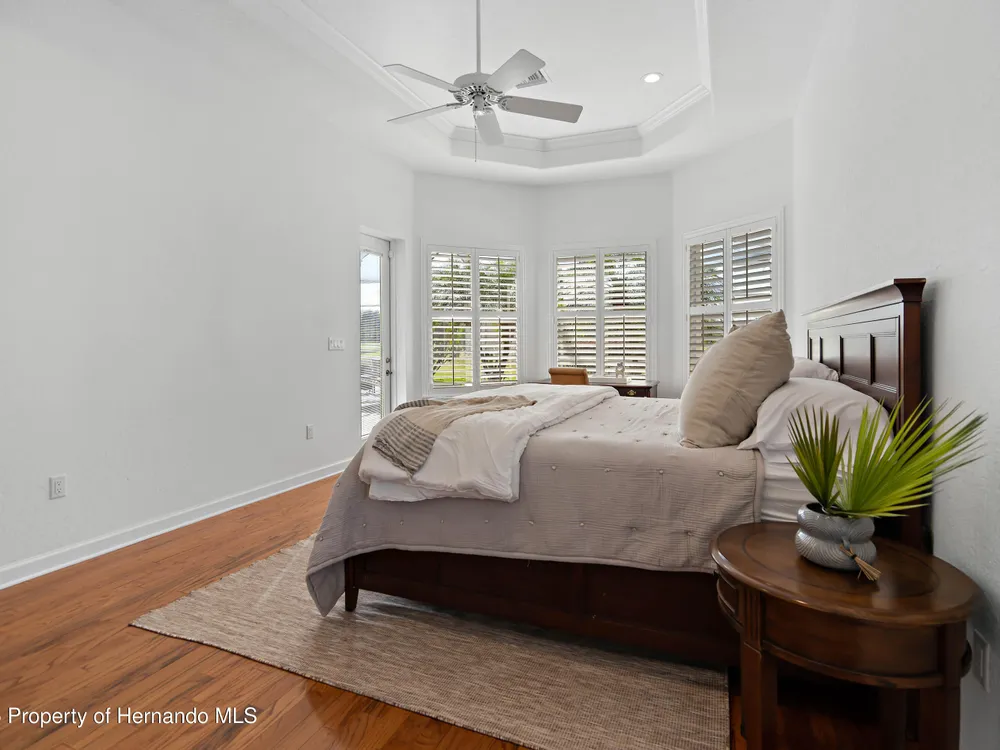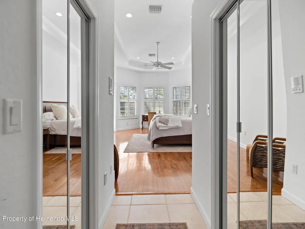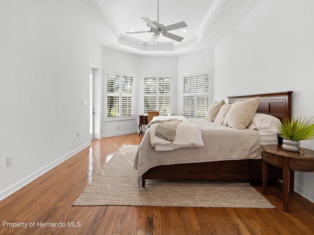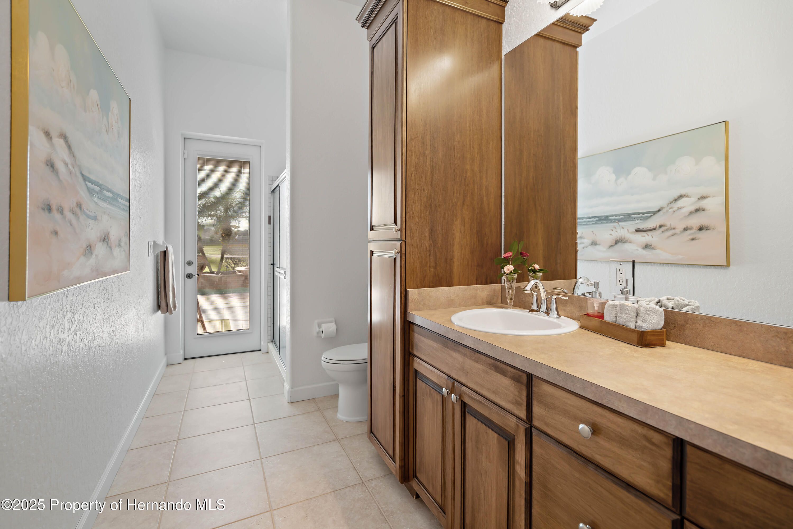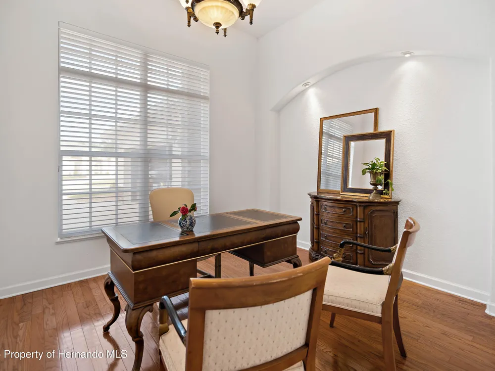Tucked within the prestigious guard-gated Silverthorn Golf & Country Club community, this exquisite 4-bedroom, 4-bathroom estate blends timeless elegance, thoughtful craftsmanship, and serene golf course living. Meticulously maintained and tastefully upgraded, the home showcases soaring 12-foot ceilings, rich hardwood flooring, and over 70 custom cabinets and drawers thoughtfully placed throughout for optimal storage. The striking exterior features a wide pavered driveway, manicured landscaping, a Mediterranean-style tile roof, and eye-catching stone accents. Twin oversized 2-car garages with newer epoxy-coated floors are discreetly positioned on either side, offering ample room for vehicles, hobbies, or storage. A grand covered entry opens into a welcoming foyer flanked by a formal dining room on one side and a sophisticated office or den on the other, all grounded by elegant hardwood flooring. The formal living room centers around a stone gas fireplace and opens through sliding glass doors to a breathtaking lanai overlooking the 18th hole. Just beyond, the sunlit breakfast nook is surrounded by windows that maximize natural light and showcase the tranquil view. The heart of the home—a spectacular kitchen—is both functional and beautifully appointed with granite countertops and backsplash, a large center island with built-in wine racks and cabinetry, double convection wall ovens, a cooktop, a breakfast bar with double sink, and an exceptional volume of custom wood cabinetry beneath soaring ceilings. The kitchen flows seamlessly into a spacious family room featuring a dramatic triple trey ceiling, detailed crown molding, and another triple sliding door bringing the outdoors in. The luxurious primary suite serves as a peaceful retreat with tray ceilings, crown molding, private lanai access, a full wall of windows offering sweeping golf course views, and dual walk-in closets. The spa-like ensuite bathroom offers a jacuzzi garden tub with views of a private courtyard (with water and electric hookups), a large walk-in shower, dual vanities, a seated vanity space, and a private water closet. A generously sized second bedroom (20x13) is ideal as an in-law or guest suite and features private access to a serene patio with golf course views. The screened lanai is a showstopper, boasting a heated pool and spa with an in-floor cleaning system, brick paver decking, and a covered outdoor kitchen area with sink and refrigerator. Additional upgrades include hurricane-rated windows, a central vacuum system, a security system, commercial-grade water softener, 2019 Rheem dual-zone HVAC systems with NP2 filters and UV light, a newer Rheem Prestige water heater, exterior paint (2017), and an irrigation well for landscape maintenance. Residents of Silverthorn enjoy resort-style amenities including an Olympic-sized pool, tennis, pickleball, and basketball courts, a fitness center, library, activity rooms, and a stately clubhouse with a restaurant, bar, ballrooms, and golf pro shop. Just 2.5 miles from the Suncoast Parkway, this location offers a direct and convenient commute to Tampa. Nearby attractions include Weeki Wachee Springs State Park (9.5 miles), Hernando Beach (14 miles), and the Nature Coast Botanical Gardens (6 miles), making this home a rare blend of luxury, lifestyle, and location. Includes a 10K allowance for home decor like new carpet and interior painting with a full price offer.