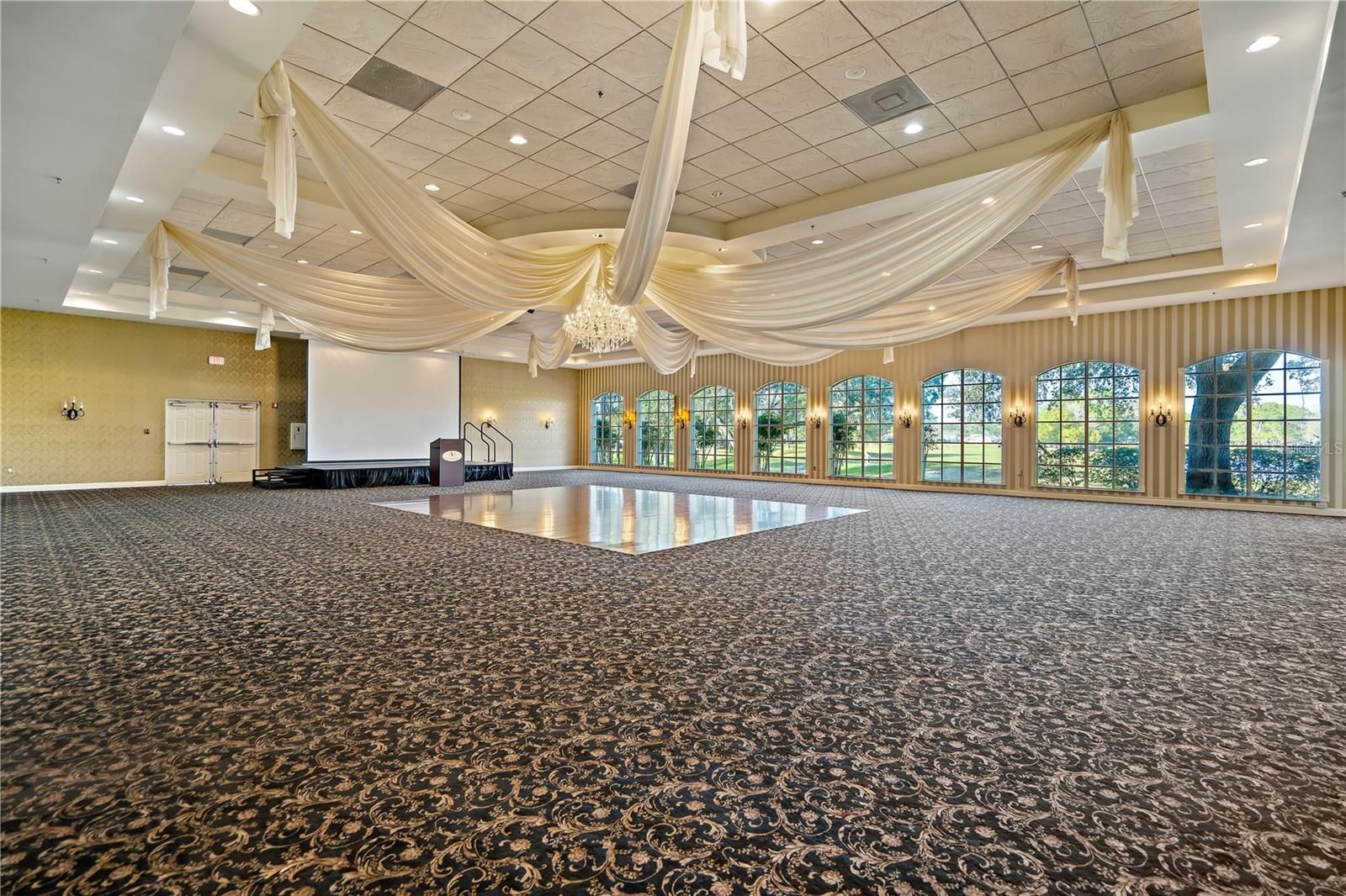 - Ceiling Fan(s), Central Vacuum, Crown Molding, Eat-in Kitchen, High Ceilings, Living/Dining Room, Main Level Primary, Solid-Wood Cabinets, Split Bedrooms, Stone Counters, Thermostat, Tray Ceiling(s), Walk-In Closet(s)