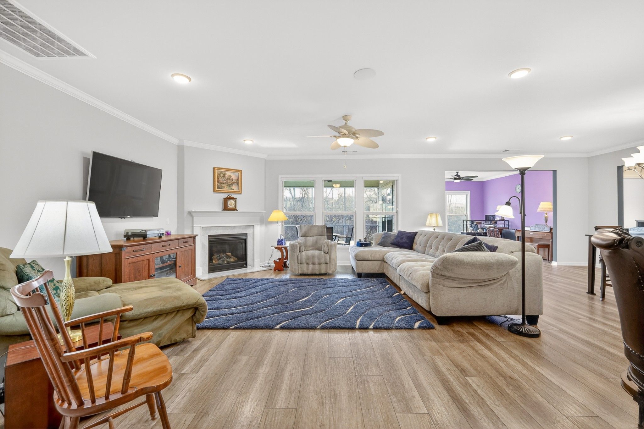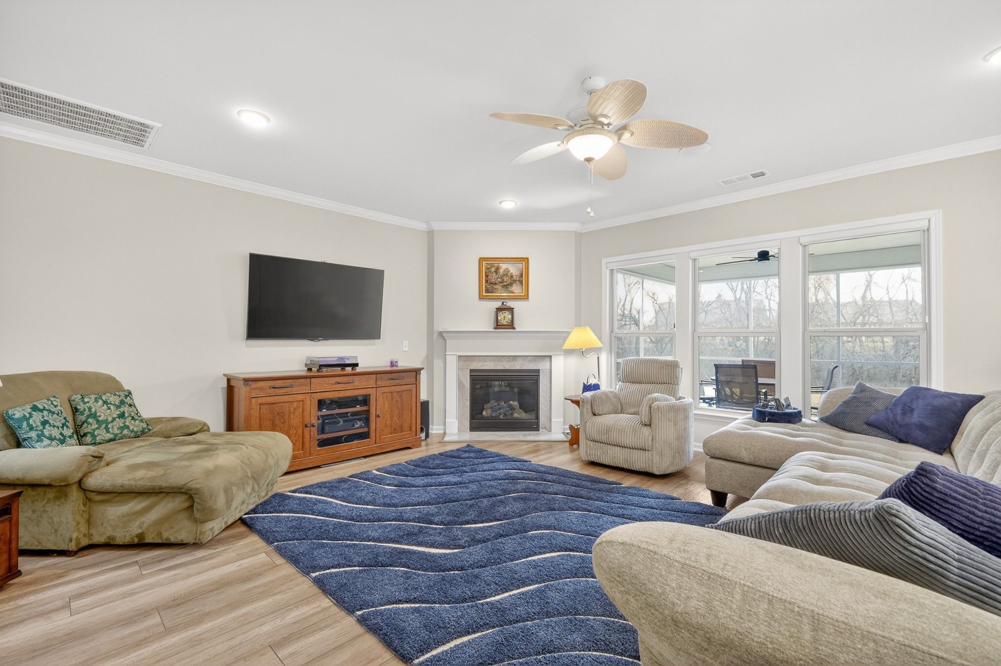 An exceptional Tangerly Oak plan set on a premium wooded homesite in Del Webb Southern Springs. This impeccably upgraded home offers rare privacy, refined finishes, and effortless elegance throughout. Featuring 3 bedrooms, 3 full baths, a light-filled sunroom, and a screened lanai overlooking a tranquil, wooded backdrop. The chef’s kitchen is a true showpiece, appointed with quartz countertops, premium KitchenAid built-in stainless appliances (refrigerator included), external vent hood, farmhouse sink, and designer finishes that reflect uncompromising quality. The open-concept living space is enhanced by no carpet throughout, a gas fireplace, crown molding, custom owner’s suite closet and pantry systems, and curated architectural details that elevate everyday living. Additional luxury appointments include a 4' extended garage with dedicated golf cart parking/workshop space and walk-up attic storage, tankless water heater, whole-home water softener, patio gas line, and full lawn irrigation. Located within Southern Springs, Del Webb’s premier 55+ active adult community, residents enjoy an extraordinary resort lifestyle featuring indoor and outdoor pools and hot tubs, fitness and yoga studios, ballroom, pickleball and tennis courts, event lawn, dog park, and an unmatched calendar of clubs and social experiences. This is more than a home — it is a lifestyle defined by comfort, elegance, and community.