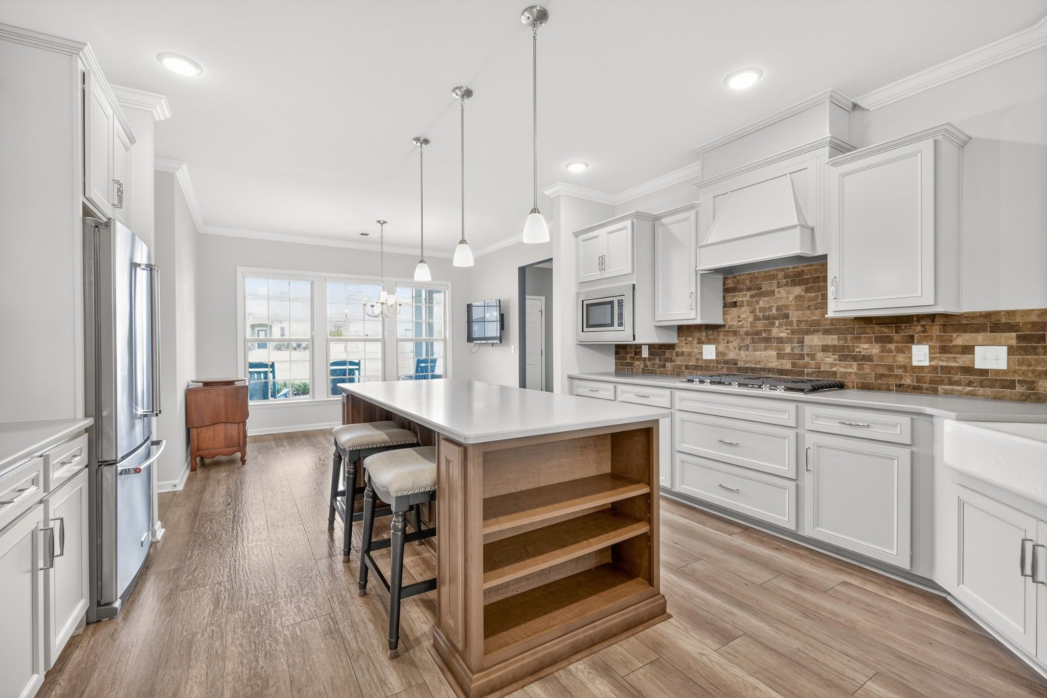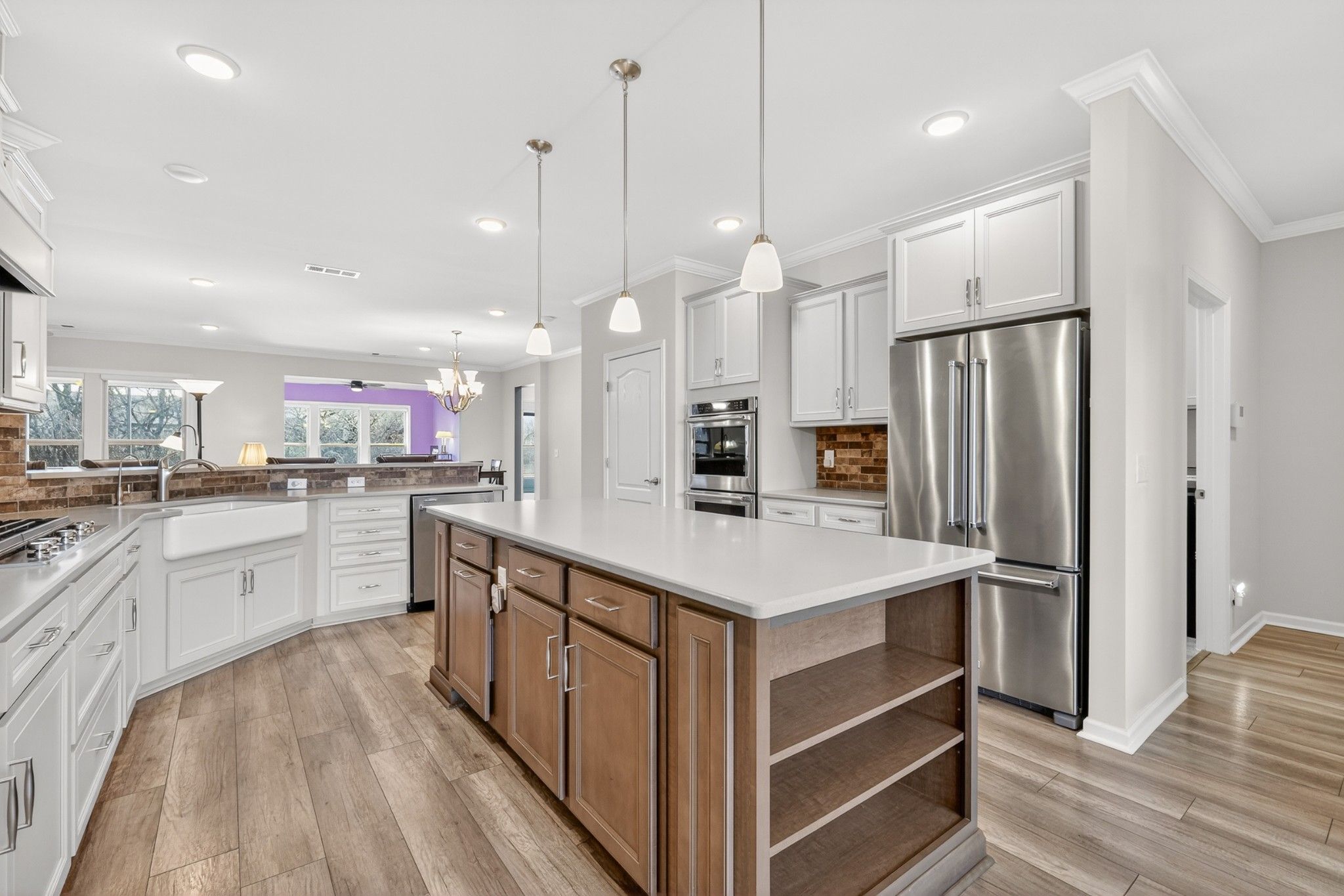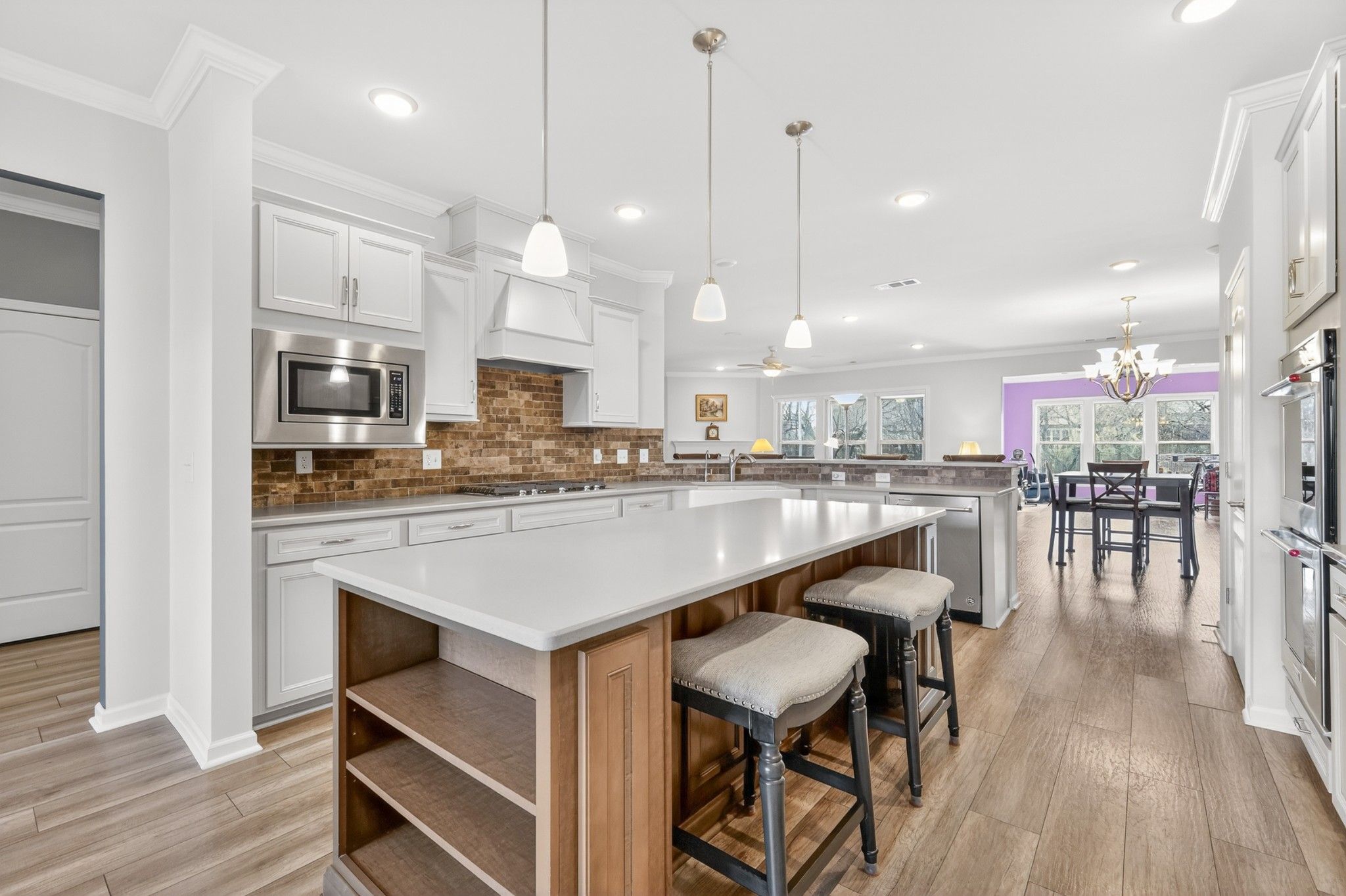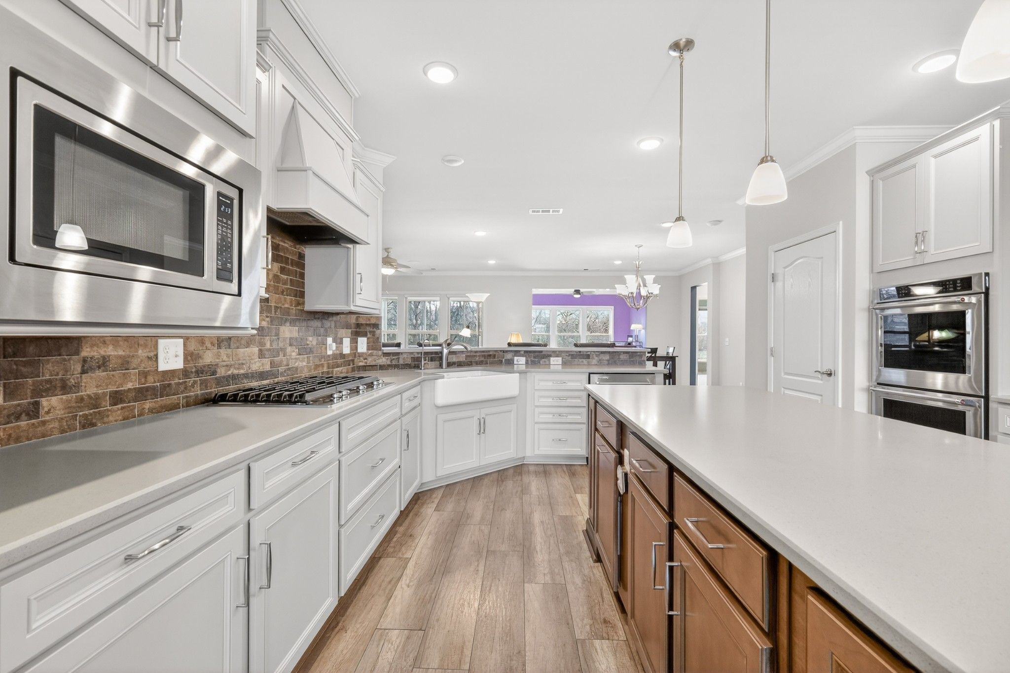 - Built-In Electric Oven, Double Oven, Cooktop, Dishwasher, Disposal, Microwave, Refrigerator, Stainless Steel Appliance(s)