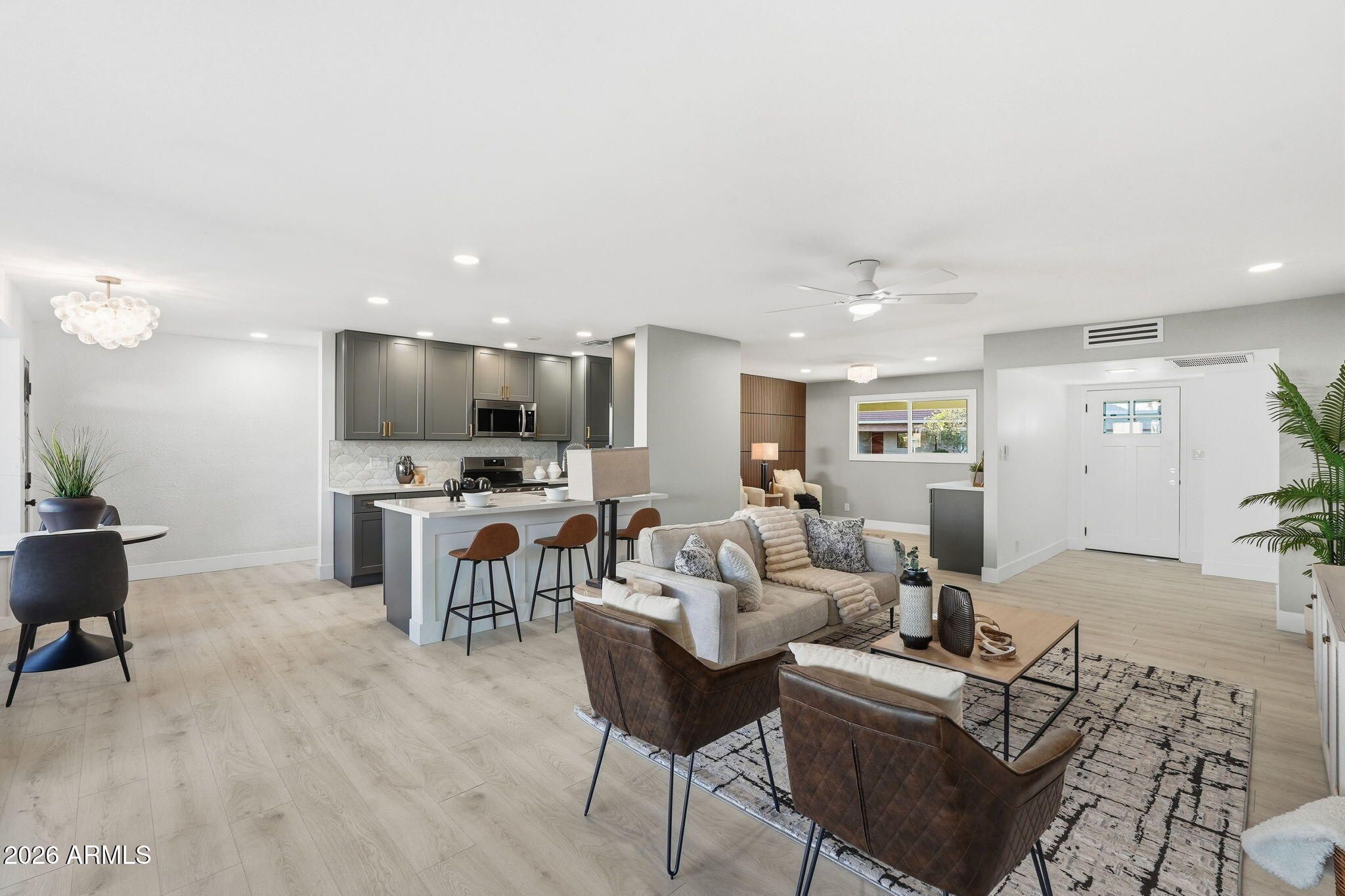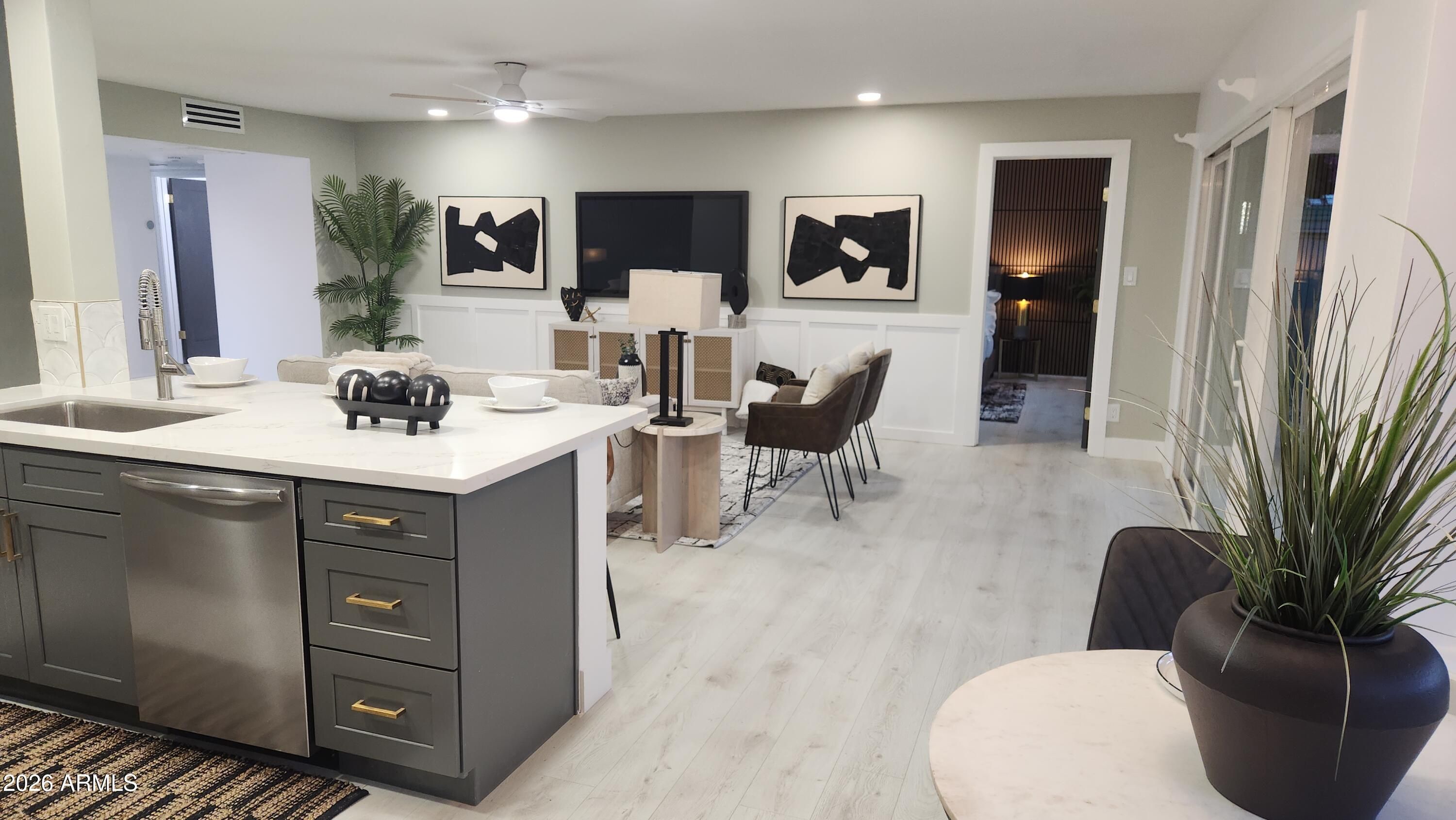 STUNNING REMODEL DONE W CHARACHTER AND STYLE IN THIS HISTORIC 55 PLUS COMMUNITY! DESIGNER TOUCHES EVERYWHERE YOU LOOK! BRAND NEW KITCHEN W UPGRADED FULL STNLS APPLS PACKAGE! QUARTZ COUNTERS AND CUSTOM BACKSPLASH! 42IN SELF CLOSING STURDY CABS! CUSTOM TRIM IN LIVING AREAS AND SLAT WALL IN DINING WITH NEW WINE COOLER ENTERTAINMENT AREA! NEW RUUD AC UNIT! NEW SEWER UPGRADE! NEW INTERIOR/EXTERIOR PAINT! NEW LIGHTING THROUOUT! PRIMARY BED AND BATH ARE A HUGE STANDOUT!! SLAT WALL IN LARGE BEDROOM GIVES A LUXURY FEEL! BATH IS ONE OF A KIND WITH CUSTOM TILE SURROUND,DOUBLE VANITY AND 7' LONG BEAUTIFUL SHOWER! LARGE WALK IN CLOSET IS A BIG PLUS! NEW WINDOW PACKAGE! VERY OPEN FLOORPLAN GIVES A VERY SPACIOUS FEEL! EAT IN AREA HAS CUSTOM TRIM AND LARGE WINDOWS FOR EXCELLENT LIGHT IN HOME! ROOF REDONE IN 22 AND RECOATED AND IN GREAT SHAPE! VIEWS OF CAMELBACK MOUNTAIN IN FRONT! VERY QUIET AREA THAT IS CLOSE TO EVERYTHING IN OLD TOWN SCOTTSDALE! LARGE COVERED BACK PATIO IS PERFECT FOR THOSE AZ NIGHTS! LARGE LAUNDRY INCLUDES WASHER/DRYER! NEW FLOORING AND ALL FIXTURES! HALL BATH IS IMPRESSIVE W 3 DIMENSIONAL TILE SURROUND AND SUPER STYLISH VANITY!! INTERIOR DOOR PACKAGE CUSTOM PAINTED WITH TOP OF LINE KNOBS GIVES DESIGNER FEEL THROUGHOUT! 5.5 BASE EVERYWEHERE IS AN UPGRADE! NEWER WATER HEATER TOO! LOW LOW HOA IN THIS AREA IS UNHEARD OF! VILLA MONTEREY IS A CLASSIC HISTORIC PERFECT SPOT IN SCOTTSDALE! MUST SEE PICS AND IN PERSON IS BETTER!