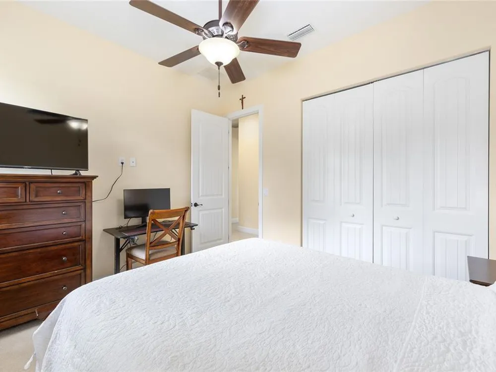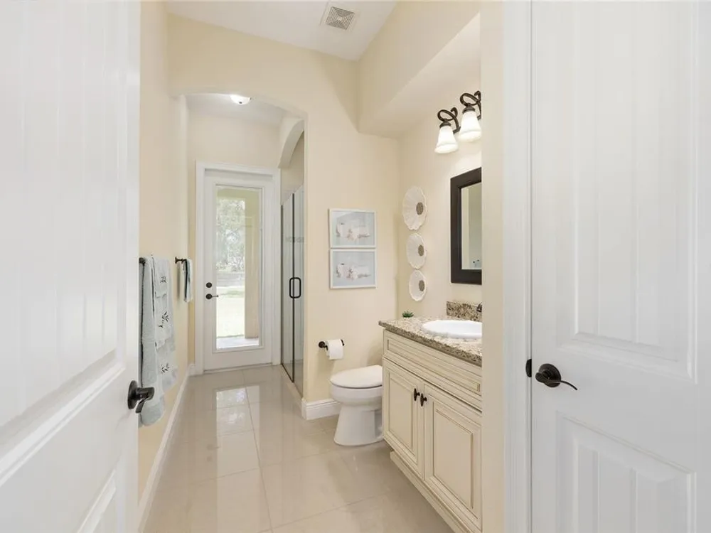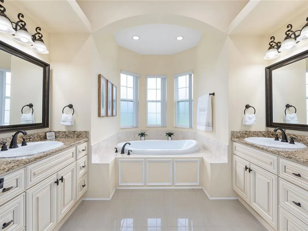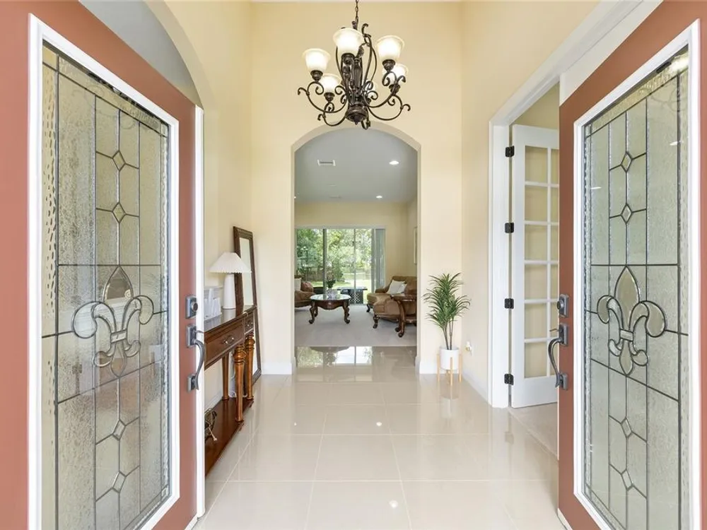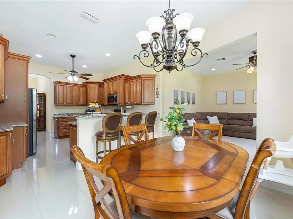 Gorgeous custom built 3/3/2 home PLUS OFFICE on .46 acre in SW Marco Polo Village II/Kingsland! Great curb appeal with grand double door entry! Light & bright! IMMACULATE AND MOVE-IN READY! Spacious home with 2652 ft and high ceilings! Formal living room with lanai access and formal dining room. Beautiful kitchen with breakfast bar, eat in nook, SS appliances, pantry, and plenty of custom cabinets and granite counters. Large family room. Office has French doors and closet ~ can be a 4th bedroom. Split bedroom plan. Amazing primary suite with tray ceiling, lanai access, TWO walk-in closets, tiled walk-in shower, jetted tub, dual granite vanities, linen closet, and water closet. THREE bathrooms. Inside laundry includes washer/dryer, sink, and more storage. Covered lanai overlooks HUGE backyard (almost HALF ACRE)! Excellent location convenient to shopping, dining, medical, entertainment, WEC, and I-75!