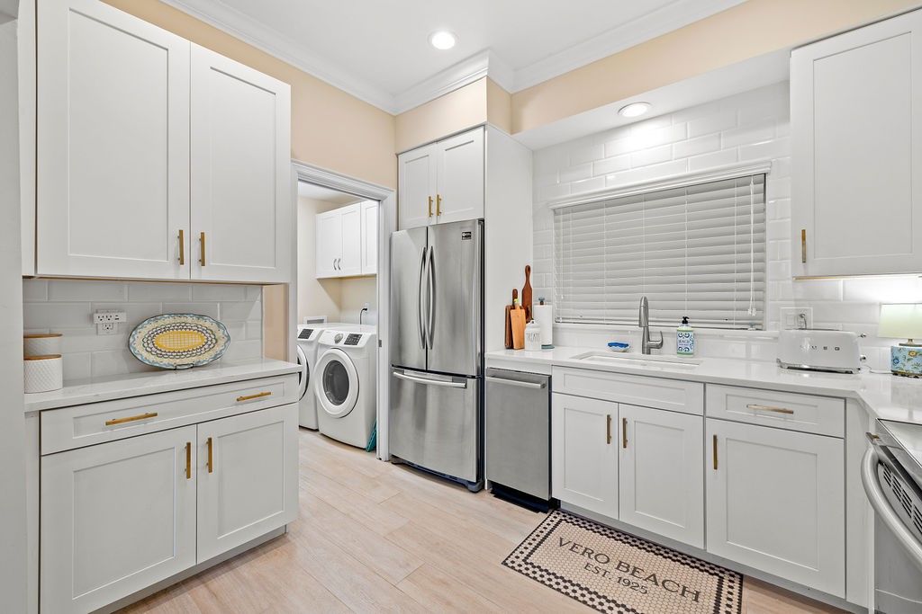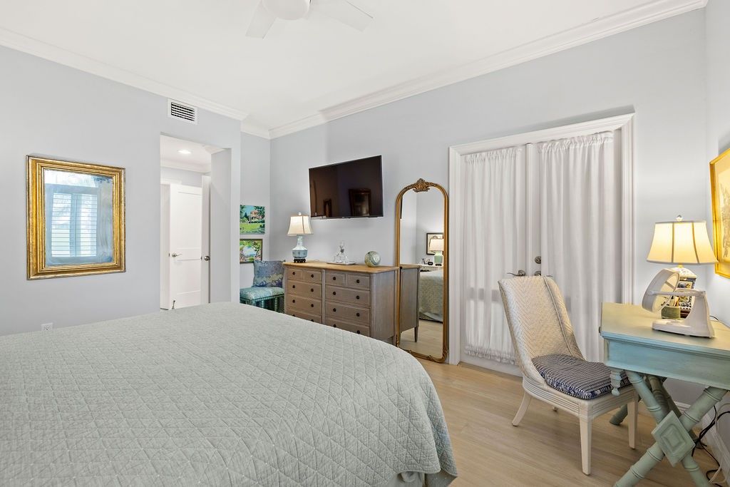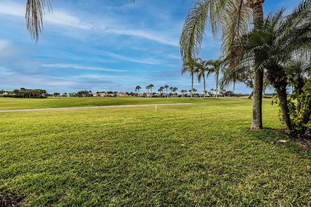 Assessment Paid! Don’t miss this totally and tastefully renovated first-floor condo in Grand Harbor. The newer open kitchen features updated cabinets and countertops with abundant storage, porcelain plank tile floors throughout, and storm shutters. A separate bar/buffet area offers additional storage. Bathrooms include new vanities and countertops, along with beautiful tile work in the showers and bath. All of this overlooks the ninth hole of the River Course and is just a short distance to the clubhouse and aqua range. Peacefully enjoy watching the birds—and the birdies!