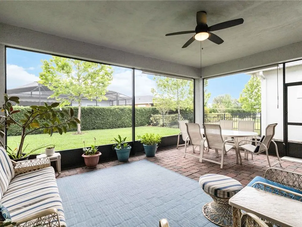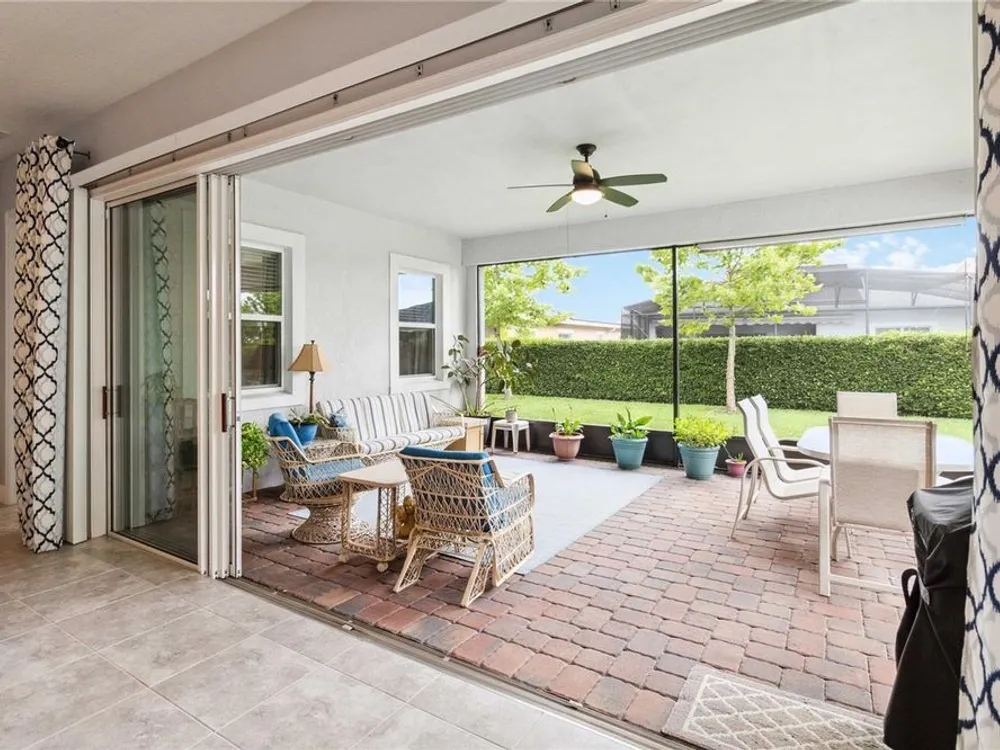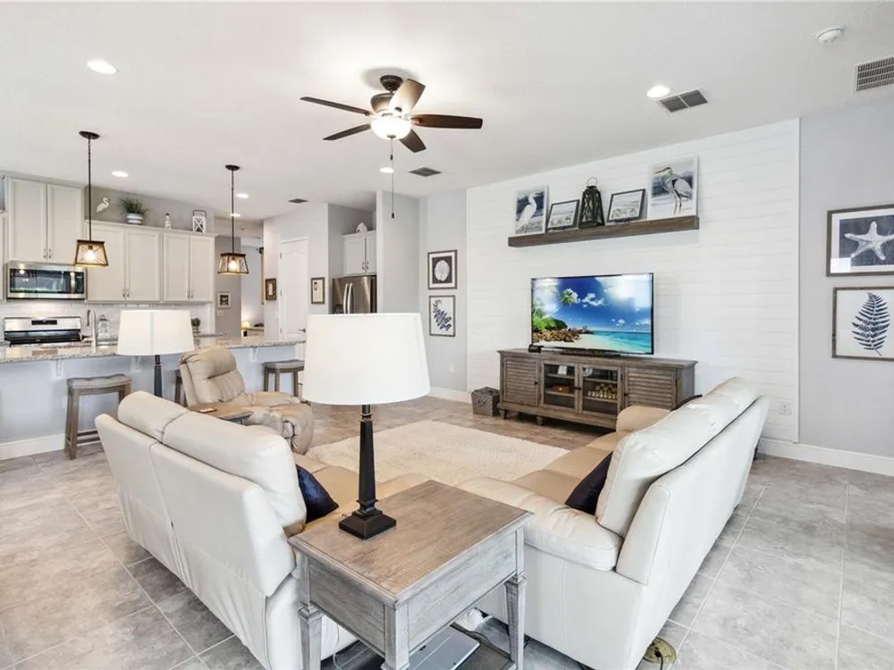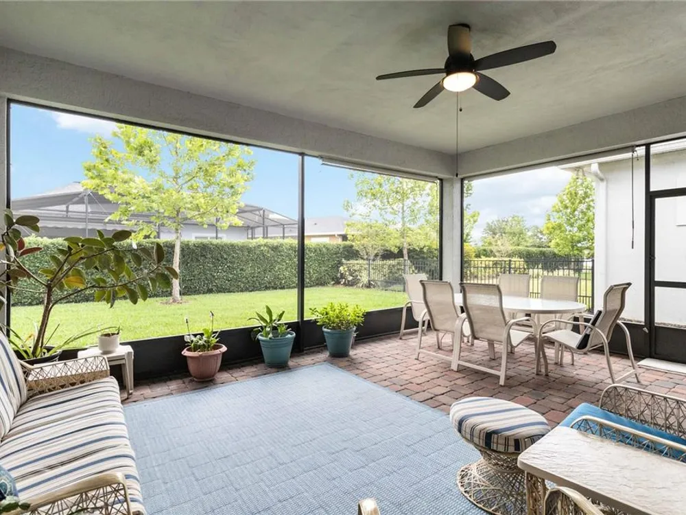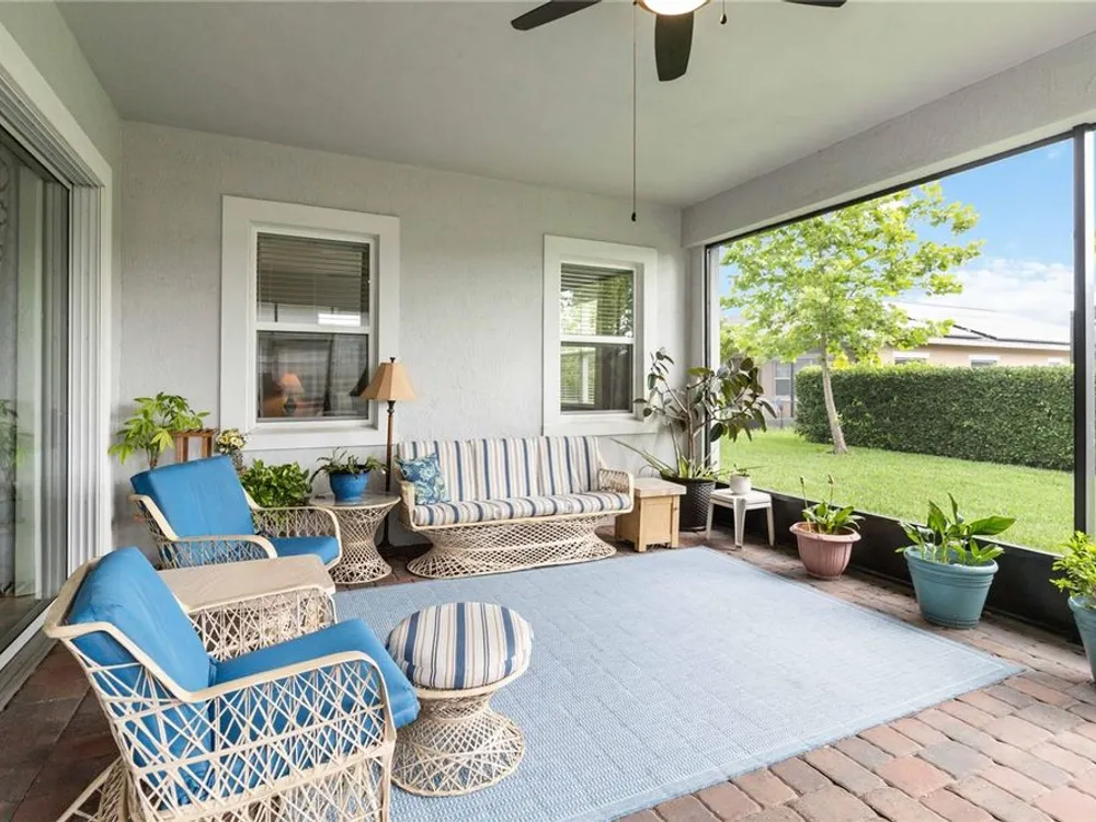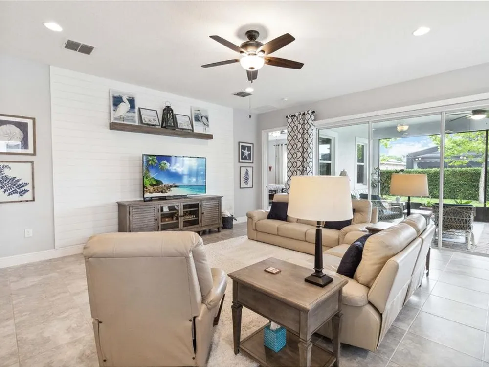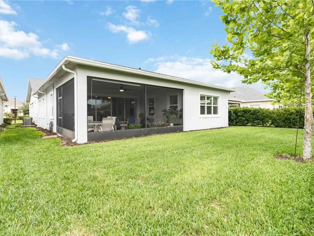 Gorgeous Meticulously kept 3 Bedroom 3 Bathroom with Den/Office Marco Elevation "B" floor plan located in Phase one close to the pools and club house in the well sought-after active Del Webb Twin Lakes 55+ community. Foyer features Custom shiplap wall, tray ceiling and light. New Smart thermostat. Whole house is professionally painted, Ceramic flooring throughout, Plantation Shutters & has great décor. Open and spacious Kitchen features upgraded light wood cabinets, under cabinet lighting, with crown molding, custom backsplash, large granite island can seat 6, Pendant lights, Gas Range, Microwave, walk-in pantry. Drop zone with backsplash and under cabinet lighting. Dining room with custom chandelier. Living room Features custom Shiplap Wall with a floating shelf, ceiling fan and light. Laundry room with shelves. Security system. Sliding glass doors with blinds lead to scenic screened Lanai, with sunshades, relax and enjoy the breeze from the private backyard surrounded by large green hedges and professionally landscaped. Primary bedroom features trey ceiling with light and blinds. Primary bedroom bath boasts a large walk-in custom tile shower with glass doors, double shower heads and custom with built in tile bench. Granite vanity and dual sinks. 2nd Bedroom in the front of the house could be used as a 2nd Primary bedroom suite, features ceiling fan with light, a large walk-in closet and Bathroom. Garage has the custom Polysemantic flooring. Amenities include a Resort style pool and Lap Pool, and 3rd pool on the carriage house side, 20,000 square foot Gorgeous Clubhouse, State of the art Fitness Center, Flex room, Tennis Courts, Putting Green, Walking Trails, Pickle Ball Court, Fishing, and Pontoon Boats and Jon boat to use on Live Oak Lake! The community has many active and socializing activities to keep you VERY busy!! All of this in a GREAT gated community located in Central Florida close to Lake Nona Medical City, Orlando, Orlando International Airport, Theme Parks, and Brevard Beaches! Do not delay making your appointment to view this home today!!