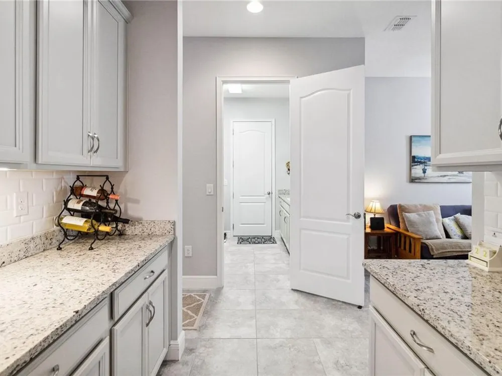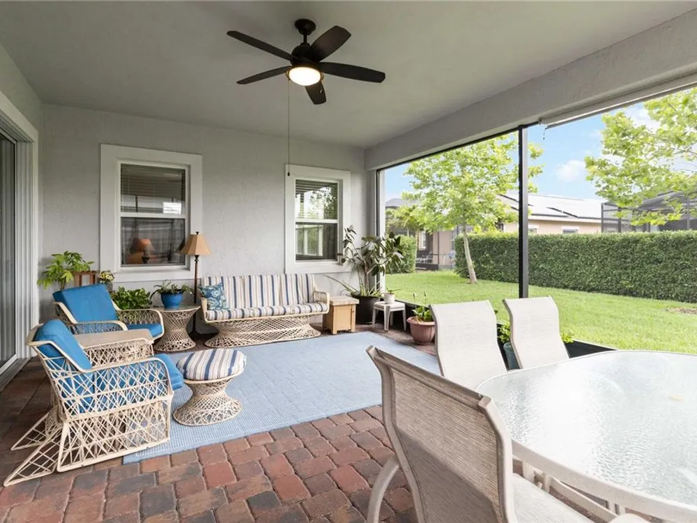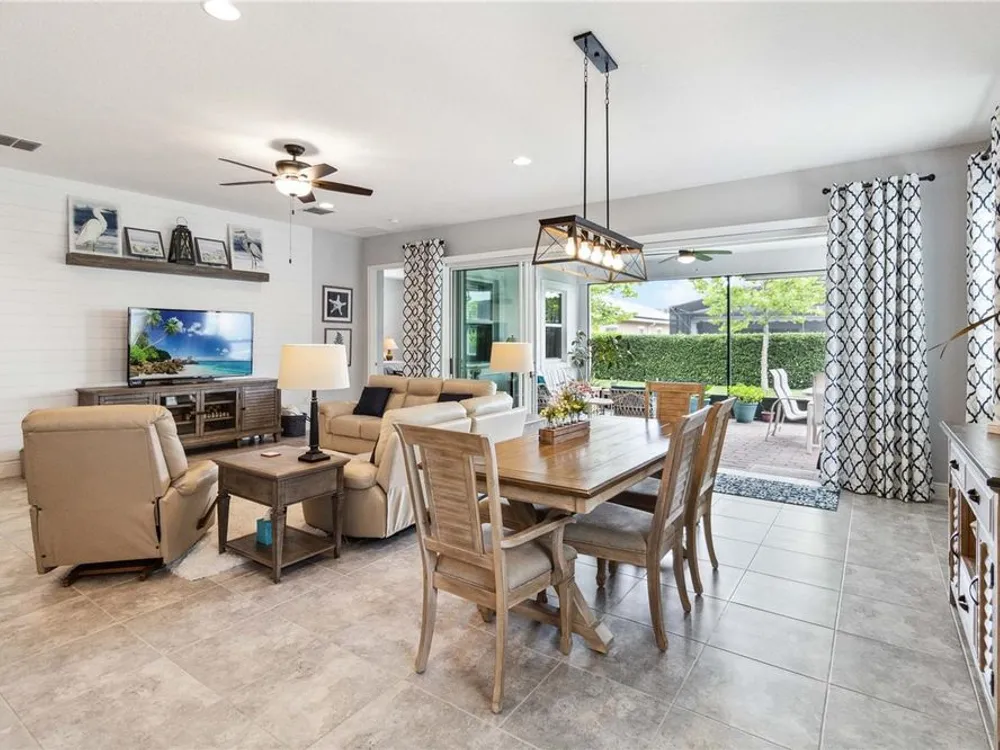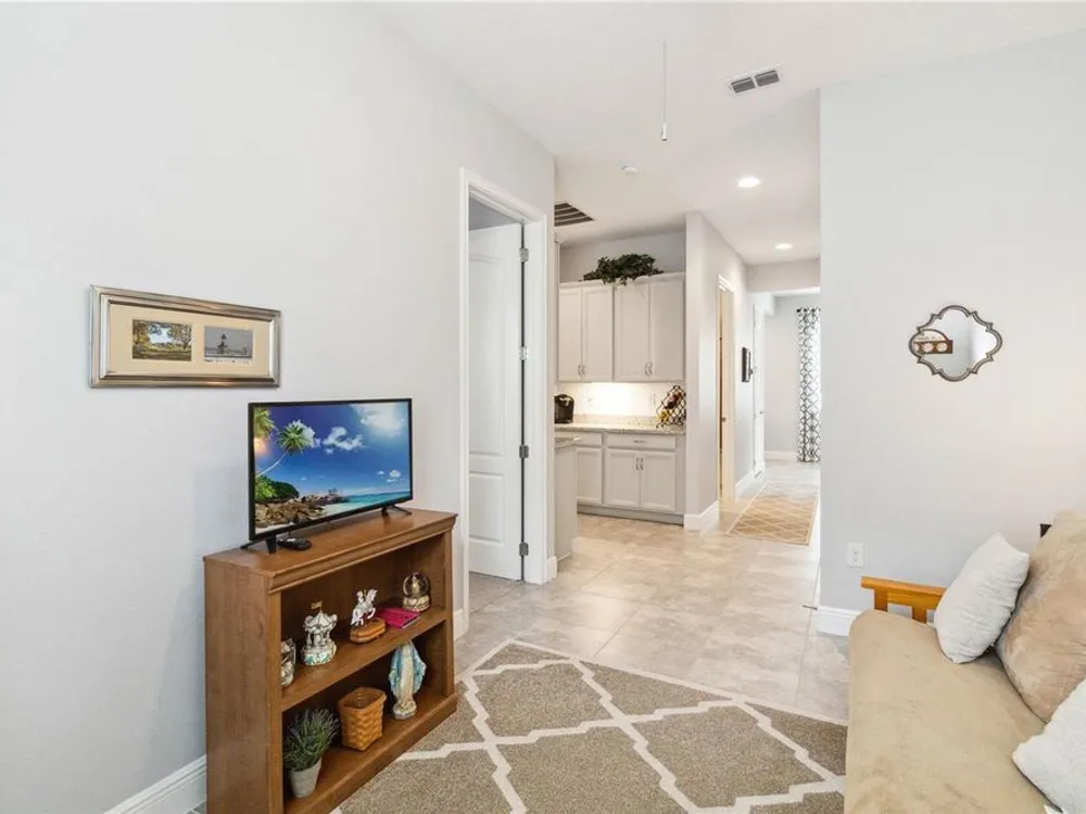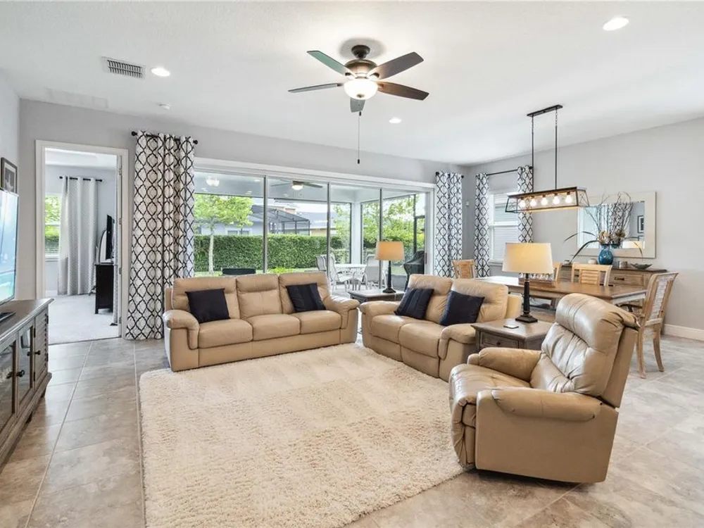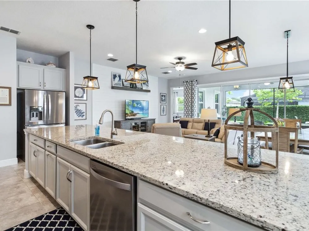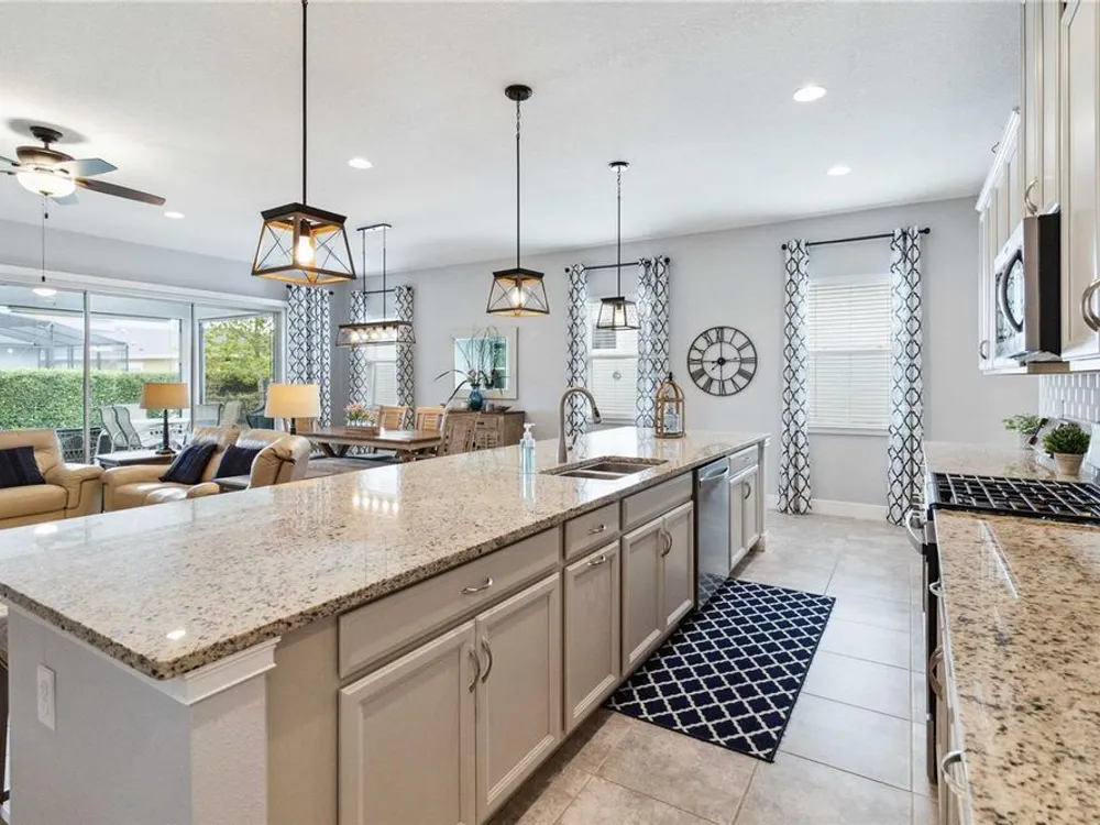 Gorgeous Meticulously kept 3 Bedroom 3 Bathroom with Den/Office Marco Elevation "B" floor plan located in Phase one close to the pools and club house in the well sought-after active Del Webb Twin Lakes 55+ community. Foyer features Custom shiplap wall, tray ceiling and light. New Smart thermostat. Whole house is professionally painted, Ceramic flooring throughout, Plantation Shutters & has great décor. Open and spacious Kitchen features upgraded light wood cabinets, under cabinet lighting, with crown molding, custom backsplash, large granite island can seat 6, Pendant lights, Gas Range, Microwave, walk-in pantry. Drop zone with backsplash and under cabinet lighting. Dining room with custom chandelier. Living room Features custom Shiplap Wall with a floating shelf, ceiling fan and light. Laundry room with shelves. Security system. Sliding glass doors with blinds lead to scenic screened Lanai, with sunshades, relax and enjoy the breeze from the private backyard surrounded by large green hedges and professionally landscaped. Primary bedroom features trey ceiling with light and blinds. Primary bedroom bath boasts a large walk-in custom tile shower with glass doors, double shower heads and custom with built in tile bench. Granite vanity and dual sinks. 2nd Bedroom in the front of the house could be used as a 2nd Primary bedroom suite, features ceiling fan with light, a large walk-in closet and Bathroom. Garage has the custom Polysemantic flooring. Amenities include a Resort style pool and Lap Pool, and 3rd pool on the carriage house side, 20,000 square foot Gorgeous Clubhouse, State of the art Fitness Center, Flex room, Tennis Courts, Putting Green, Walking Trails, Pickle Ball Court, Fishing, and Pontoon Boats and Jon boat to use on Live Oak Lake! The community has many active and socializing activities to keep you VERY busy!! All of this in a GREAT gated community located in Central Florida close to Lake Nona Medical City, Orlando, Orlando International Airport, Theme Parks, and Brevard Beaches! Do not delay making your appointment to view this home today!!
