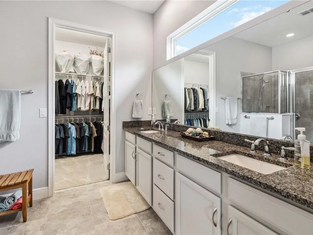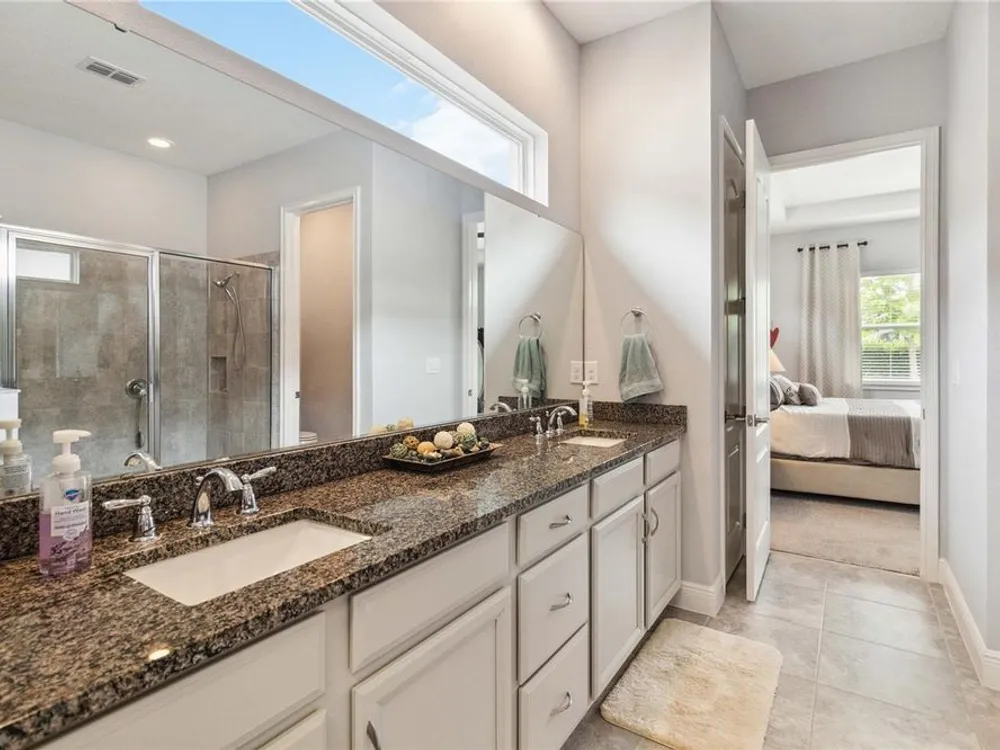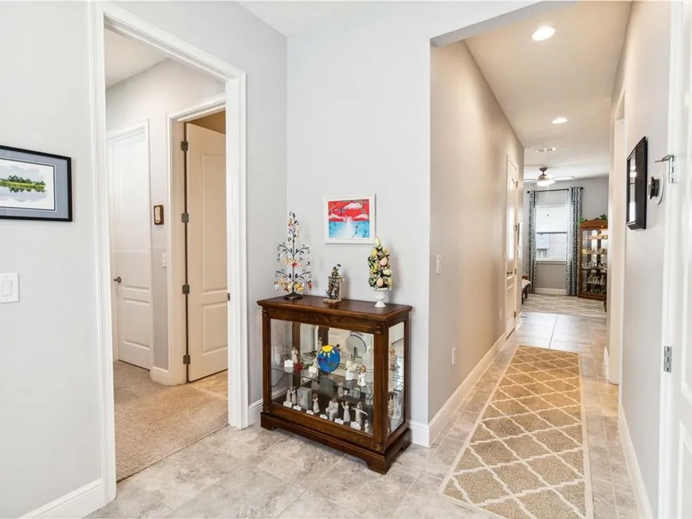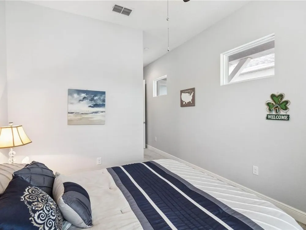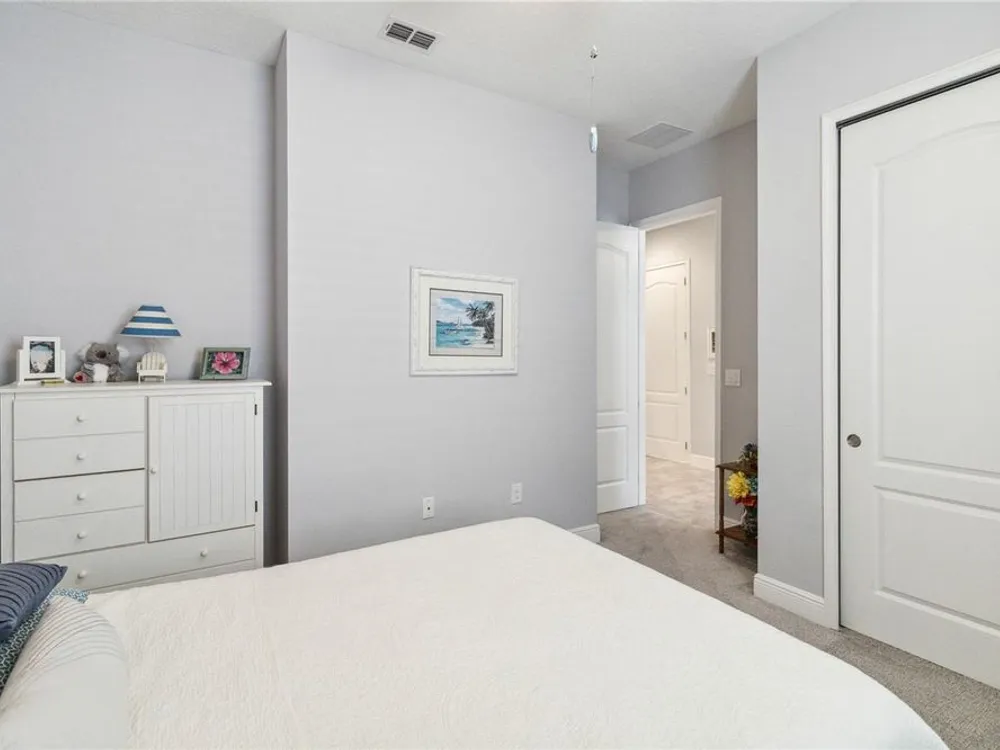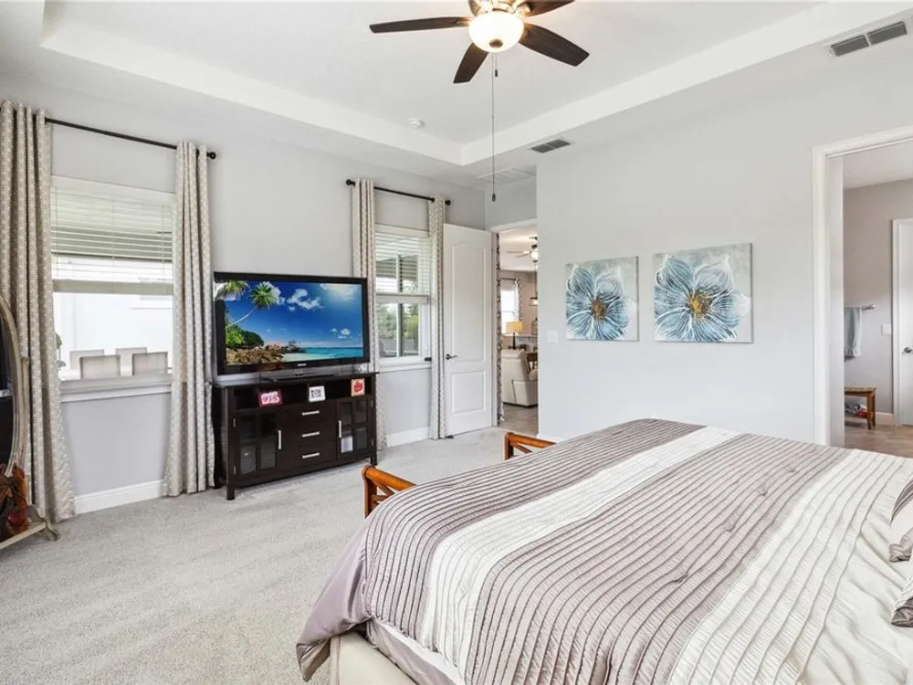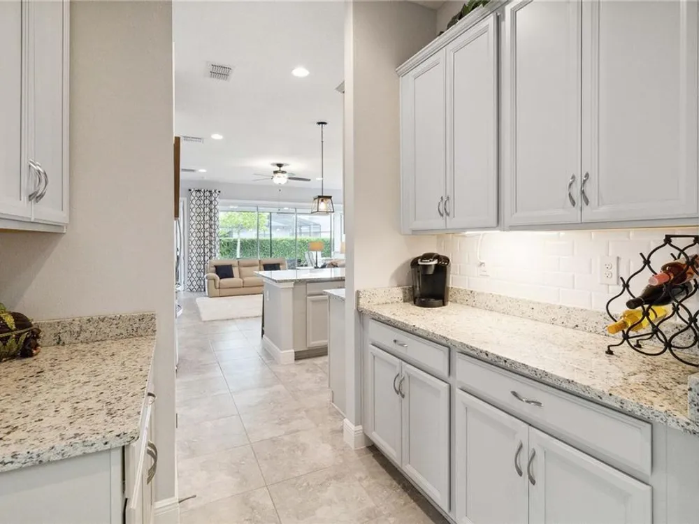 Gorgeous Meticulously kept 3 Bedroom 3 Bathroom with Den/Office Marco Elevation "B" floor plan located in Phase one close to the pools and club house in the well sought-after active Del Webb Twin Lakes 55+ community. Foyer features Custom shiplap wall, tray ceiling and light. New Smart thermostat. Whole house is professionally painted, Ceramic flooring throughout, Plantation Shutters & has great décor. Open and spacious Kitchen features upgraded light wood cabinets, under cabinet lighting, with crown molding, custom backsplash, large granite island can seat 6, Pendant lights, Gas Range, Microwave, walk-in pantry. Drop zone with backsplash and under cabinet lighting. Dining room with custom chandelier. Living room Features custom Shiplap Wall with a floating shelf, ceiling fan and light. Laundry room with shelves. Security system. Sliding glass doors with blinds lead to scenic screened Lanai, with sunshades, relax and enjoy the breeze from the private backyard surrounded by large green hedges and professionally landscaped. Primary bedroom features trey ceiling with light and blinds. Primary bedroom bath boasts a large walk-in custom tile shower with glass doors, double shower heads and custom with built in tile bench. Granite vanity and dual sinks. 2nd Bedroom in the front of the house could be used as a 2nd Primary bedroom suite, features ceiling fan with light, a large walk-in closet and Bathroom. Garage has the custom Polysemantic flooring. Amenities include a Resort style pool and Lap Pool, and 3rd pool on the carriage house side, 20,000 square foot Gorgeous Clubhouse, State of the art Fitness Center, Flex room, Tennis Courts, Putting Green, Walking Trails, Pickle Ball Court, Fishing, and Pontoon Boats and Jon boat to use on Live Oak Lake! The community has many active and socializing activities to keep you VERY busy!! All of this in a GREAT gated community located in Central Florida close to Lake Nona Medical City, Orlando, Orlando International Airport, Theme Parks, and Brevard Beaches! Do not delay making your appointment to view this home today!!