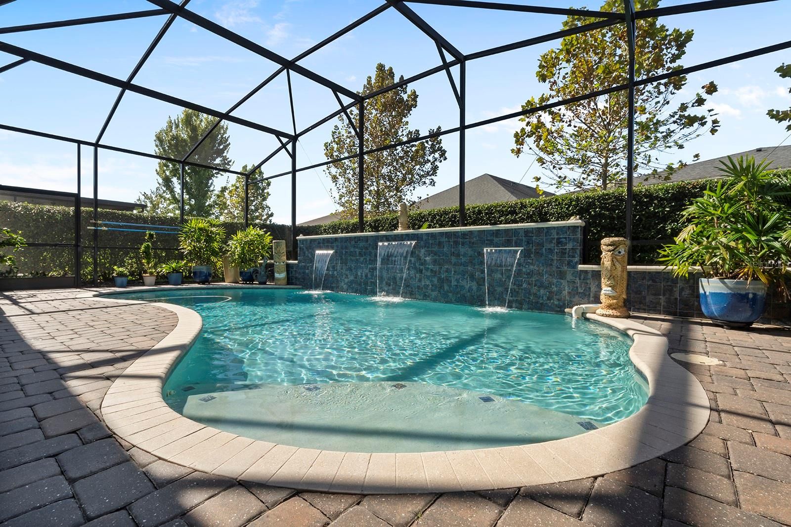 It’s not every day a pool home becomes available in Twin Lakes, one of St. Cloud’s most sought-after 55+ communities, and this meticulously maintained Cocoa floor plan is packed with upgrades and thoughtful touches from top to bottom. Step inside through the upgraded glass front door framed by crown-molded tray ceilings and a solar tube that fills the entry with natural light. The open-concept living area showcases crown molding throughout, wood-look tile flooring, and a custom entertainment center with an electric fireplace as the warm focal point. Expansive stackable sliding glass doors blend indoor and outdoor living, opening to your private screened-in oasis. The chef’s kitchen impresses with granite counters on every surface, including the office, baths, and laundry. Soft-close cabinetry, pull-out drawers, a massive center island, built-in microwave and wall oven, a gas cooktop, and solar-tube lighting above the island combine beauty and functionality. The motorized blinds on the slider and dining and kitchen windows offer effortless control of light and privacy. Just off the kitchen, the spacious walk-in pantry offers abundant shelving and easy organization, perfect for anyone who loves to cook or entertain. The laundry room provides even more functionality, featuring granite counters, upper and lower cabinetry, and plenty of workspace for folding and storage—all designed with practicality and style in mind. The primary suite is a relaxing retreat with engineered hardwood flooring, a tray ceiling with crown molding, and an en-suite bathroom featuring an oversized frameless-glass shower with dual shower heads, granite counters, and crank-out windows for natural airflow. A spacious walk-in closet with custom shelving completes the space. Two additional bedrooms and an office or den provide flexibility for guests, hobbies, or workspace needs. Out back, the screened-in saltwater pool steals the show with solar and gas heating, triple water features, awnings and shades, and a natural gas BBQ hookup with grill included. The lush privacy landscaping and tranquil setting create a true backyard sanctuary, perfect for entertaining or peaceful relaxation. Additional improvements completed this year include exterior paint, driveway sealing, and a newly epoxy-coated garage floor. The garage features an electric screen with battery backup and overhead storage, and the home includes ceiling fans throughout, crank-out windows in the kitchen and both bathrooms, and solar tubes at the front entry and kitchen. When the stackable sliders are open and the garage’s electric screen is lowered, the refreshing cross breeze flows naturally through the home, filling every space with fresh air and adding to the relaxing atmosphere. Residents of Twin Lakes by Del Webb, a premier 55+ gated community, enjoy resort-style amenities including a clubhouse, state-of-the-art fitness center, resort pools (including lap and zero entry), sauna, tennis, basketball, and pickleball courts, bocce ball, walking trails, dog parks, putting green, boat dock, kayaking, and so much more! Plus, there is always a full calendar of social activities. This spectacular home is in an ideal location with the Orlando airport about 35 mins away, Melbourne Beach just a little over an hour drive, Disney and Universal are less than 40 mins, and tons of shopping less than 10 mins up the road! This isn't just a home, but the Florida lifestyle you've been searching for.