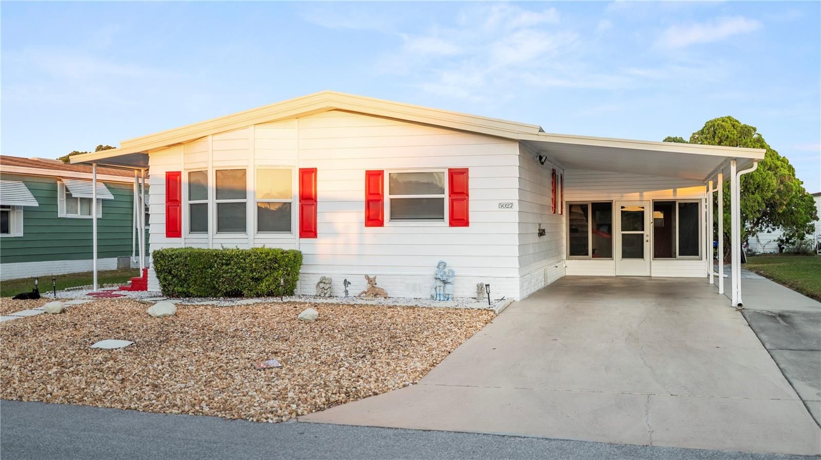 This beautifully maintained residence is nestled in one of the area’s most desirable 55+ communities, where resort-style amenities and a vibrant social calendar make every day feel like vacation. Spend your mornings by the heated pool, afternoons on the tennis courts, and evenings enjoying the endless lineup of community events and activities. Step inside to discover a bright, open floor plan designed for both comfort and entertaining. The spacious kitchen is a dream for gatherings, featuring stainless steel appliances, abundant cabinetry, and expansive countertops for meal prep or casual dining. Both bedrooms include walk-in closets, while the primary suite offers a peaceful retreat with a newly remodeled, spa-inspired bathroom. The guest bathroom has also been tastefully updated. Practical updates bring peace of mind, including a durable metal roof (approx. 8 years old), double-pane thermal windows, and an oversized carport with plenty of room for vehicles or a golf cart. The freshly painted exterior gives this home great curb appeal and a welcoming feel. Residents enjoy access to a clubhouse, fitness center, library, and more—everything you need to live the Florida lifestyle to the fullest. Don’t miss this one! Schedule your private tour today and see why this community is the perfect place to call home.