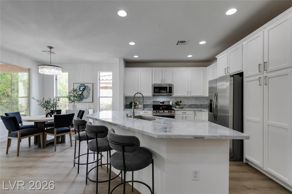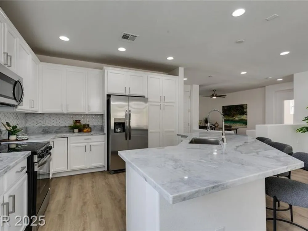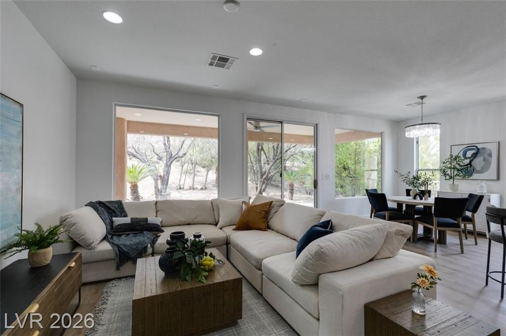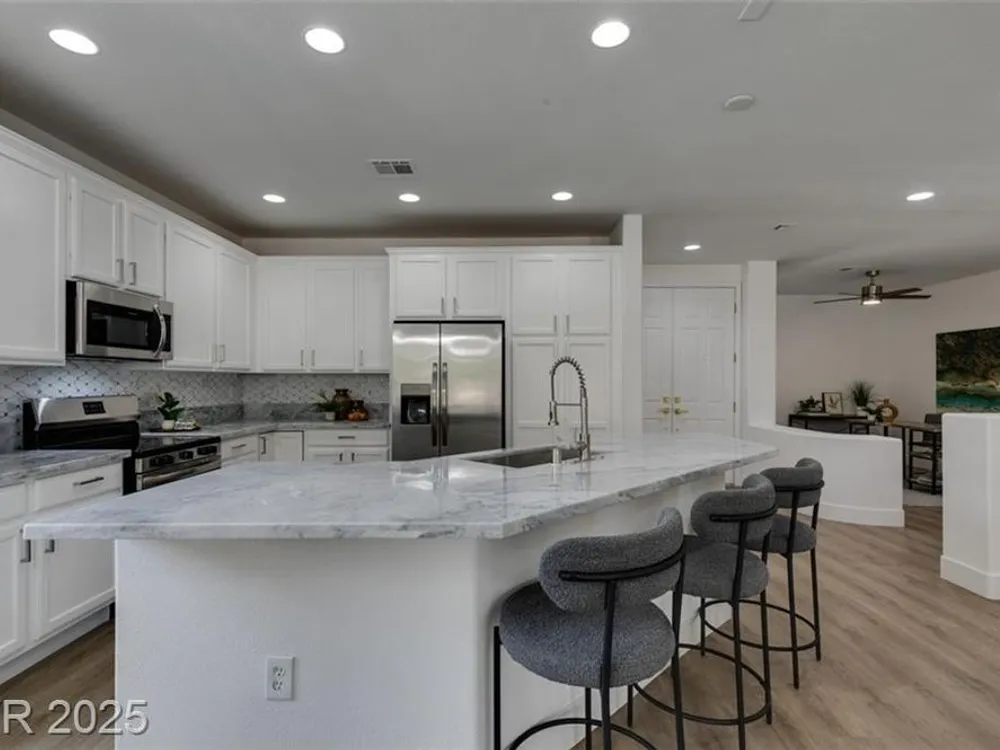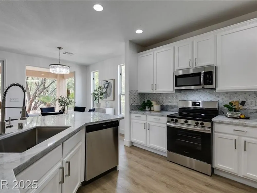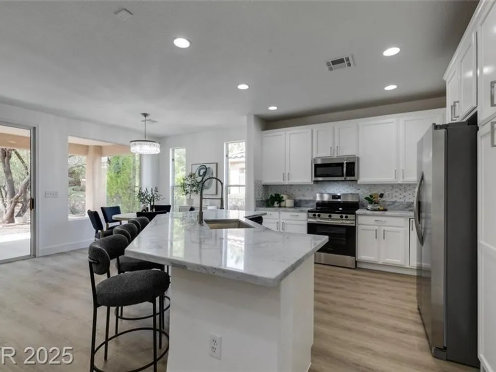 Located in Siena! A premier guard gated 55+ Community with 24 hours security with tons of amenities inside of Summerlin! This property has been tastefully remodeled with Luxury Vinyl Plank through all common areas and textured carpet in the bedrooms for a soft feel. Tile in the bathrooms with premium natural stone countertops throughout. Tastefully done, white cabinets and brushed nickel fixtures. Come check this property out today!