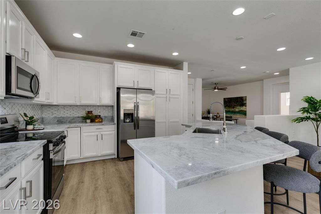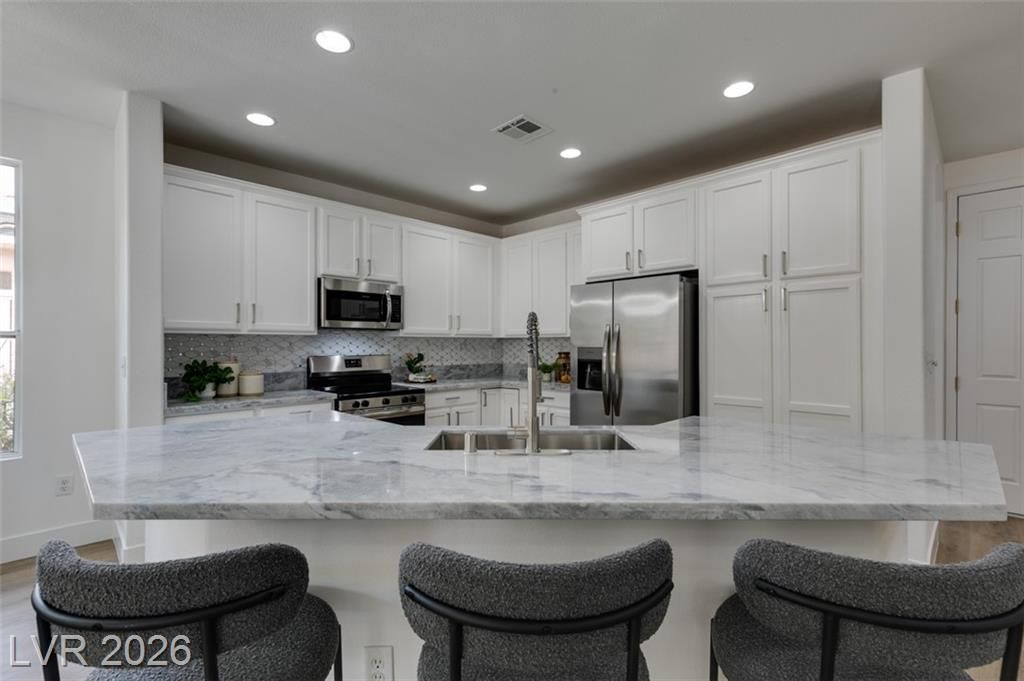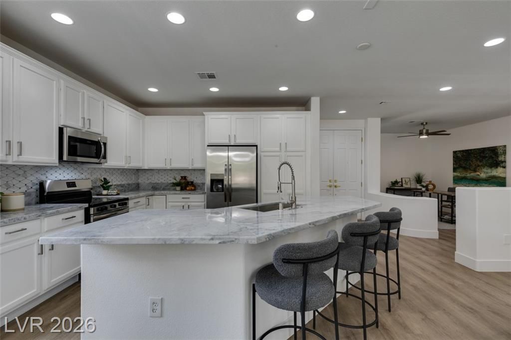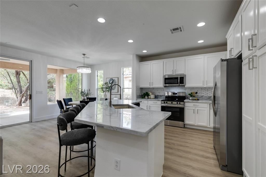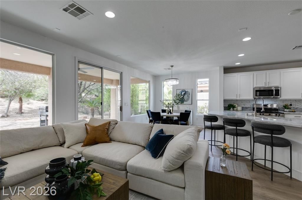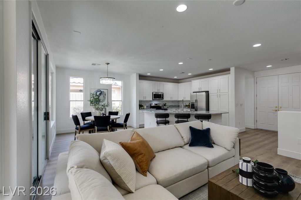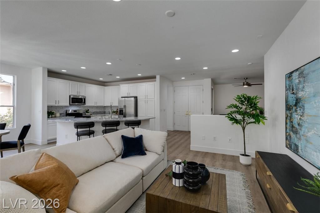 Located in Siena! A premier guard gated 55+ Community with 24 hours security with tons of amenities inside of Summerlin! This property has been tastefully remodeled with Luxury Vinyl Plank through all common areas and textured carpet in the bedrooms for a soft feel. Tile in the bathrooms with premium natural stone countertops throughout. Tastefully done, white cabinets and brushed nickel fixtures. Come check this property out today!