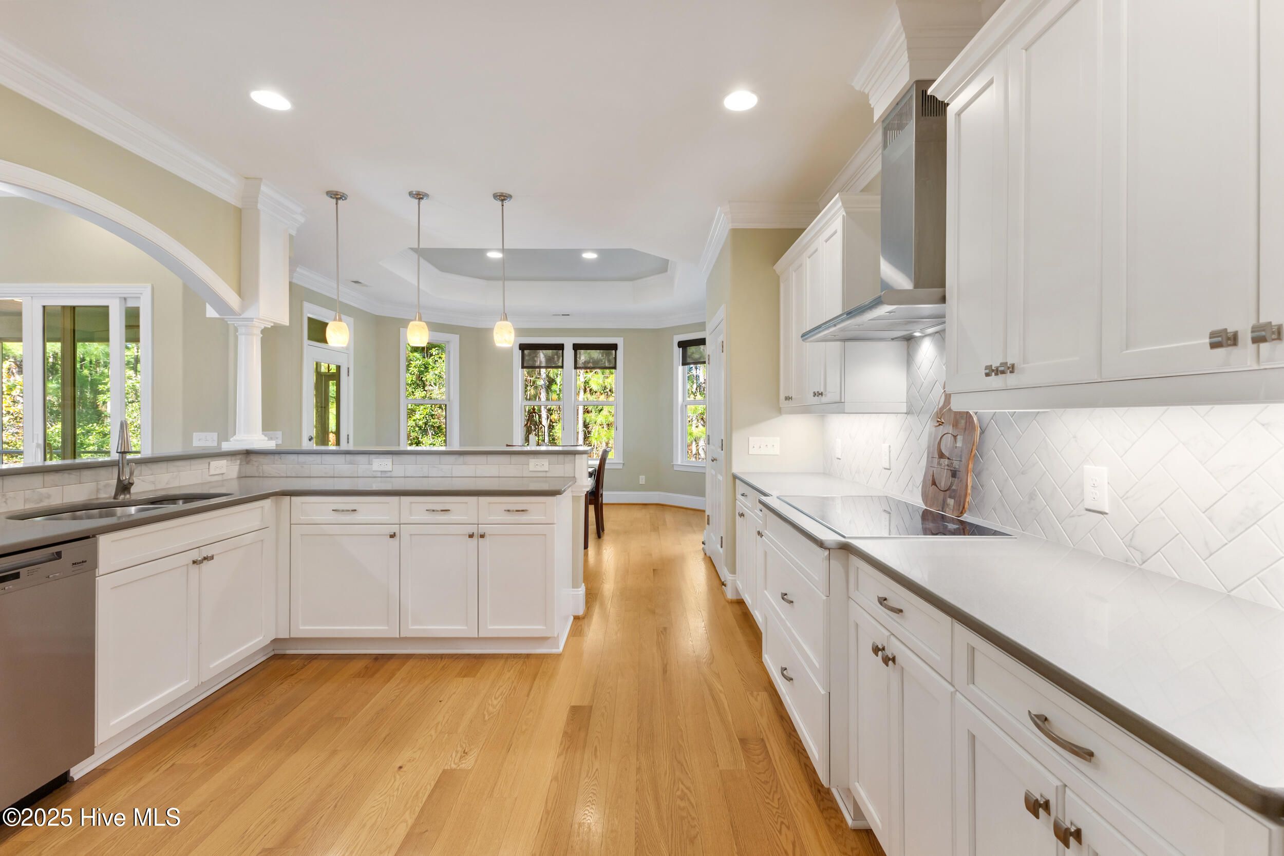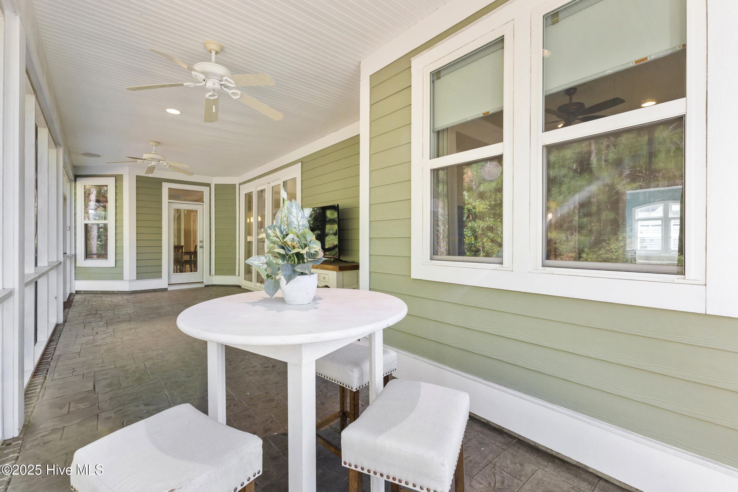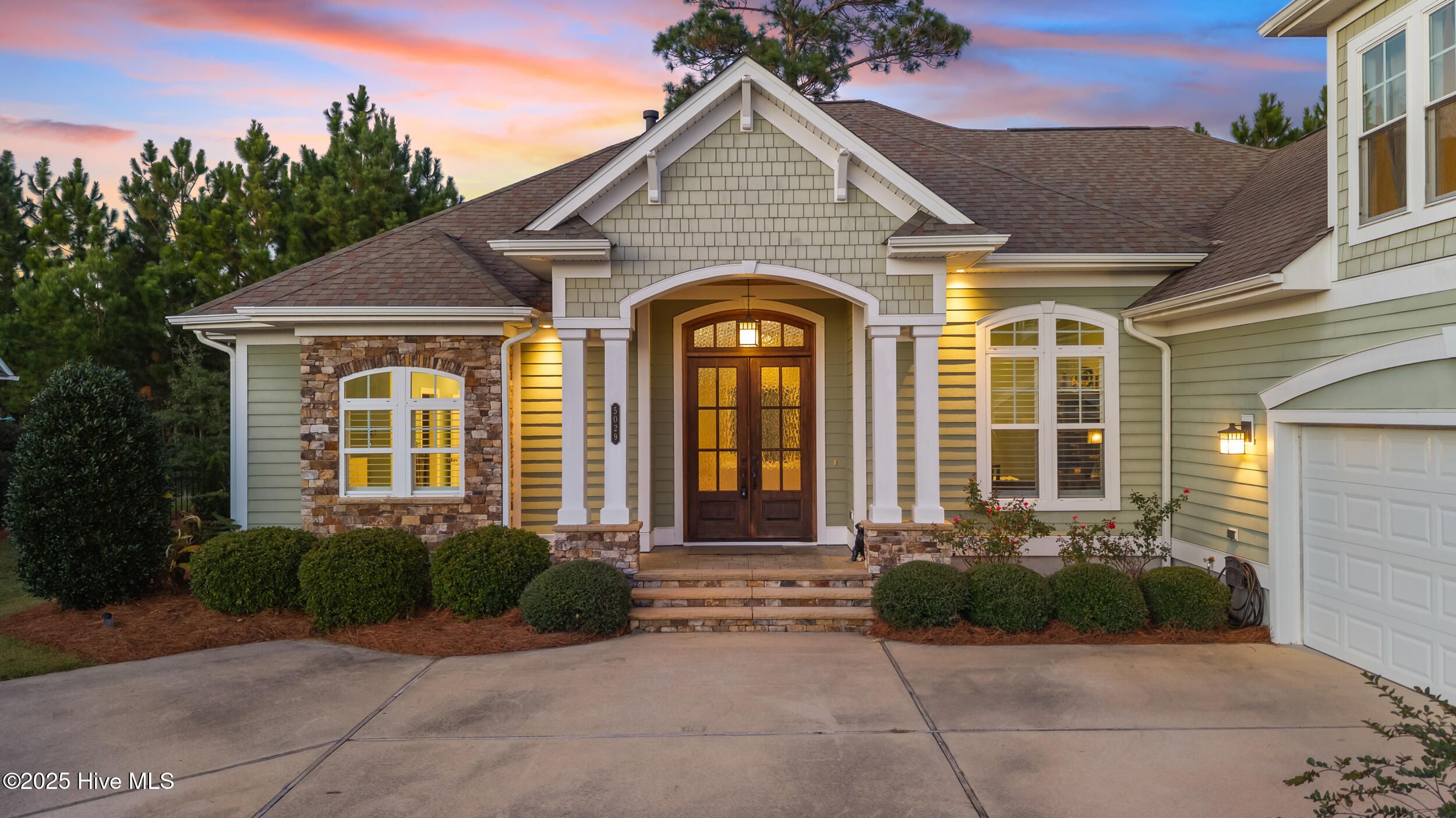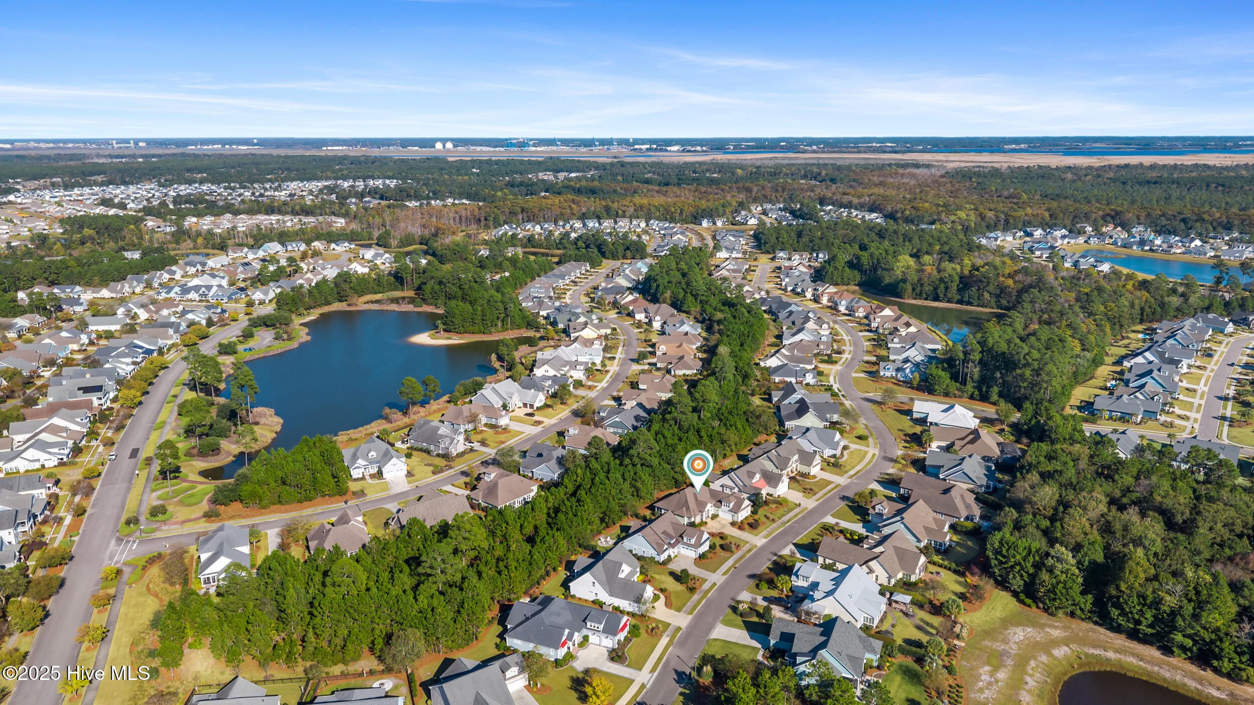 Welcome to 5029 Stoney Point Drive, a premier custom residence in the highly sought-after Shelmore enclave of Brunswick Forest. This beautifully designed home features a bright, open floor plan with red oak hardwood floors, a Vermont Castings fireplace, and extensive custom cabinetry throughout. The European-inspired kitchen is a true showpiece, offering Miele appliances, quartz countertops, and sleek, modern cabinetry—ideal for both everyday living and entertaining. The primary suite showcases a spa-like Roman bath, while two additional guest bedrooms, a French-door office, and a versatile upstairs suite provide exceptional flexibility for guests, work-from-home living, or multigenerational needs. Enjoy serene wooded privacy from the screened lanai, perfect for year-round relaxation. Additional highlights include a tankless hot water heater, built-in speaker system, and a spacious 2.5-car garage. Ideally located just steps from Shelmore's lake, pool, and fitness facility, and only minutes from downtown Wilmington, area beaches, and premier golf courses, this home offers the perfect blend of luxury, comfort, and convenience.