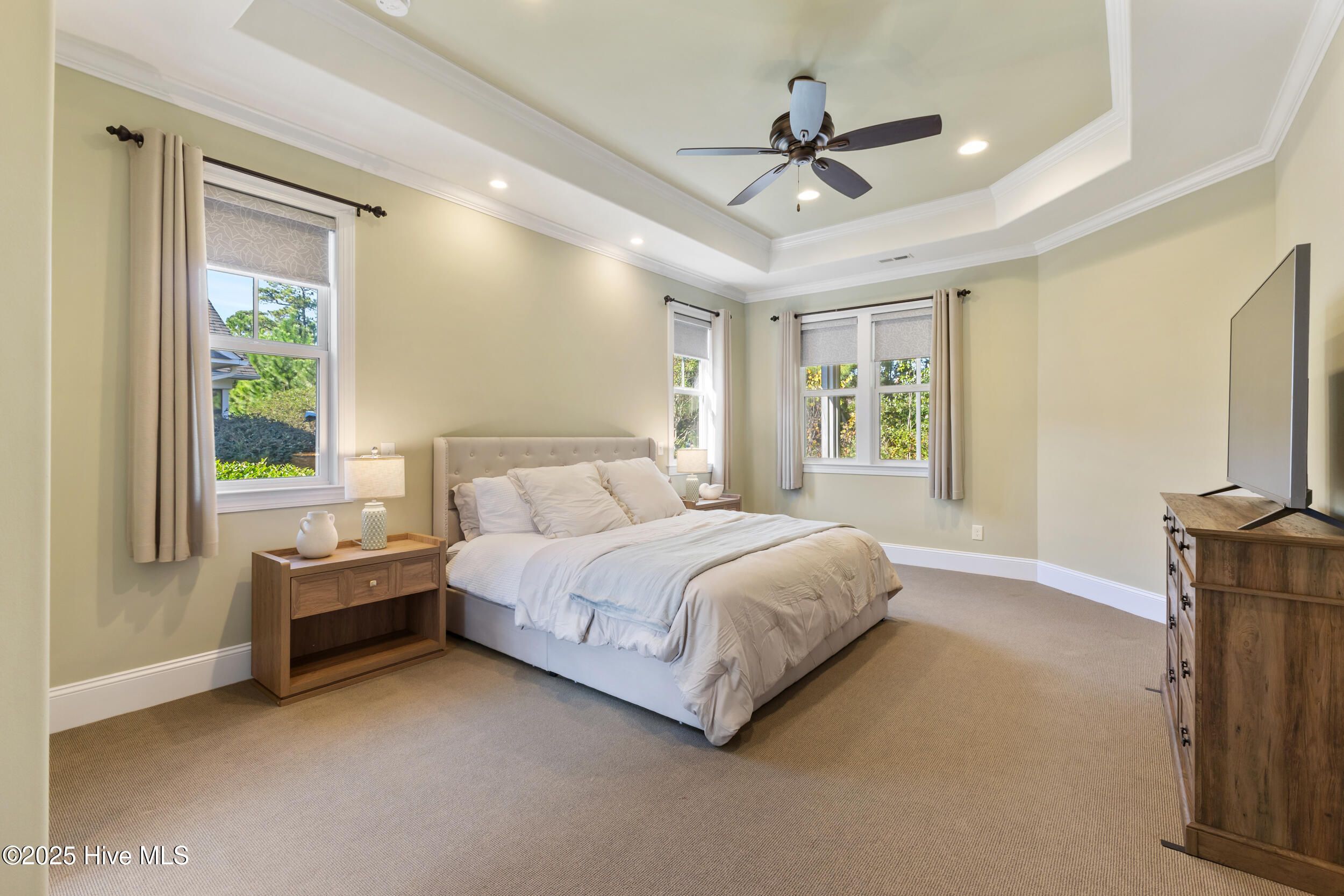 - Sound System, Master Downstairs, Walk-In Closet(s), Tray Ceiling(s), Entrance Foyer, Solid Surface Counters, Bookcases, Walk-In Shower, Blinds