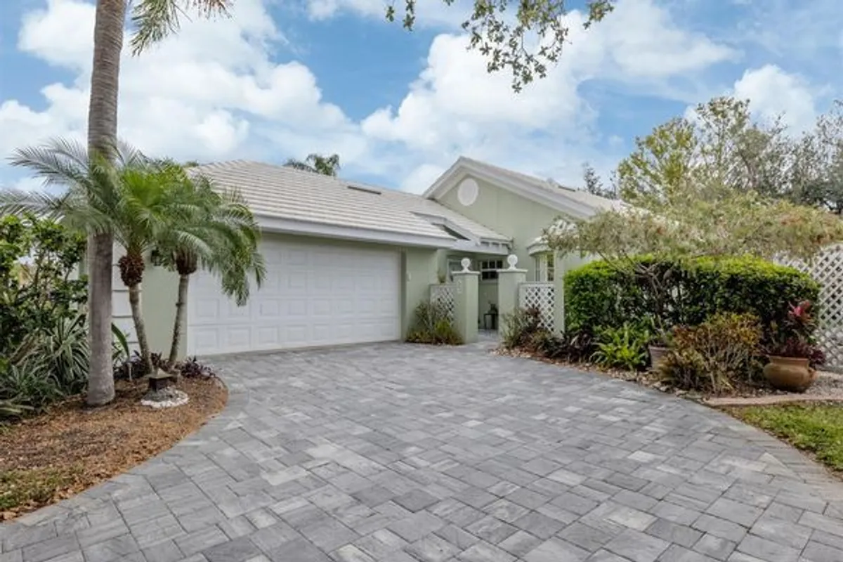 IDEAL LOCATION in CLUBSIDE at the PLANTATION, a GATED, MAINTENANCE FREE community, adjacent to The Plantation Golf and Country Club. This home offers Beautiful NEW "Wood Look" Luxury Vinyl Plank Flooring throughout, 2 bedrooms and a den or optional 3rd bedroom, PLUS a Florida room with hurricane -proof windows overlooking a peaceful pond view. 2 car attached garage. TURN-KEY furnished including 65" family room TV and TV's in the primary suite, kitchen, and guest bedroom. Beautiful, large pavered driveway. The outside front entrance presents a charming and inviting place to meet and greet. Screened, covered and private side lanai with brick floor is 190 sq. ft. allowing for several seating areas. Two outside patios on either end of the lanai provide more options for gathering and grilling. Lattice privacy fence with mature, low maintenance shrubs. The entire homesite offers maximum privacy and presents many opportunities for you to put your own personal touches in the gardening beds. Tile floors in entrance, kitchen, dining room, and bathrooms; the living areas and bedrooms have carpet. Bright and open kitchen with a welcoming breakfast nook. Spacious dining and living areas connect seamlessly to the Florida room to give you functional and flexible living space. "Green" solar light tunnel in living area. Large primary bedroom suite has a separate walk-in shower, soaking tub, walk-in closet and a double closet with folding doors. The guest bedroom and den are nicely separated from the primary suite and access a guest bath with a tub/shower. The den has a screened solar-lit room with sliding glass doors. ROOF REPLACED 2017. New "TRANE" AC System. New "Weber" barbeque comes with the house. Clubside has its own renovated clubhouse, community pool, and regular events and activities. CLUBSIDE is a well maintained and well managed community that shows genuine pride of ownership. CLOSE PROXIMITY to PLANTATION GOLF & COUNTRY CLUB is a HUGE ADVANTAGE WHEN YOU LIVE IN CLUBSIDE. If you do choose to join the nearby Plantation Golf & Country Club, a variety of memberships are available. You can pick from an extensive selection of events and activities, including 2 golf courses, driving range, pickleball, tennis, bocce, 24 hr. fitness, junior olympic pool, and a full social calendar with lots of options for everyone. Here is your chance to " live the Florida lifestyle"! PERFECT LOCATION with the FLORIDA GULF BEACHES, historic DOWNTOWN VENICE, DOWNTOWN WELLEN PARK, COOL TODAY STADIUM, limitless restaurants, shopping, services, events, and recreation all nearby.