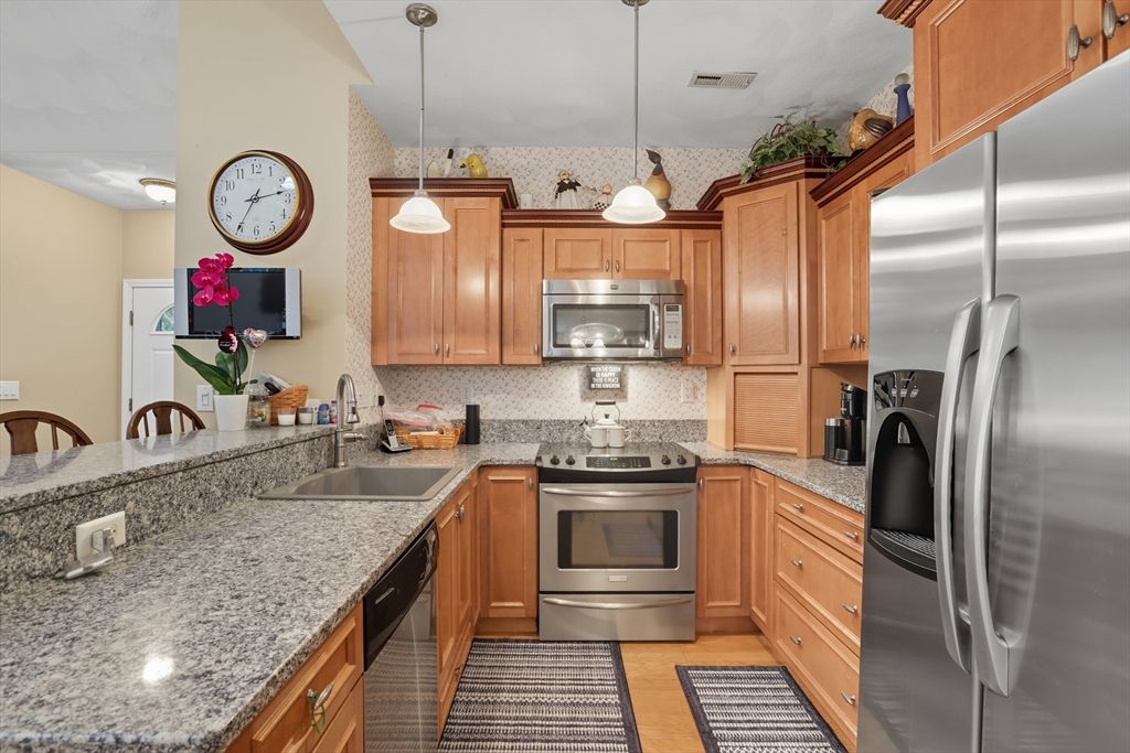 Welcome to White Stone Village 55+ home offering a open concept with six rooms and three full baths. The first floor features a spacious primary suite with a walk-in closet and private bath, along with a second bedroom and full bath for guests or office space. The kitchen is highlighted by granite counters breakfast bar, beautiful solid wood cabinets and stain -less steel appliances and Washer/Dryer on the first floor. Opens to a living room with soaring cathedral ceilings. Beautiful hardwood floors flow throughout the main living areas, with carpet in the bedrooms for comfort. Upstairs, a versatile loft with an additional full bath provides the perfect retreat for visitors or hobbies. The lower level offers a full basement for storage, and an attached one-car garage adds convenience. Enjoy a private deck & patio. Residents also have access to a clubhouse with gym. A desirable location that places the ocean, mountains, and tax-free New Hampshire shopping within driving distance.
