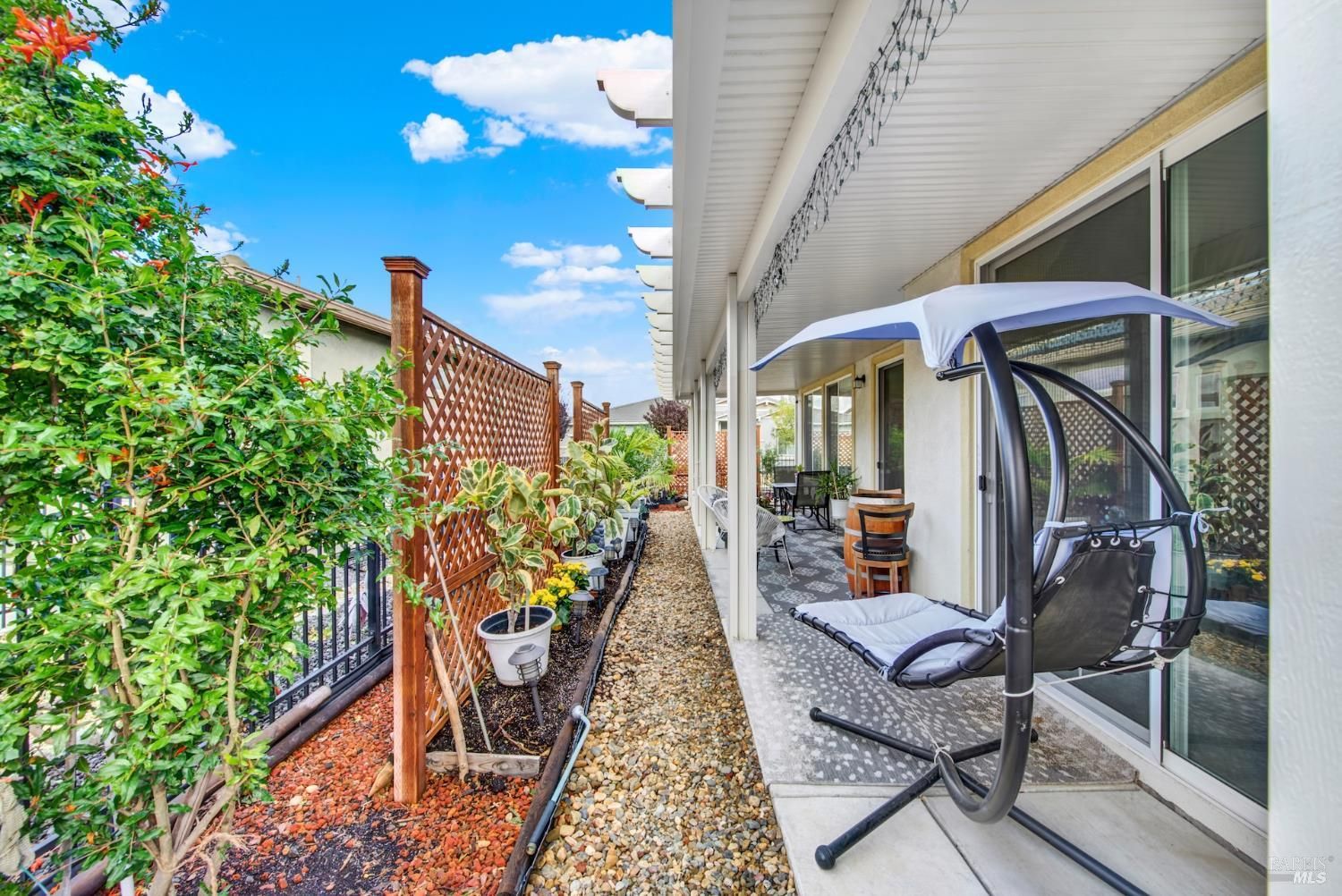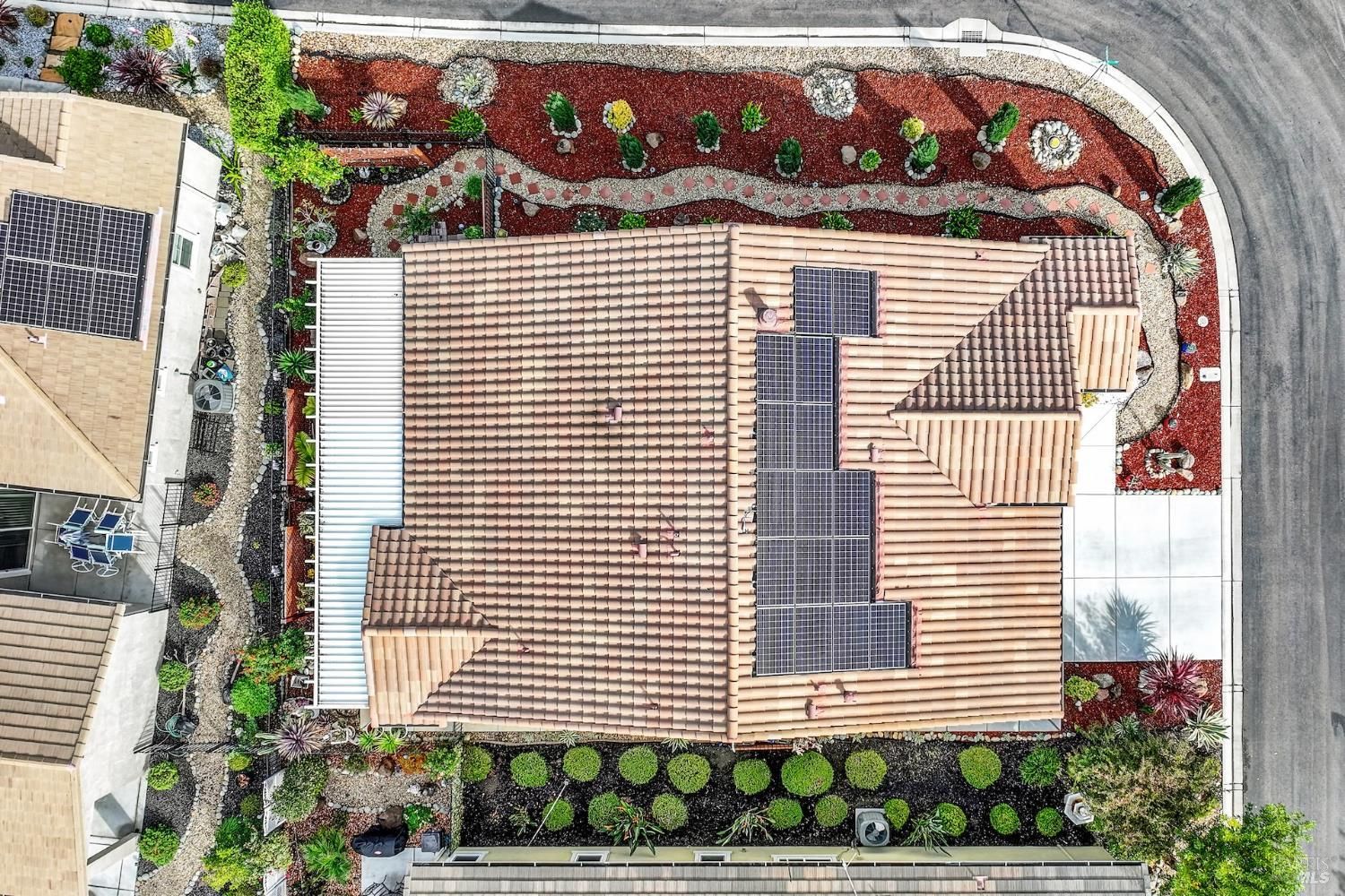Stunning single-story home in the guard-gated Trilogy at Rio Vista on a desirable corner lot. This thoughtfully upgraded floor plan offers 2 bedrooms, 2 baths and owned solar for energy savings. Bright, open layout features a double-sided gas fireplace visible from both the family room and formal living room, creating a warm, inviting atmosphere. The kitchen showcases slab countertops and stainless-steel appliances, flowing seamlessly to dining and living spacesideal for everyday living and entertaining. Huge walk in closet in primary that flows from the laundry room for maximum convenience. Enjoy low-maintenance landscaping and a covered backyard patio for outdoor relaxing. The 2-car garage is equipped with an EV battery charger for convenient electric vehicle charging. Trilogy at Rio Vista lifestyle amenities include an 18-hole championship golf course, club house, multiple restaurants, a health & wellness center, indoor/outdoor pools, tennis, pickleball and bocce courts, a dog park and extensive walking trails. Perfect lock-and-leave living with resort-style amenitiesdon't miss this exceptional home.